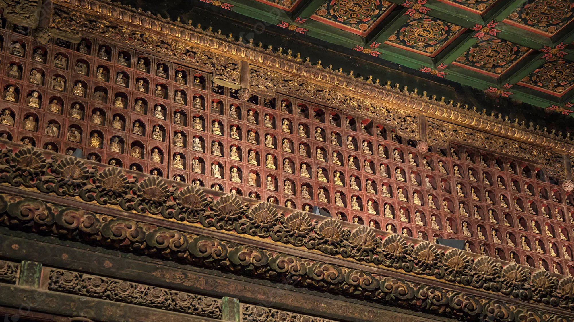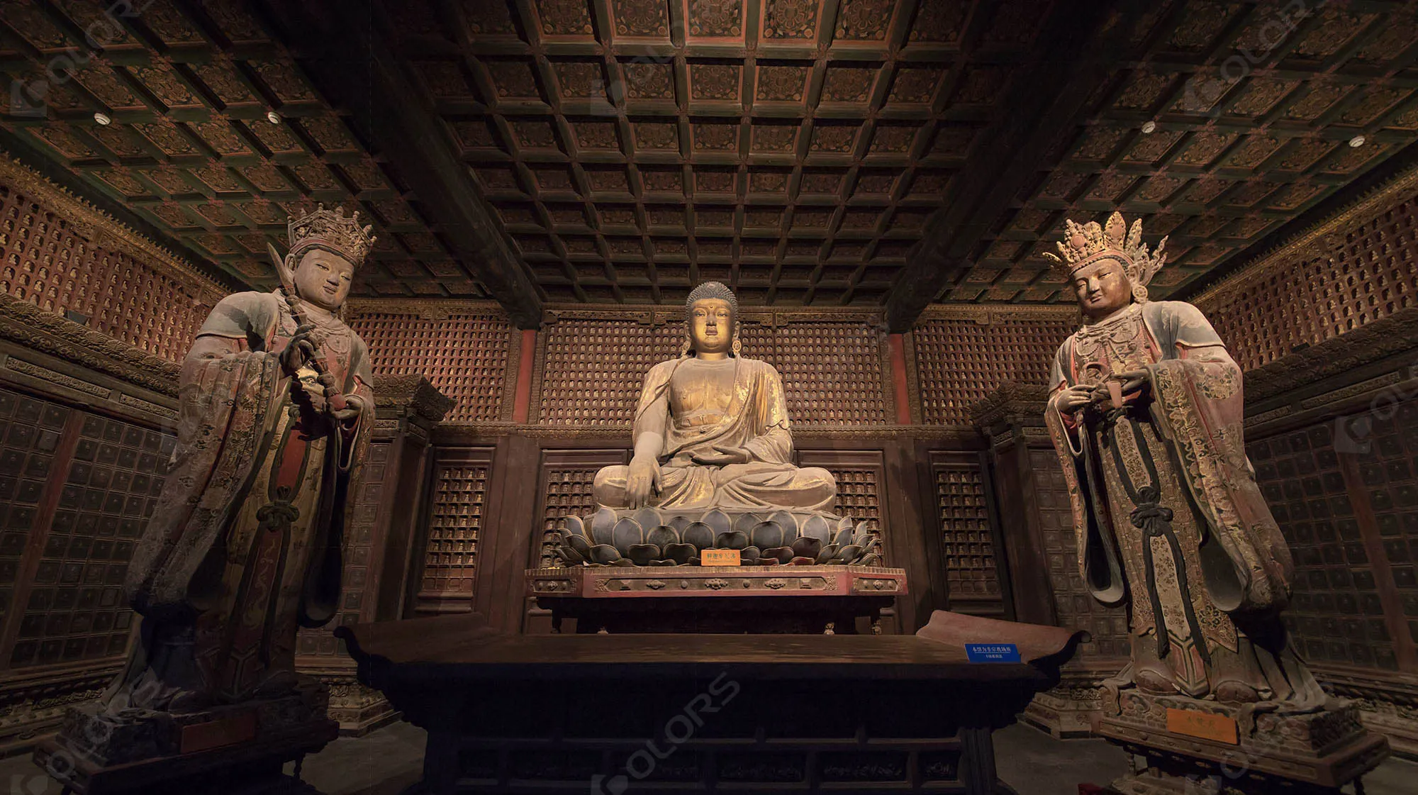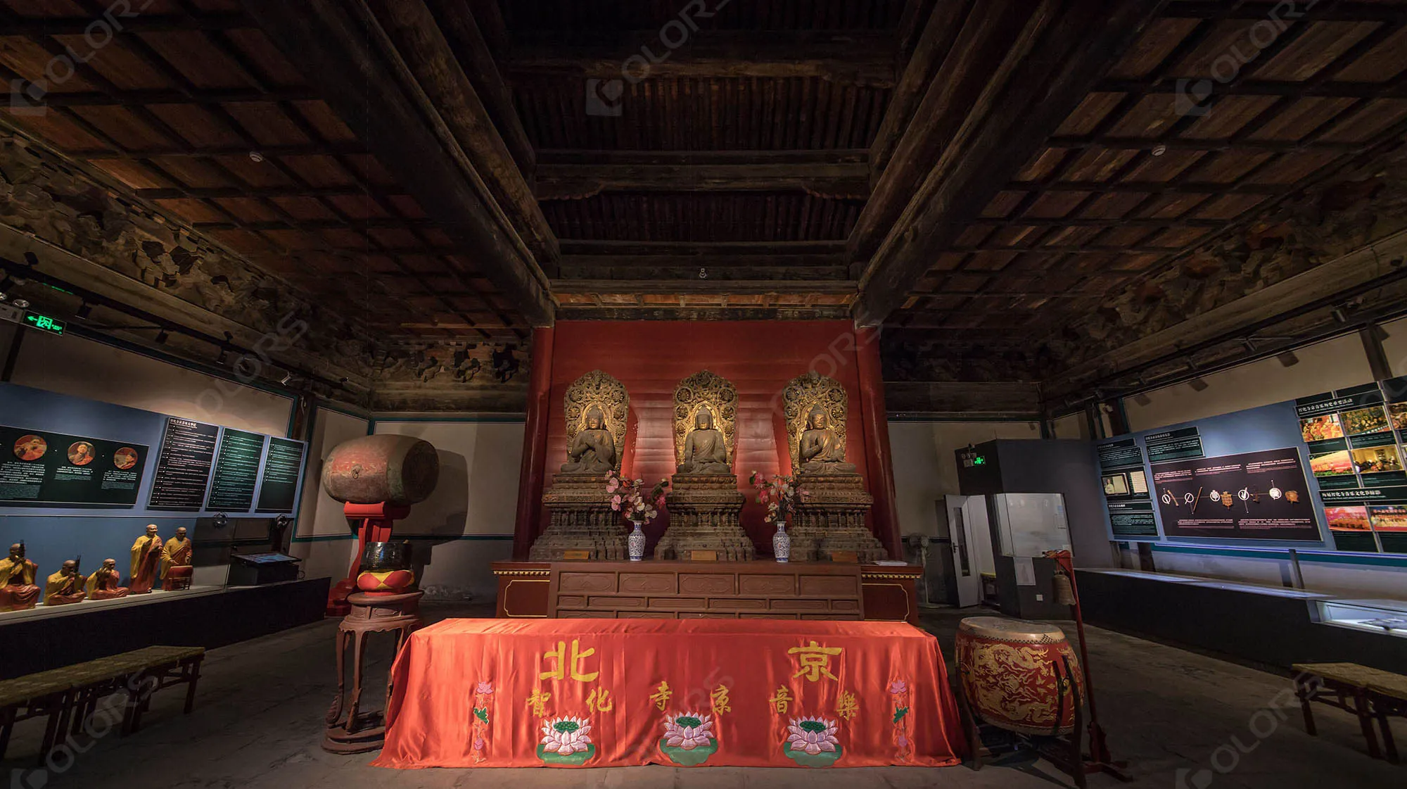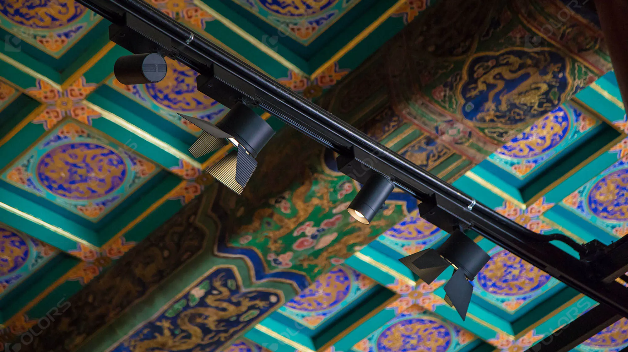 Limited track spotlights are utilized for focused illumination on specific architectural features and statues, creating a sense of sanctity while preventing light damage.