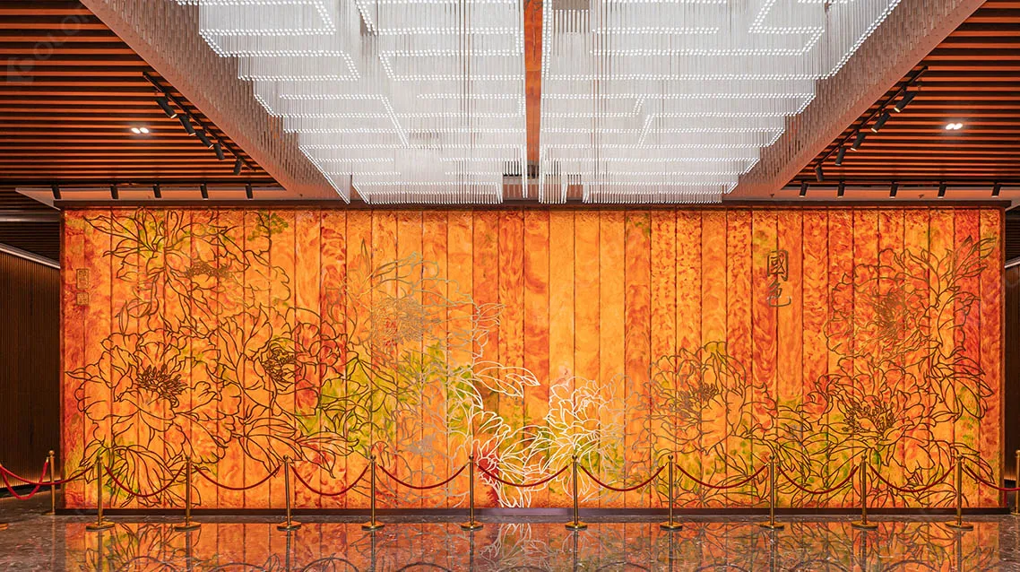 The overall lighting design concept focuses on using lens light strips for upward wall-washing illumination to highlight the murals, achieving a "light without visible sources" effect.