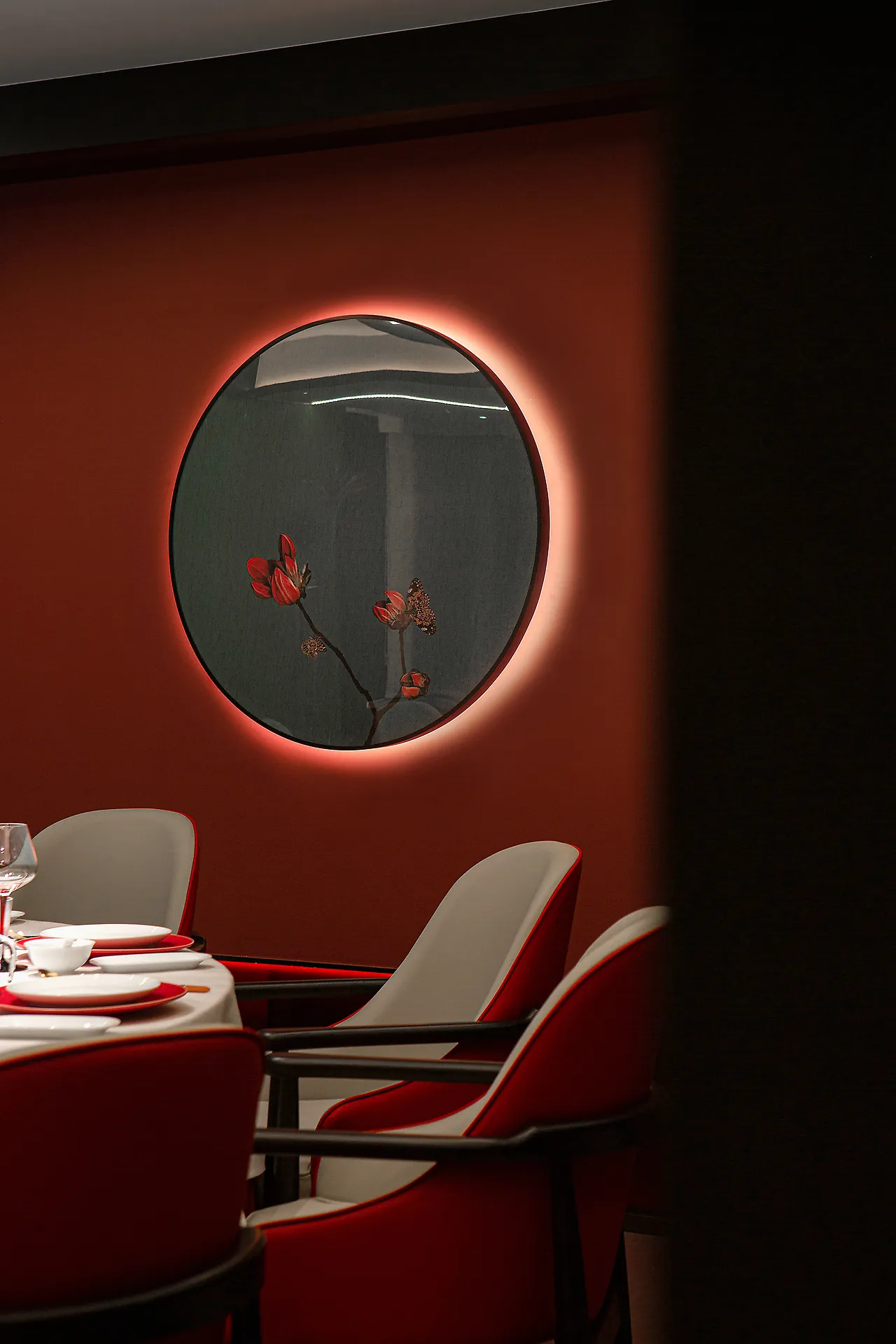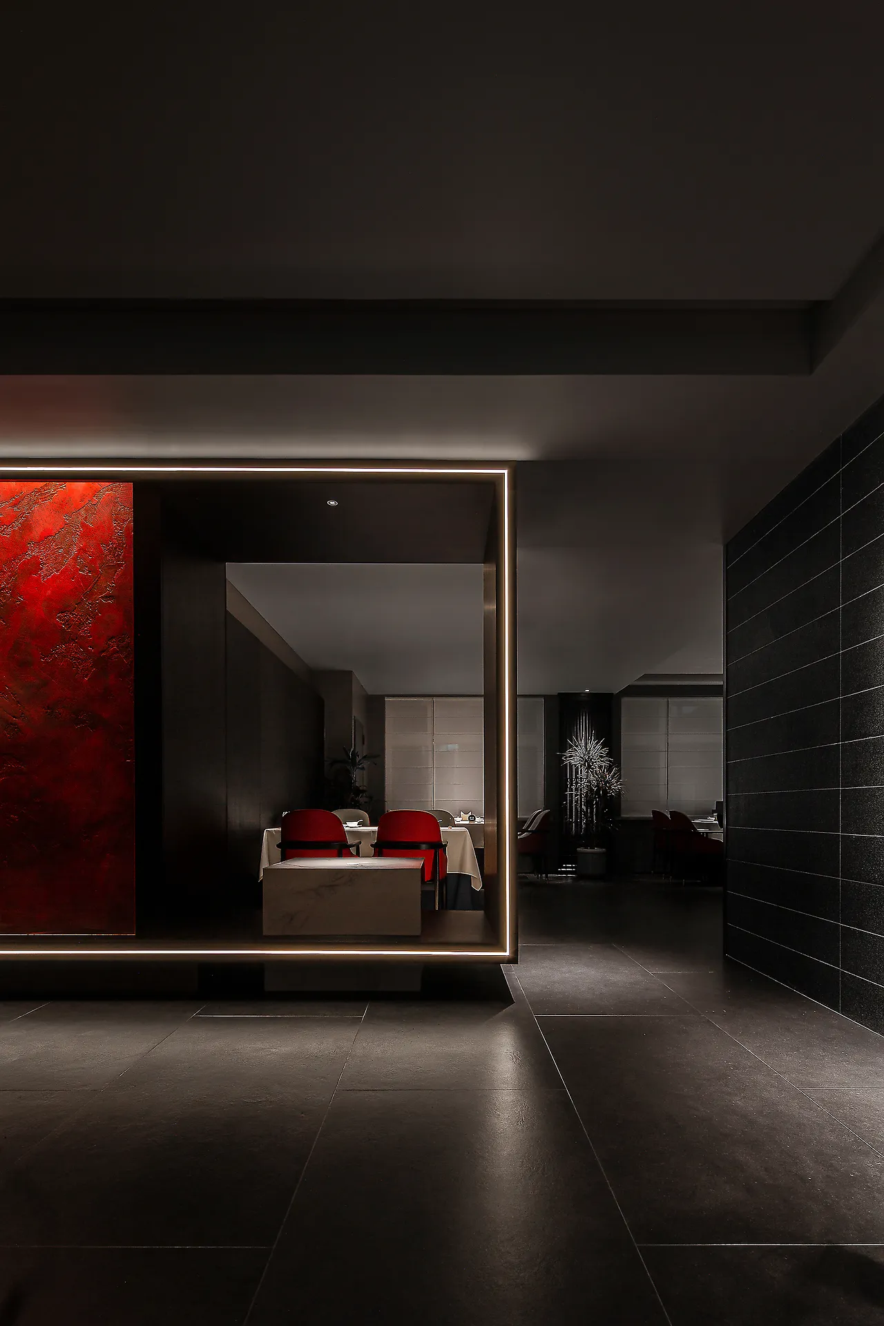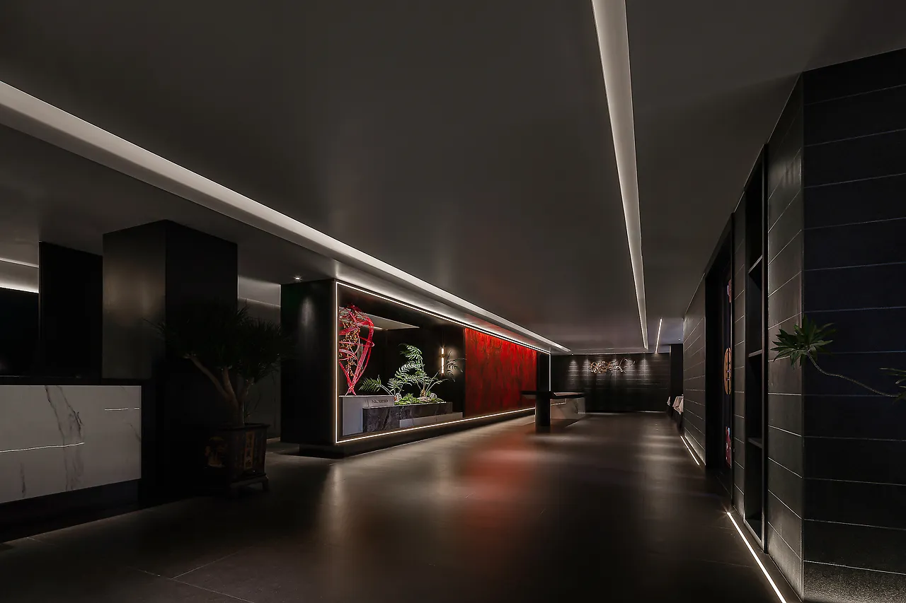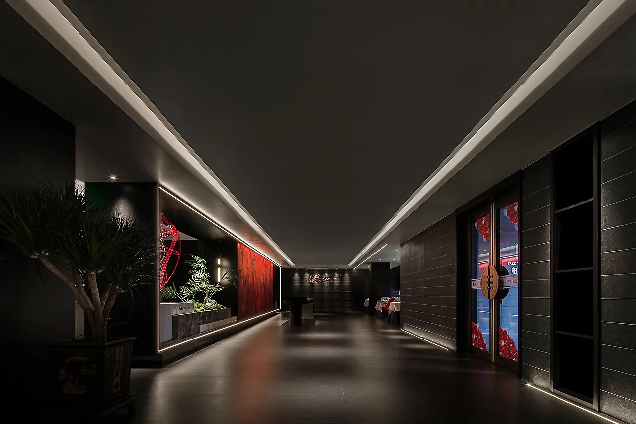 The lighting design is understated and subtle, with an overall dark color scheme and on-demand illumination, all aimed at allowing diners to experience the elegance of the space, the essence of the food, the emotional connection, and the core of Eastern spirit.
