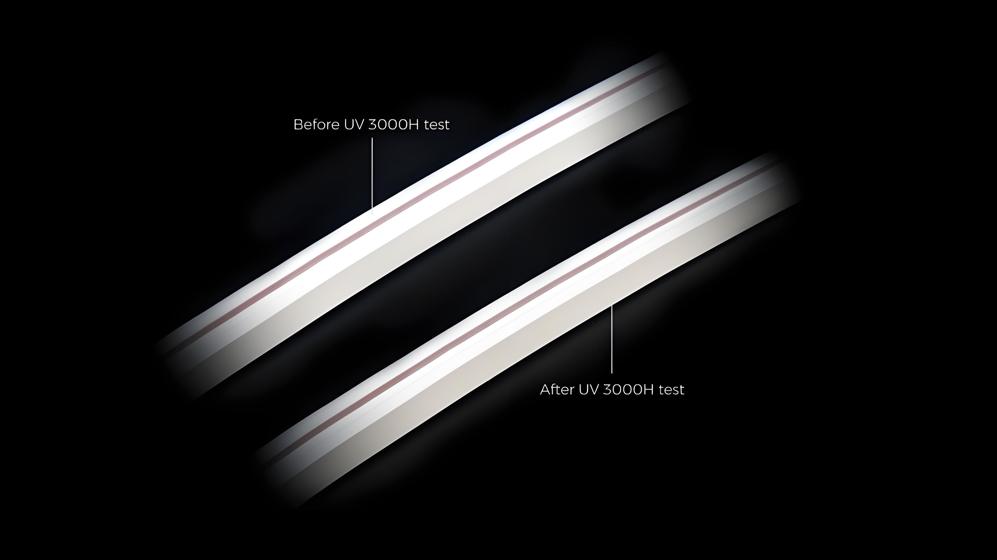 UV test, equivalent to 9 years of outdoor use, almost no yellowing