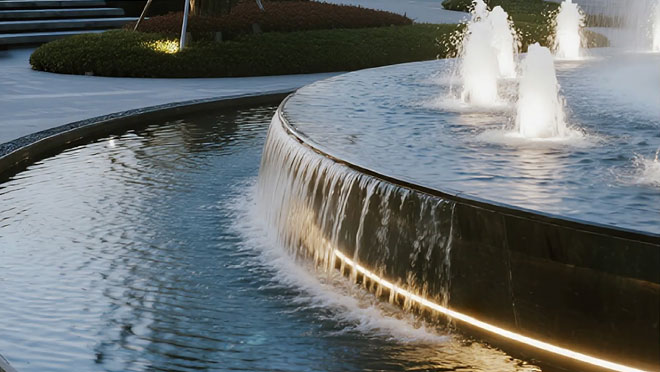 LED strip lights can follow curves, corners, and irregular shapes. This allows designers to trace the outline of fountains, illuminate flowing water channels, create continuous light lines along pools, highlight stair edges in water landscapes, and add soft ambient lighting beneath the water surface. This flexibility enables lighting that feels like part of the water itself.