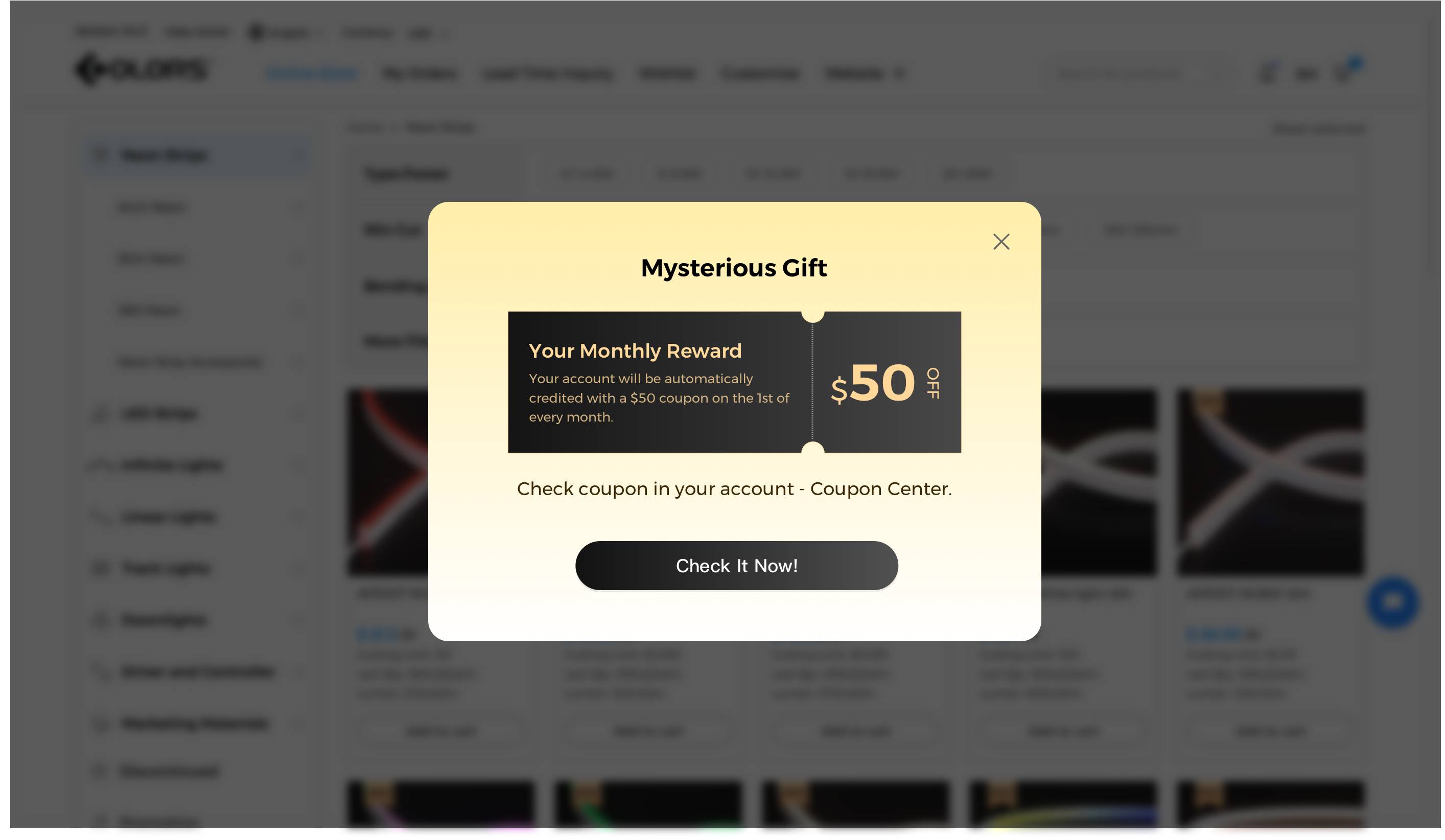 Receive a $50 coupon in your account automatically every 1st of the month.