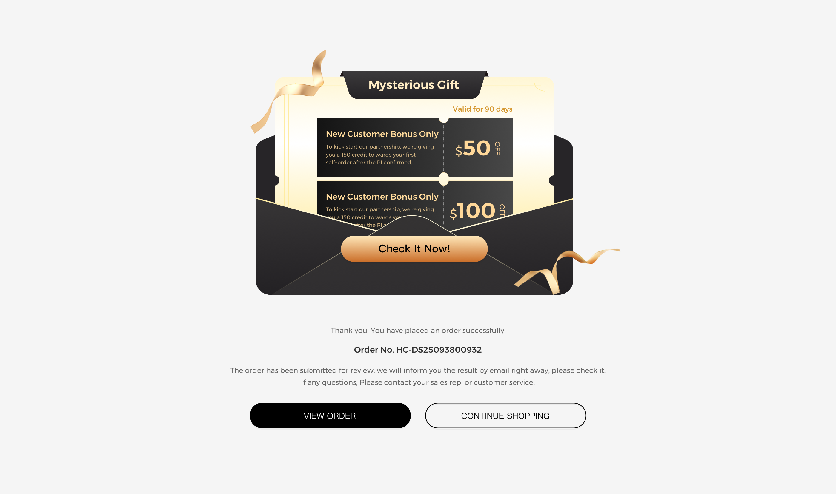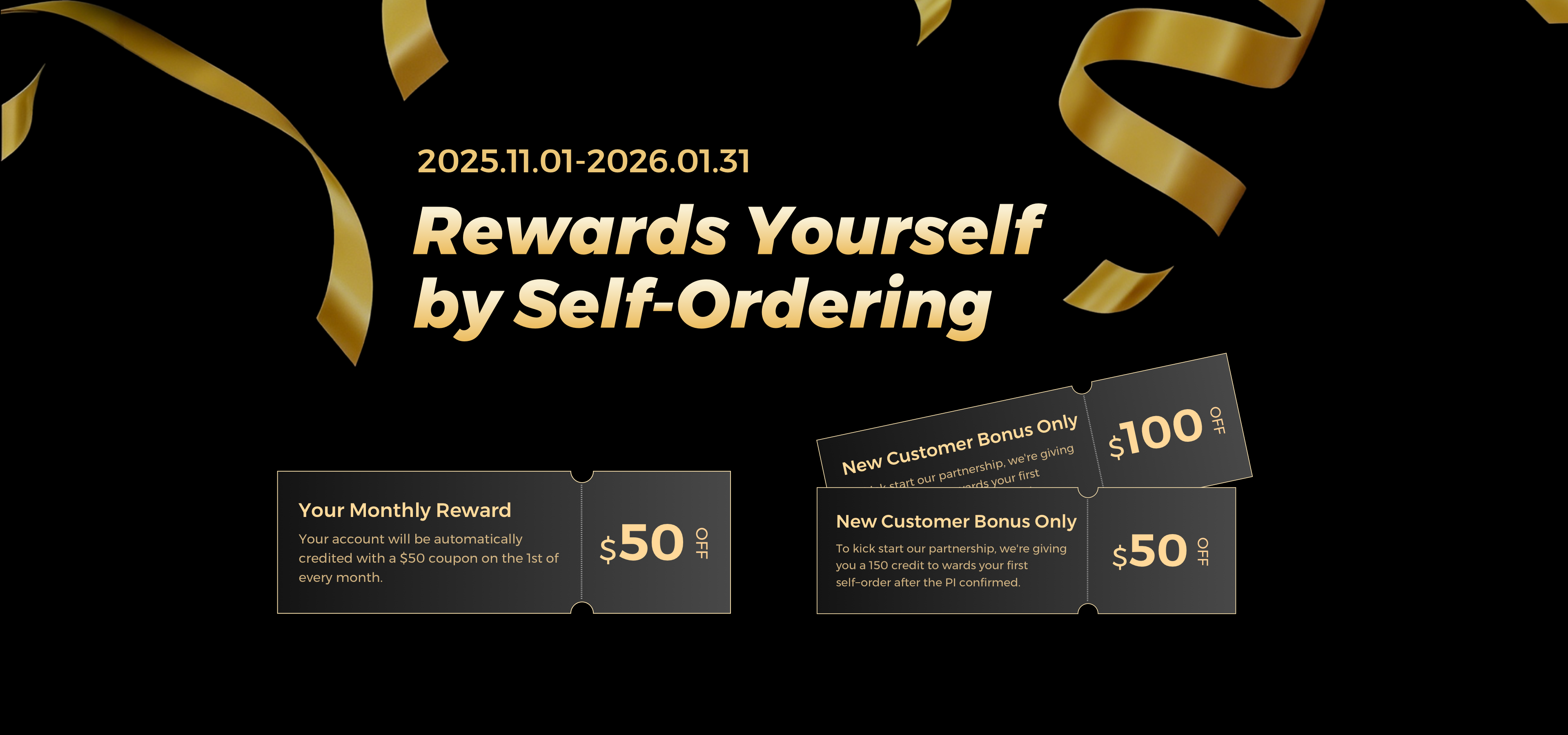 You can get three coupons worth $50 each month during the activity. Moreover, if you are the first place order yourself in COLORS Online Store , you can receive $50 + $100 coupons together after PI confirmed.