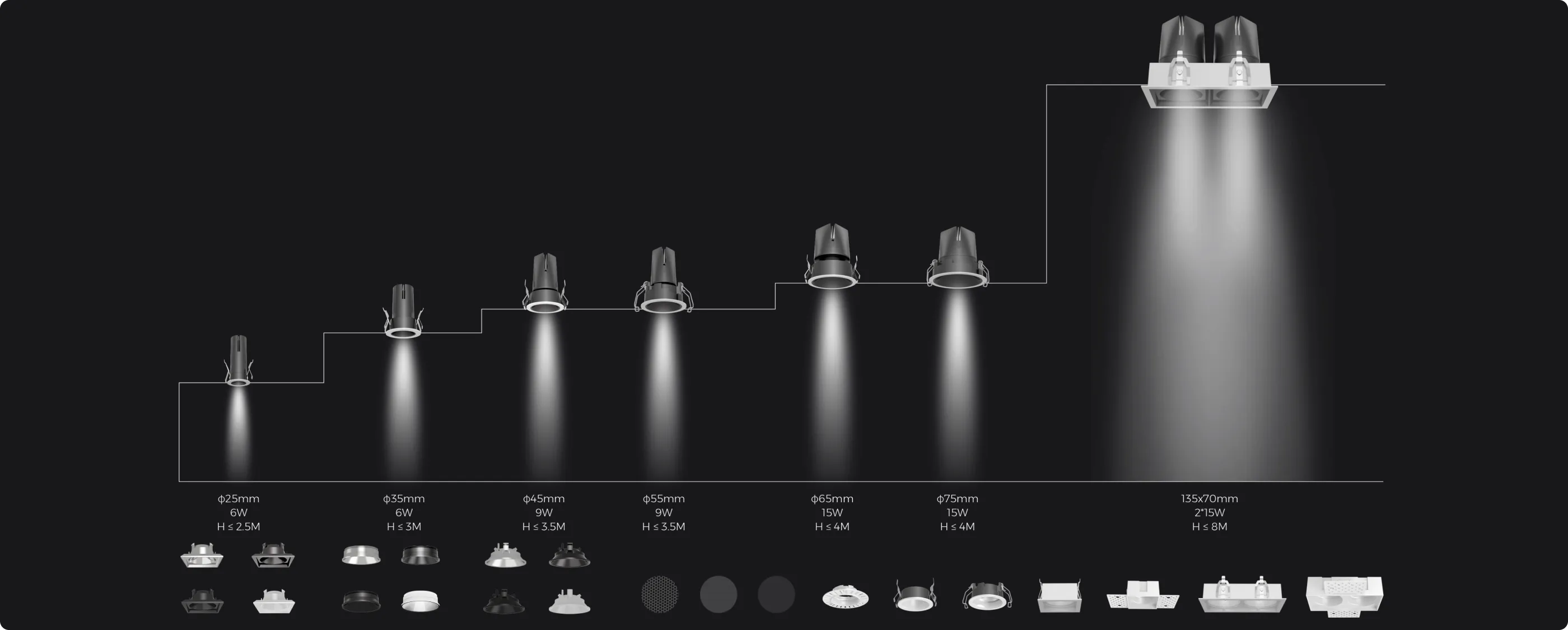 Discover GENIE 2SThe GENIE 2S series boasts a sleek design with deep anti-glare features, 45° shading angle, and a slim 5mm bezel. It delivers excellent illumination, gentle yet powerful, with various optical options including a narrow 9° beam angle and high CRI of 90. Perfect for upscale hospitality and residential, its all-metal body ensures efficient heat dissipation while offering flexibility in installation, meeting designers' highest standards.
