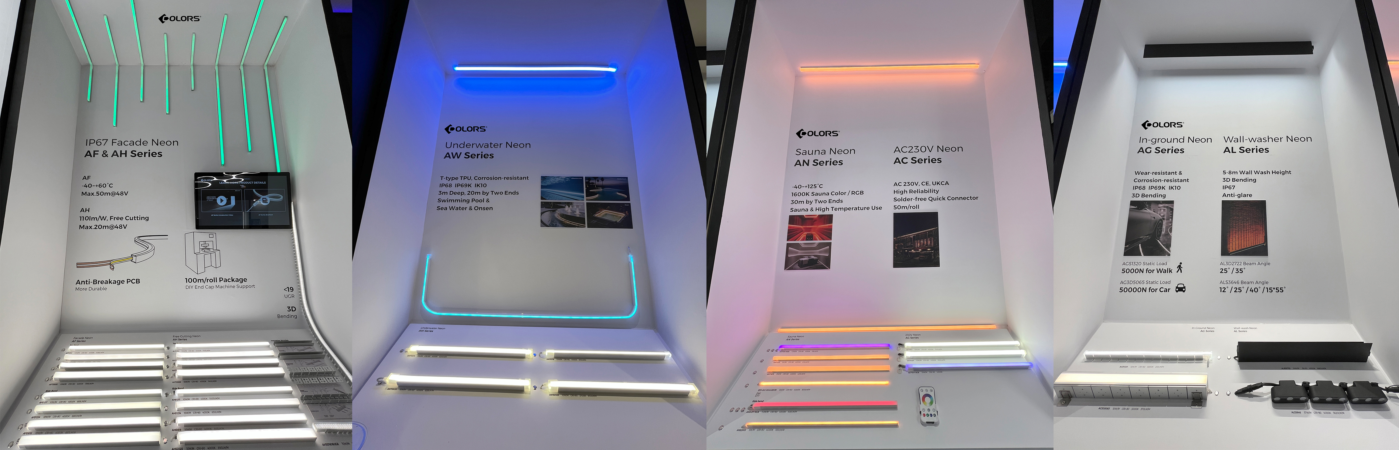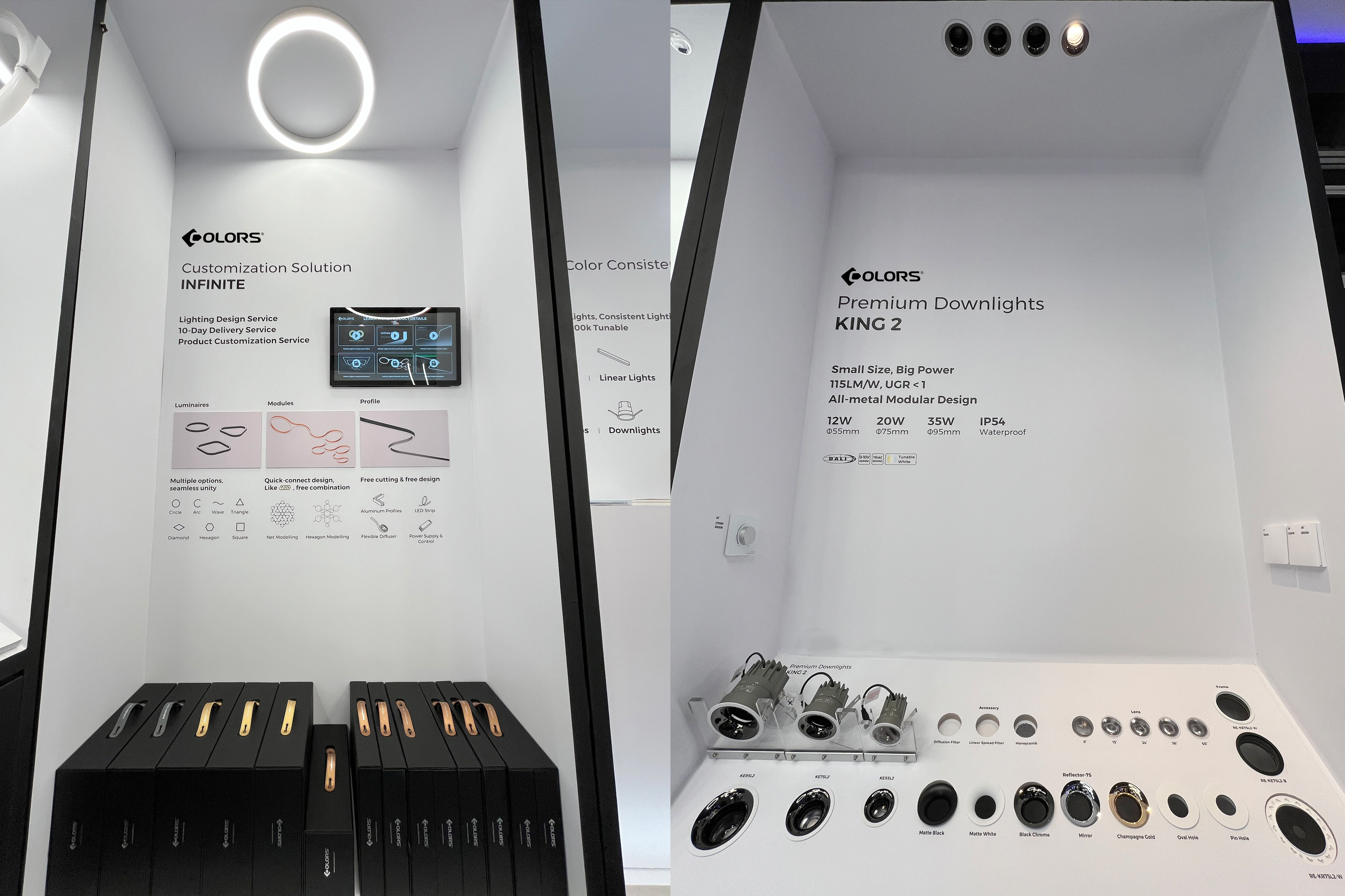 During the exhibition, COLORS showcased a range of its latest innovations, including the Arch Neon Series, Infinite Lights System, KING 2 Downlight, the Light Color Consistency Solution, and others.