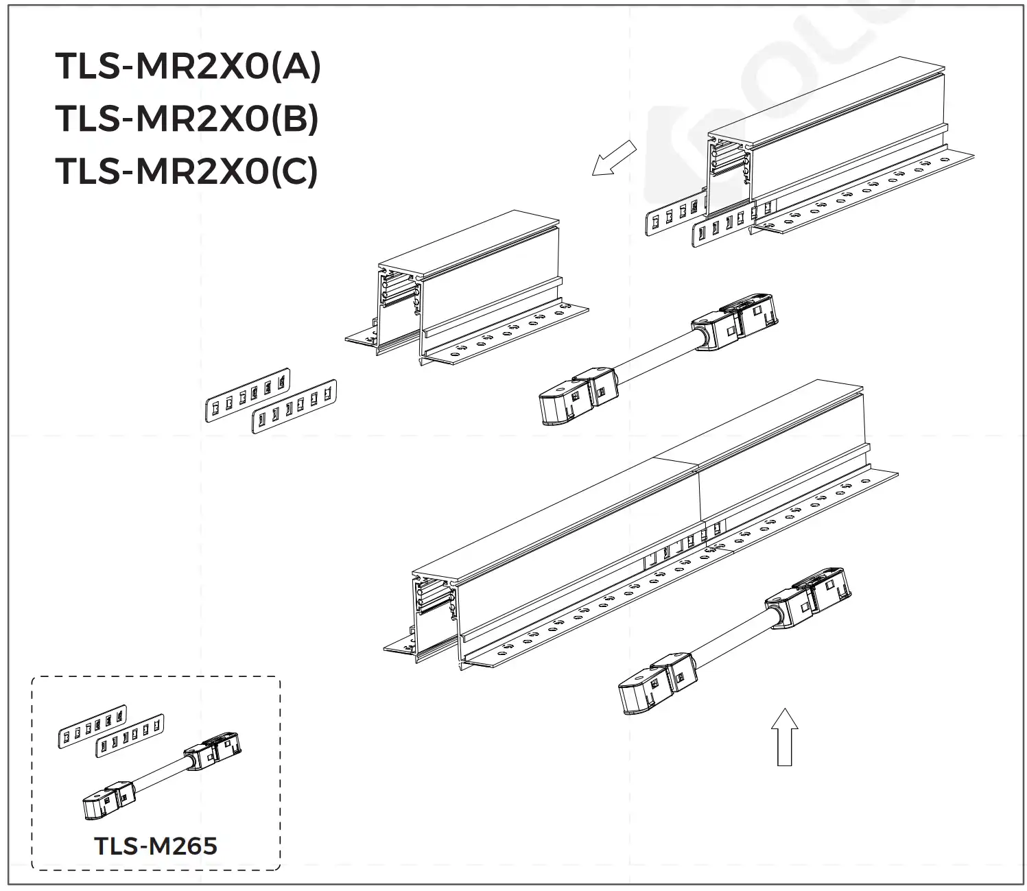 Applicable product model:TLS-MR2X0(A)/TLS-MR2X0(B)/TLS-MR2X0(C)/TLS-MR2XXA90(A)/TLS-MR2XXA90(B), unsuitable for 90° corner connections Material process: / Size: 190*17*16.2mm Quantity: 1 PCS/ set Other:Suitable for energizing and splicing of recessed track joints.Include 2pcs splicing bars (70*11.5*2.1mm)+1pcs power feeder (190*17*16.2mm)