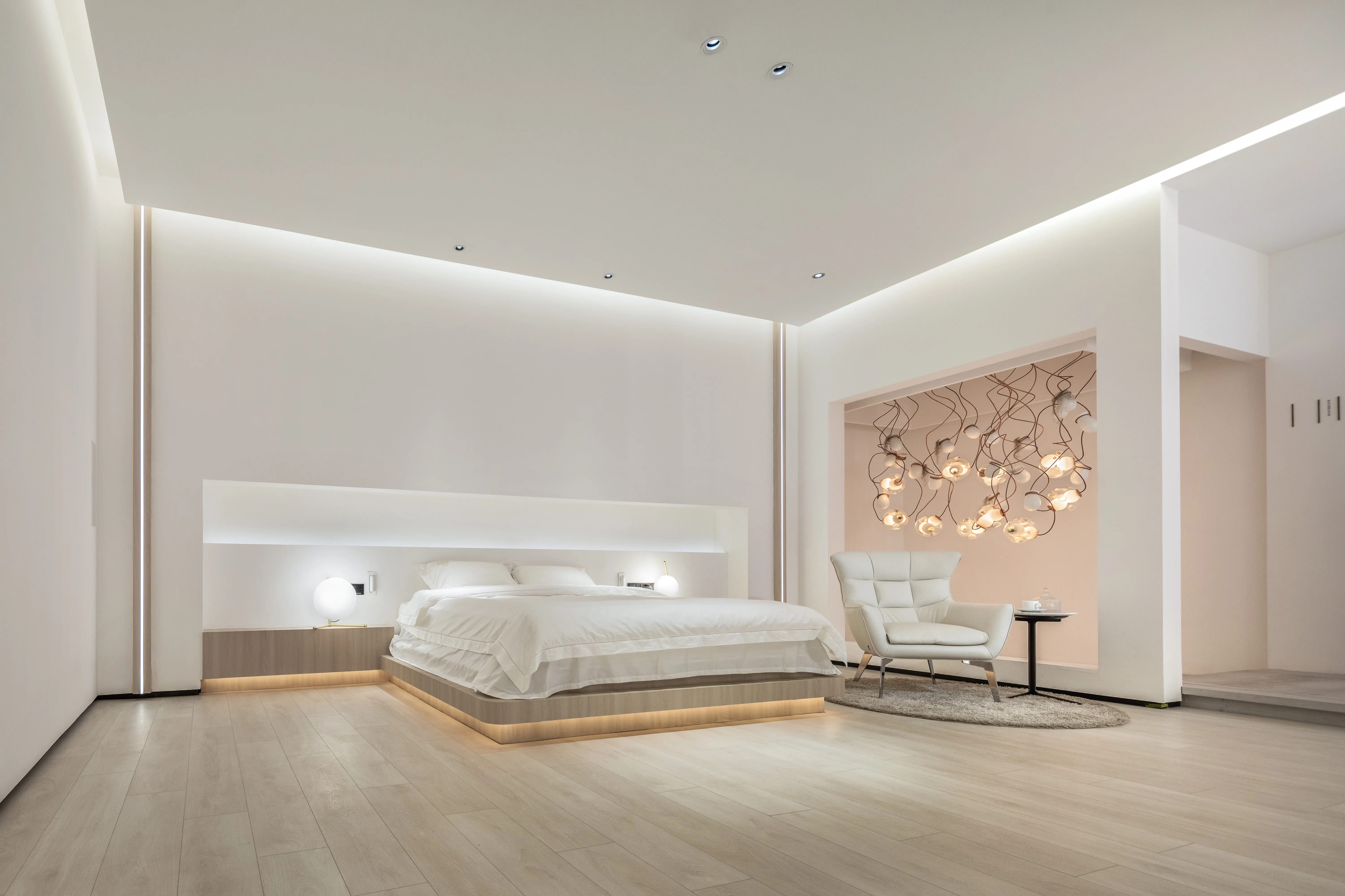 Linear lighting, however, acts as the defining stroke, lending the lighting environment its soul. The selection of fixtures, colors, and color temperatures are carefully chosen to complement the overall space and soft furnishings, ensuring that they never appear jarring or out of place.