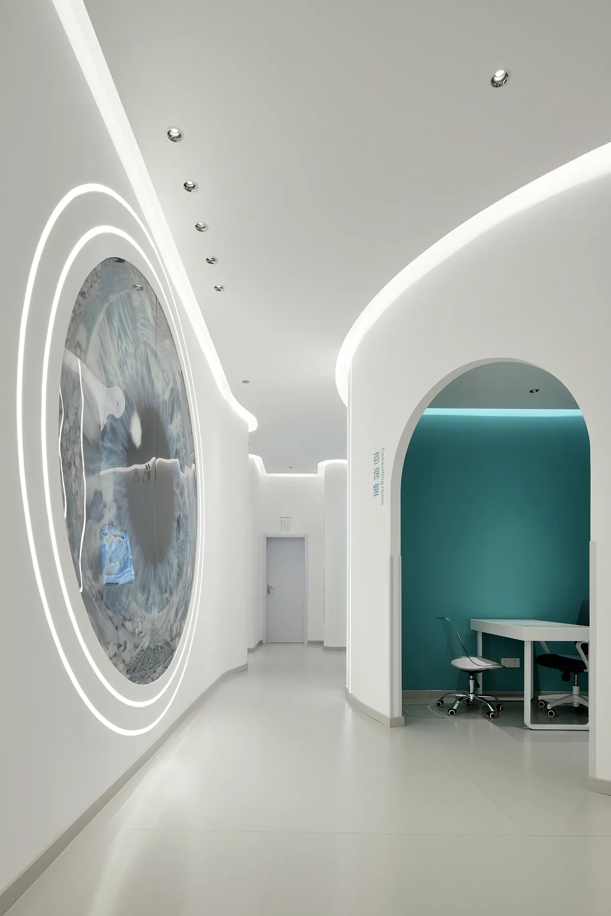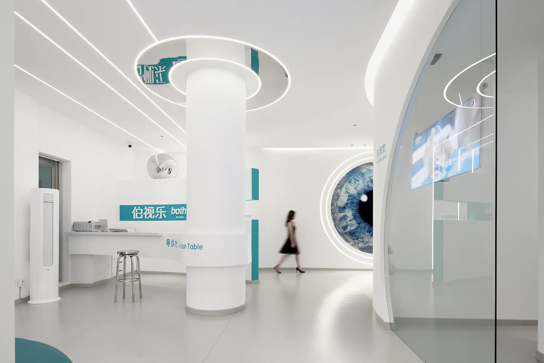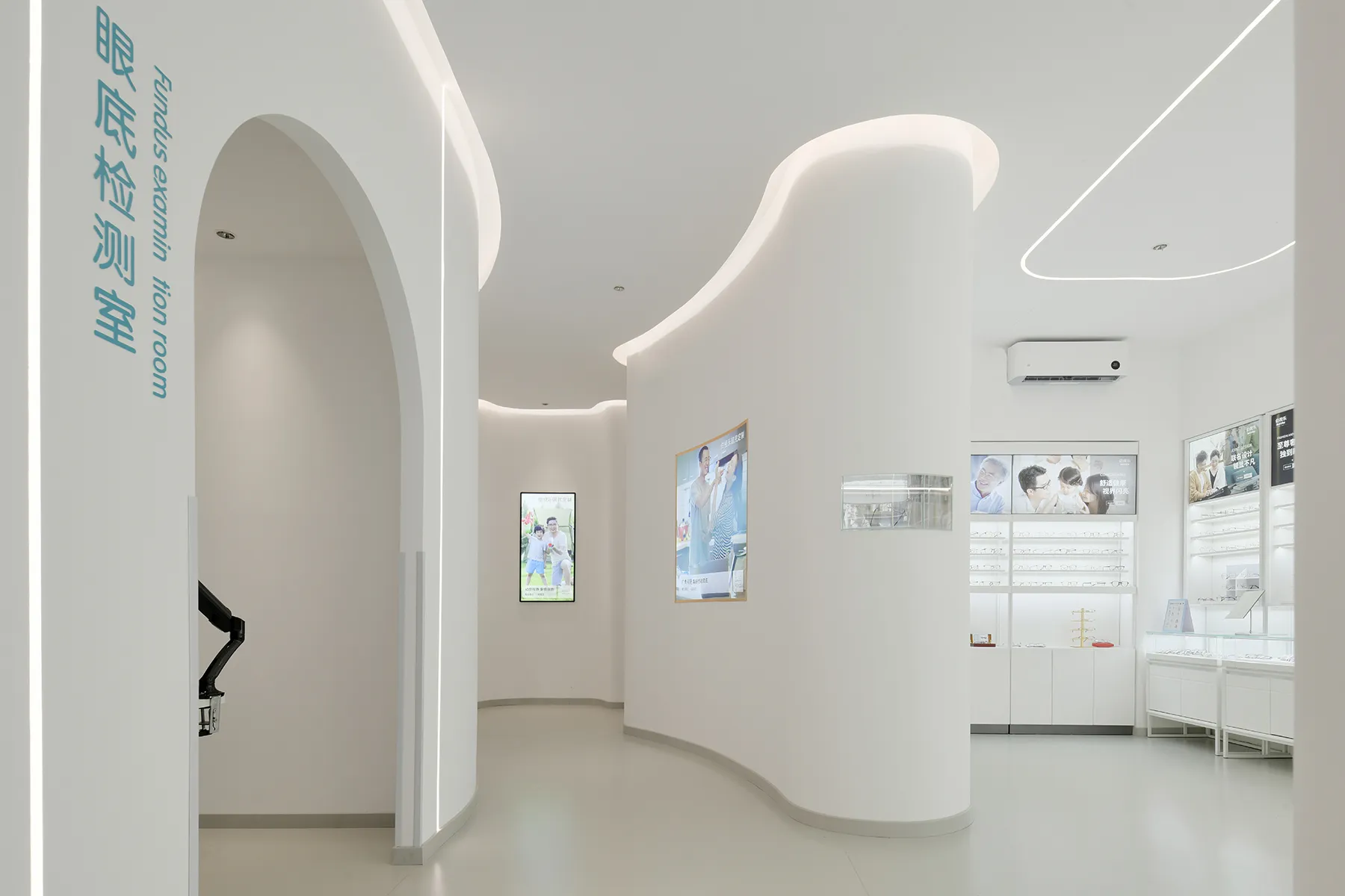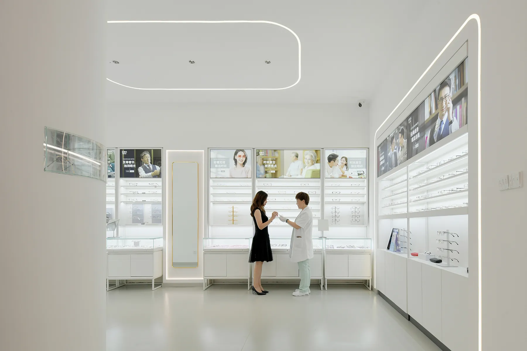The Borsile Eye Health Management Center is located on the ground floor of a commercial building on Banpo West Street in the Xinghualing District of Taiyuan. It is a boutique eyewear retail showroom. The lighting design aims to provide clean and soft basic illumination while enhancing visual impact with bright linear lighting. The glass facade effectively attracts natural foot traffic and showcases the professionalism of the products.