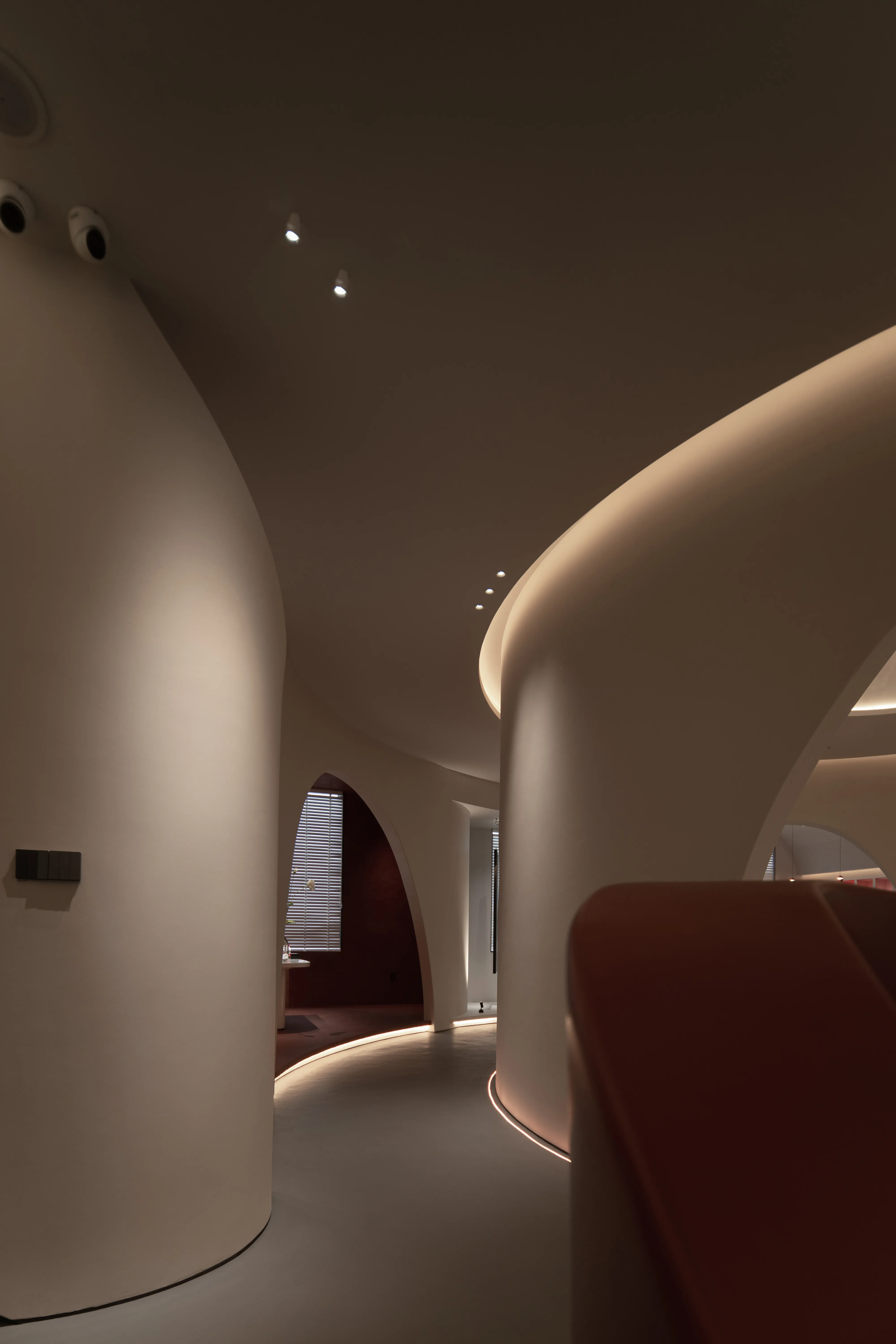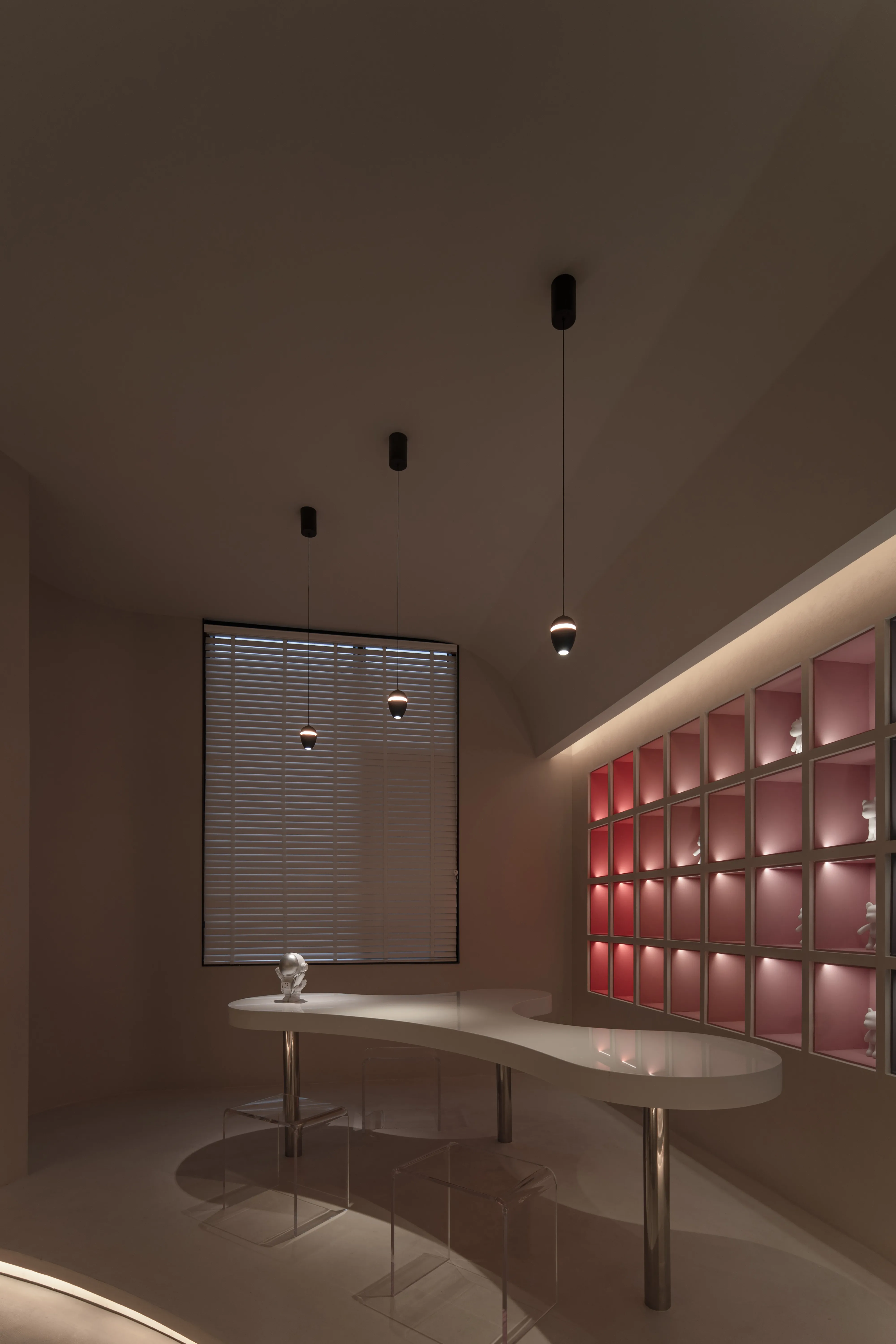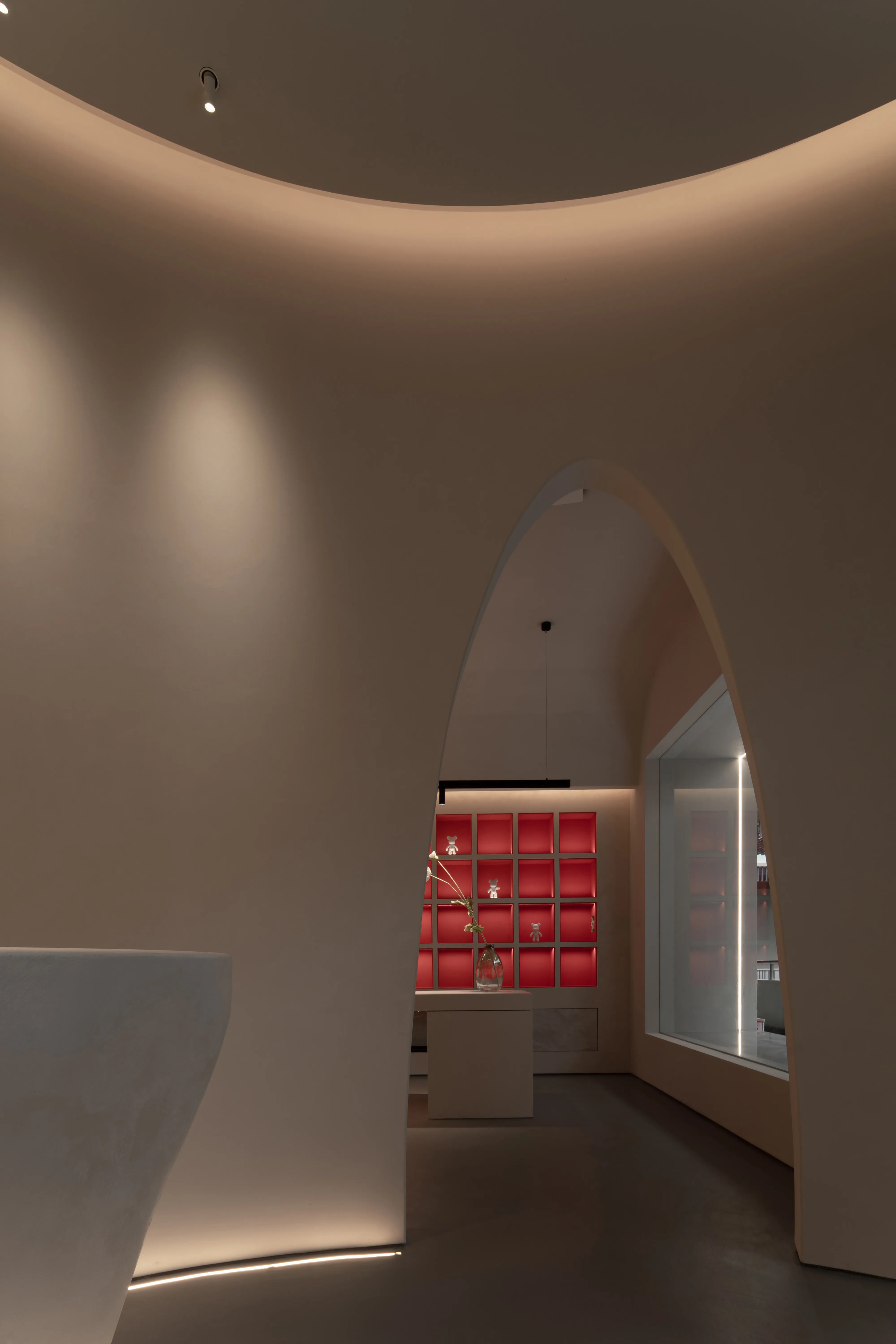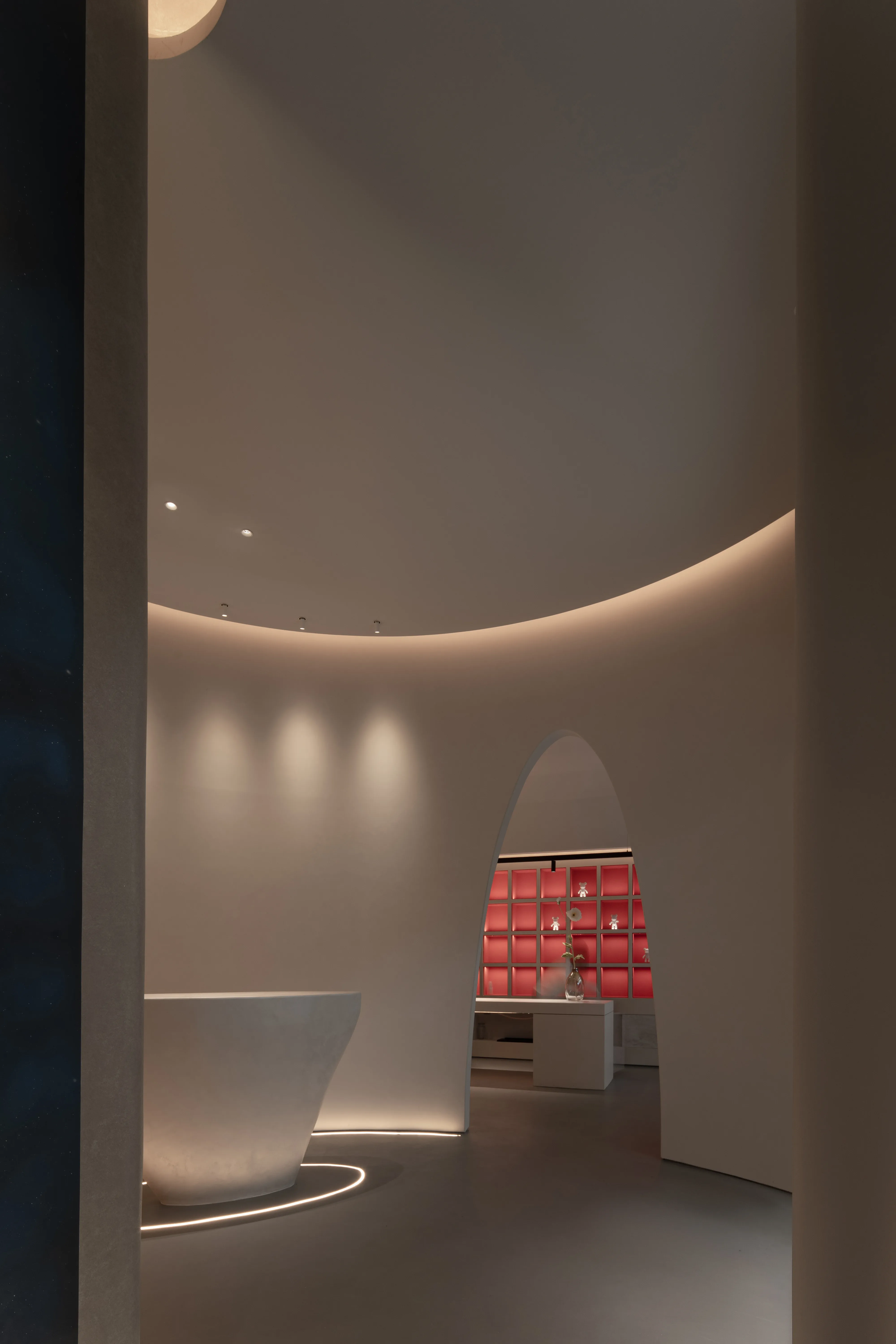 The overall lighting design concept is to create an immersive and experiential environment that highlights the visual impact of the lighting on the paints displayed. The overall ambiance is achieved using a 2700K color temperature for base lighting, supplemented by 3000K wall washers for the vertical surfaces. For the color cards and sample areas within the cabinets, a 3500K color temperature is used to accurately reproduce the true colors and textures of the paints.