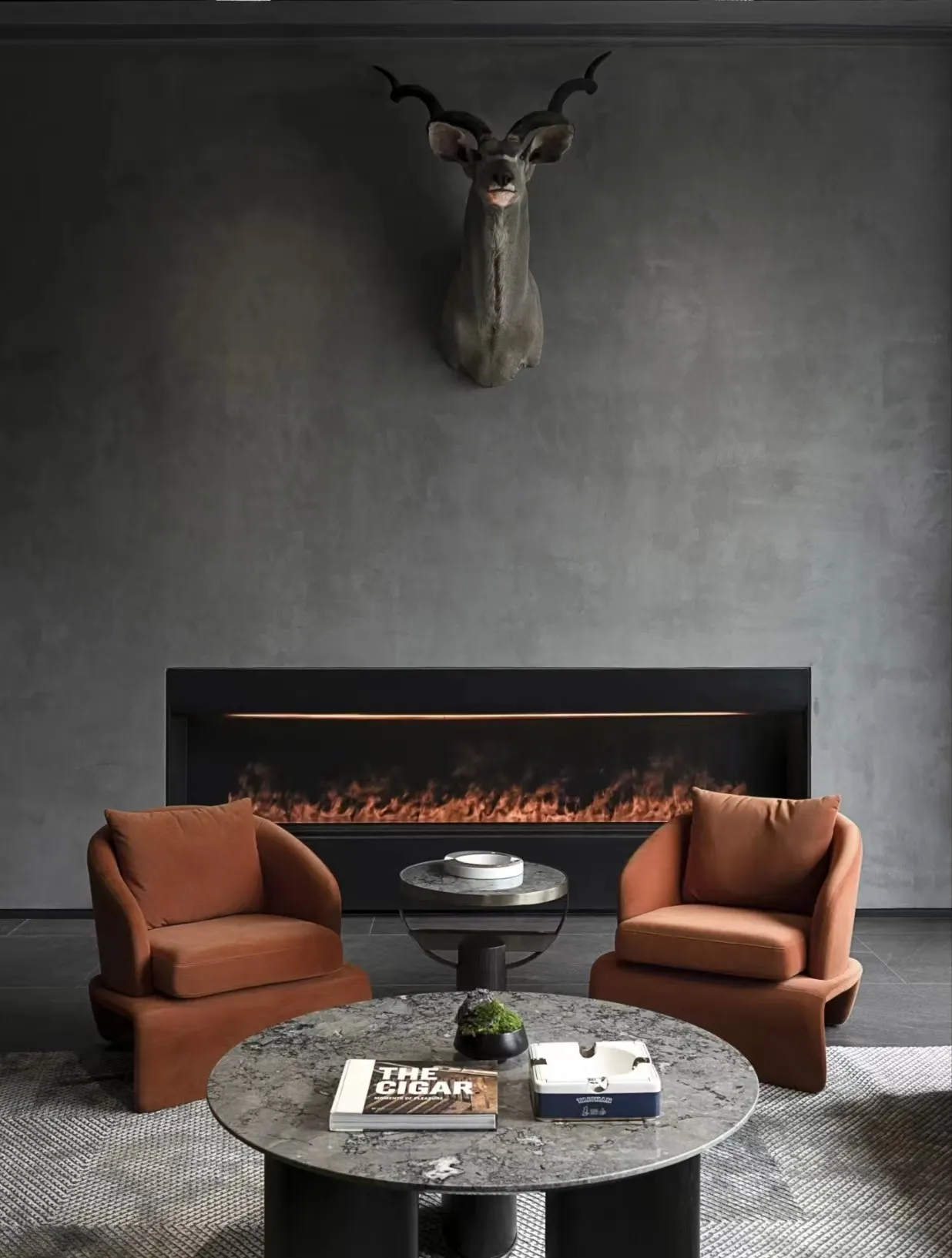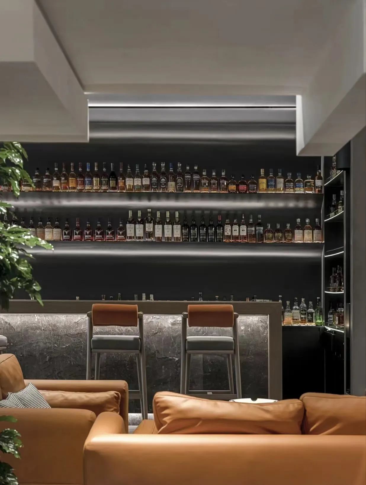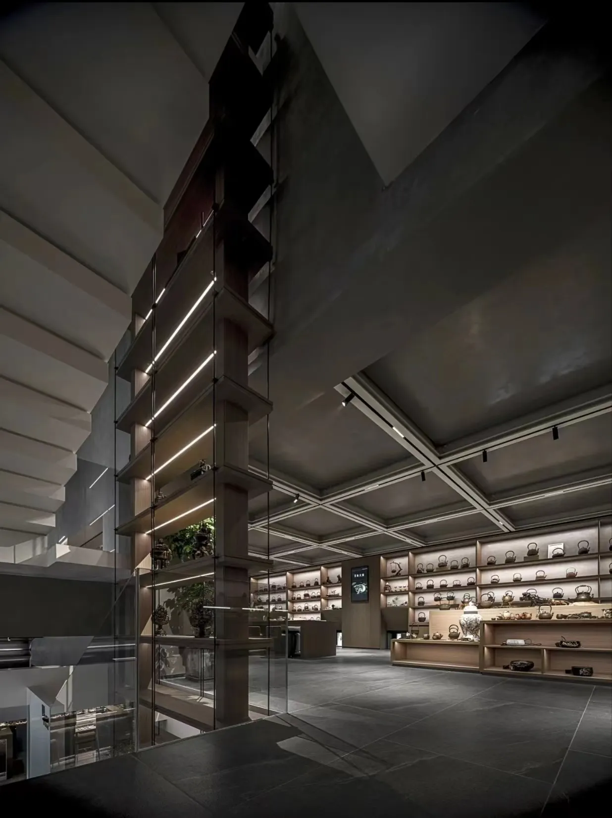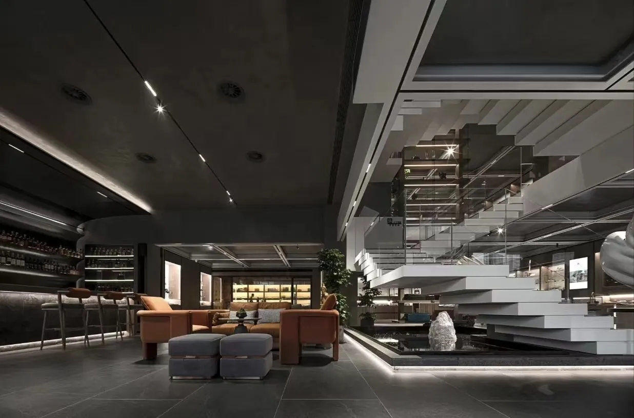 The indoor space is understated yet vibrant, featuring a sophisticated and elegant color palette that evokes the rich, lingering essence of Pu'er tea. Strategic accents of Hermès orange, gray, and metallic elements are incorporated throughout the space, maximizing the expression of refined artistry and elegance.
