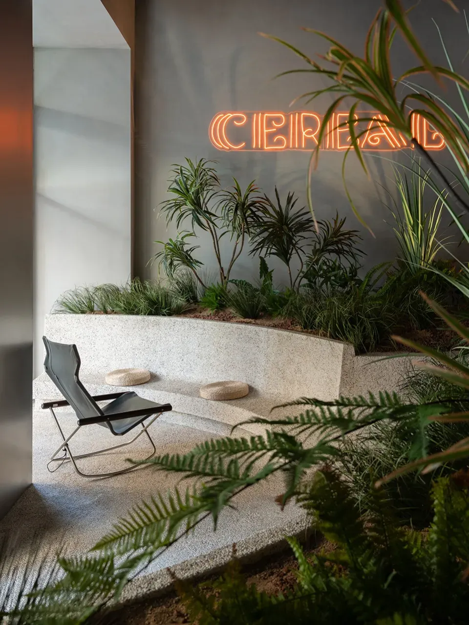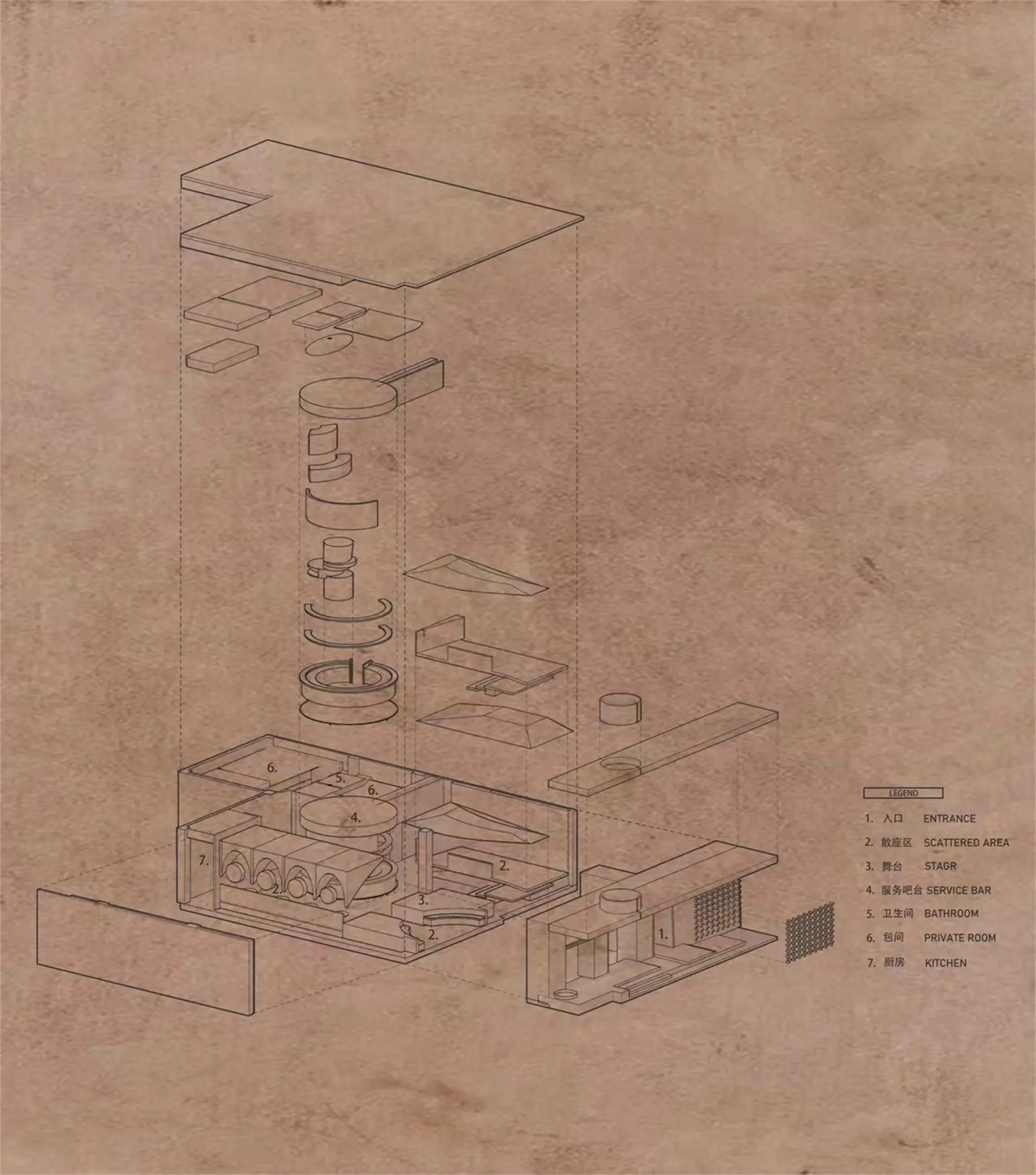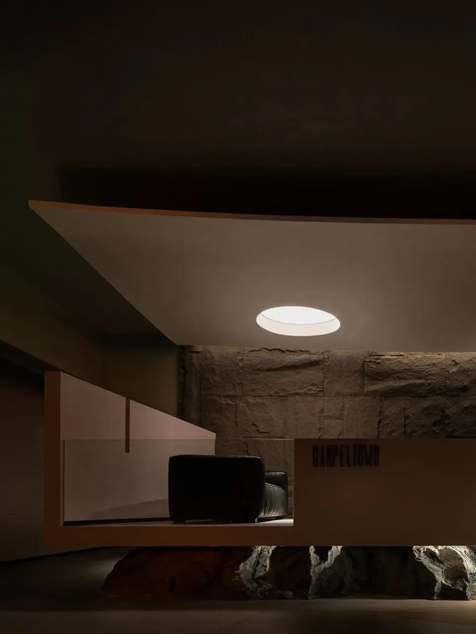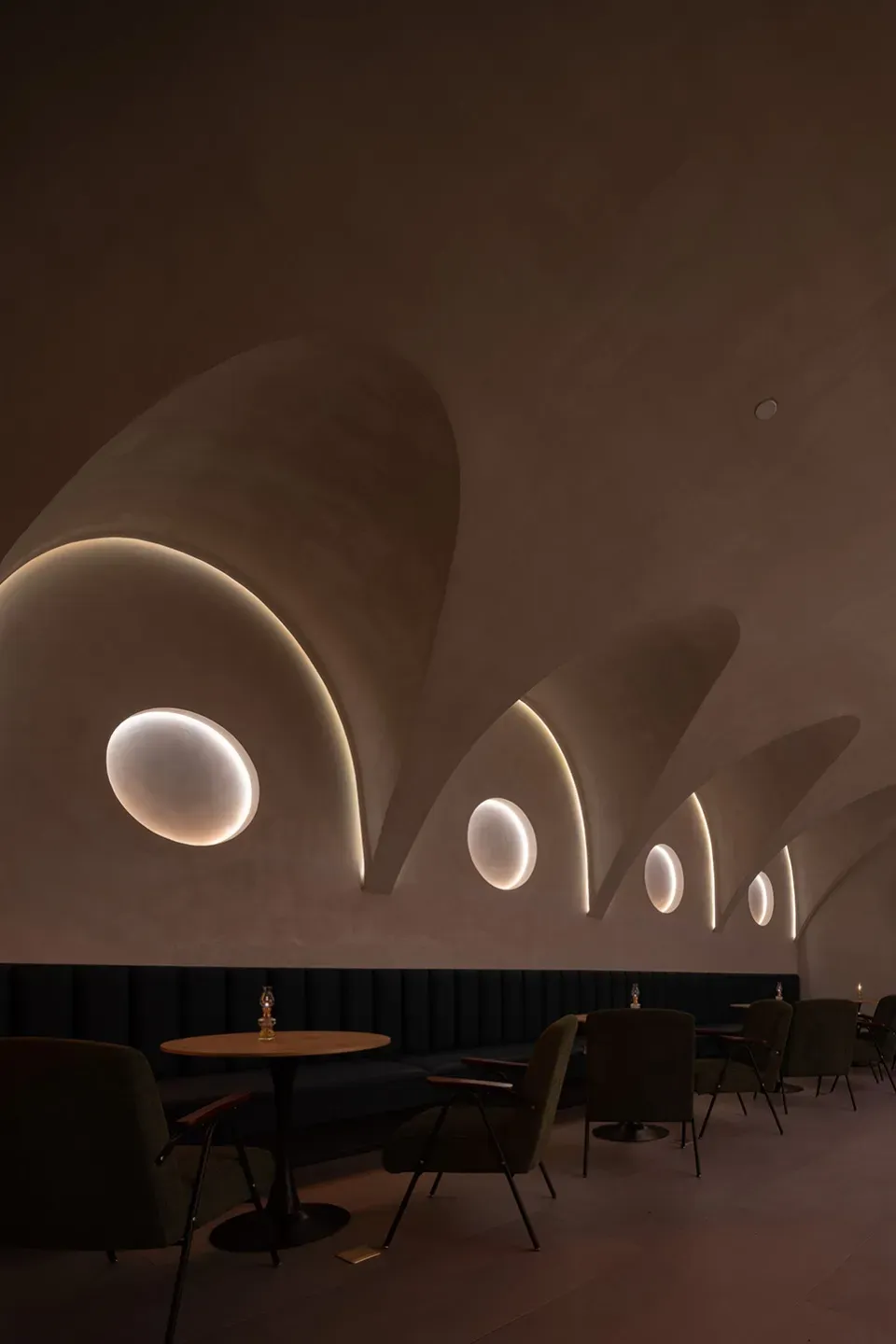 This design allows the commercial building to naturally integrate into daily urban life, seamlessly blending with the brand space and surrounding streets. Passing through the valley corridor leading to the bar is like traversing time and space, a journey from reinforced concrete to the cosmos, allowing patrons to shed the pretense and fatigue of city life.