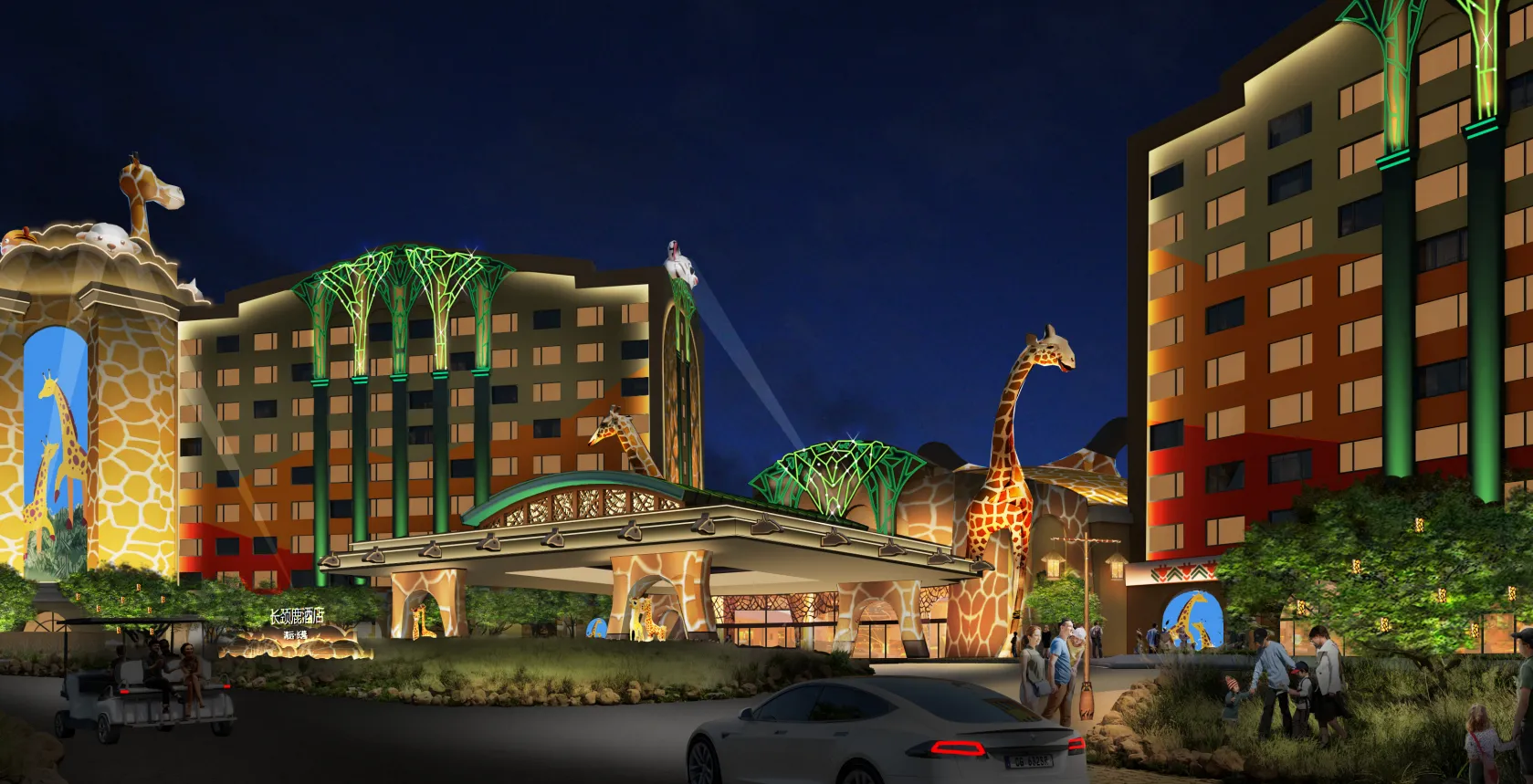 Chimelong Giraffe Castle is positioned as a high-end, family-oriented themed hotel. Its concept is inspired by the story of the “Chief Giraffe Family” from Chimelong's original animated series Kaka Tiger's Great Adventure. Centered on immersive animal-themed experiences, the hotel is deeply integrated with the resort's forest ecology and wildlife elements. Adopting an “African Savanna & Forest Adventure” theme and incorporating Qingyuan's local ecological characteristics, it creates a highly recognizable and differentiated resort experience.
