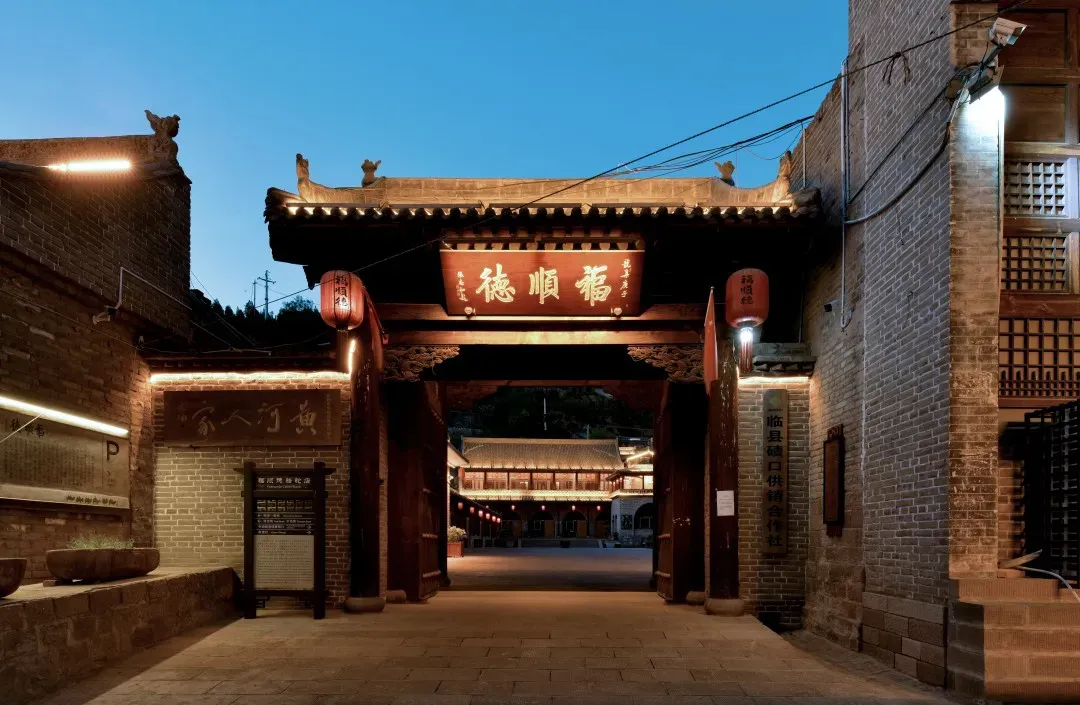 Qikou Ancient Town, known as the "First Town of the Nine Bends of the Yellow River," is located at the foot of the Lüliang Mountains in Shanxi Province. The Fushunde Inn is situated on East Market Street in Qikou Ancient Town. During the flourishing period of the Ming and Qing Dynasties, it was known as the "Fushunde Camel Inn." Covering an area of 5,400 square meters, the inn features 65 rooms and 39 cave dwellings, arranged in a traditional three-courtyard layout.