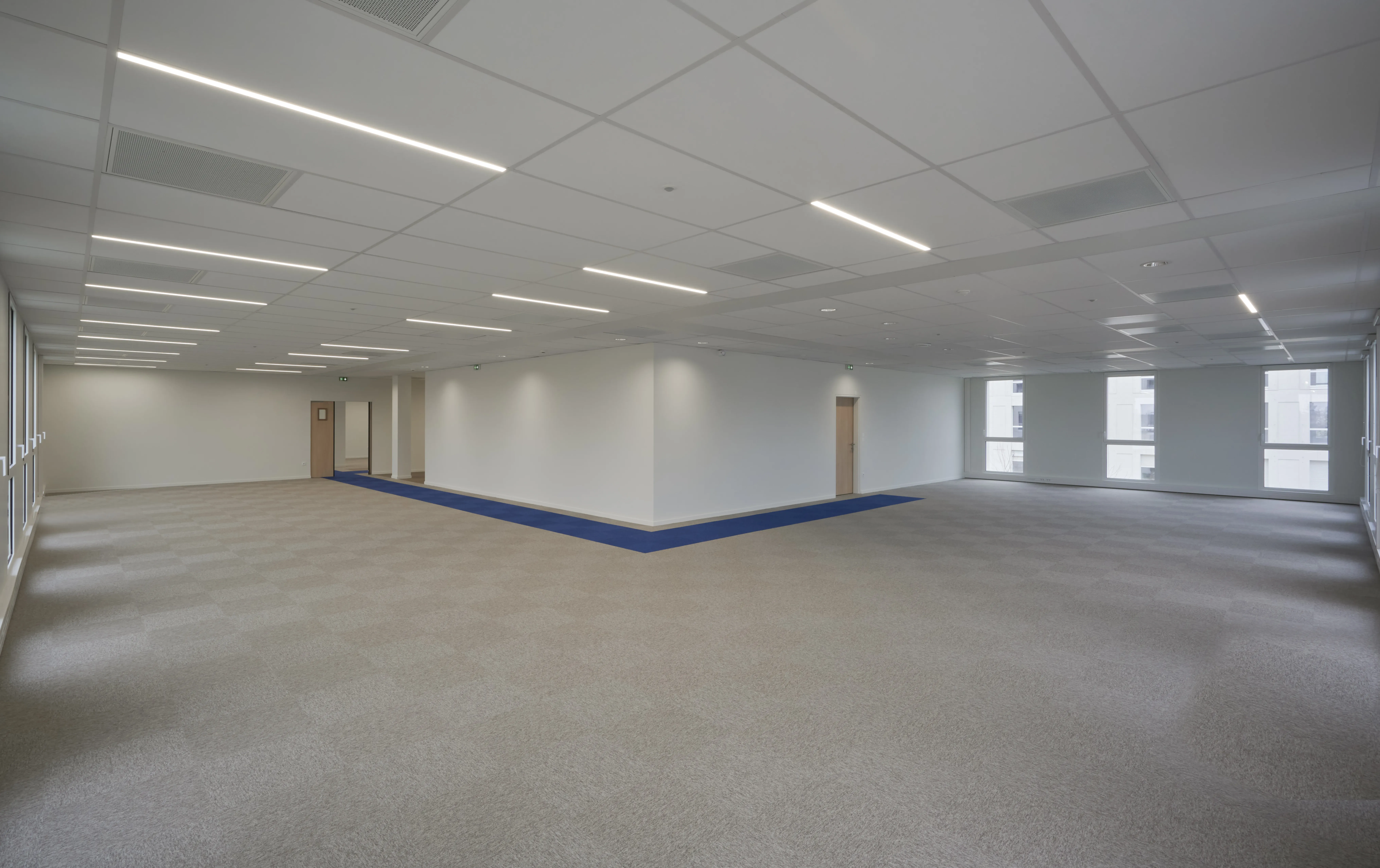 Open space with skylight lighting thanks to the large window and uniform lighting concealed in the ceiling thanks to the COLORS luminaire.