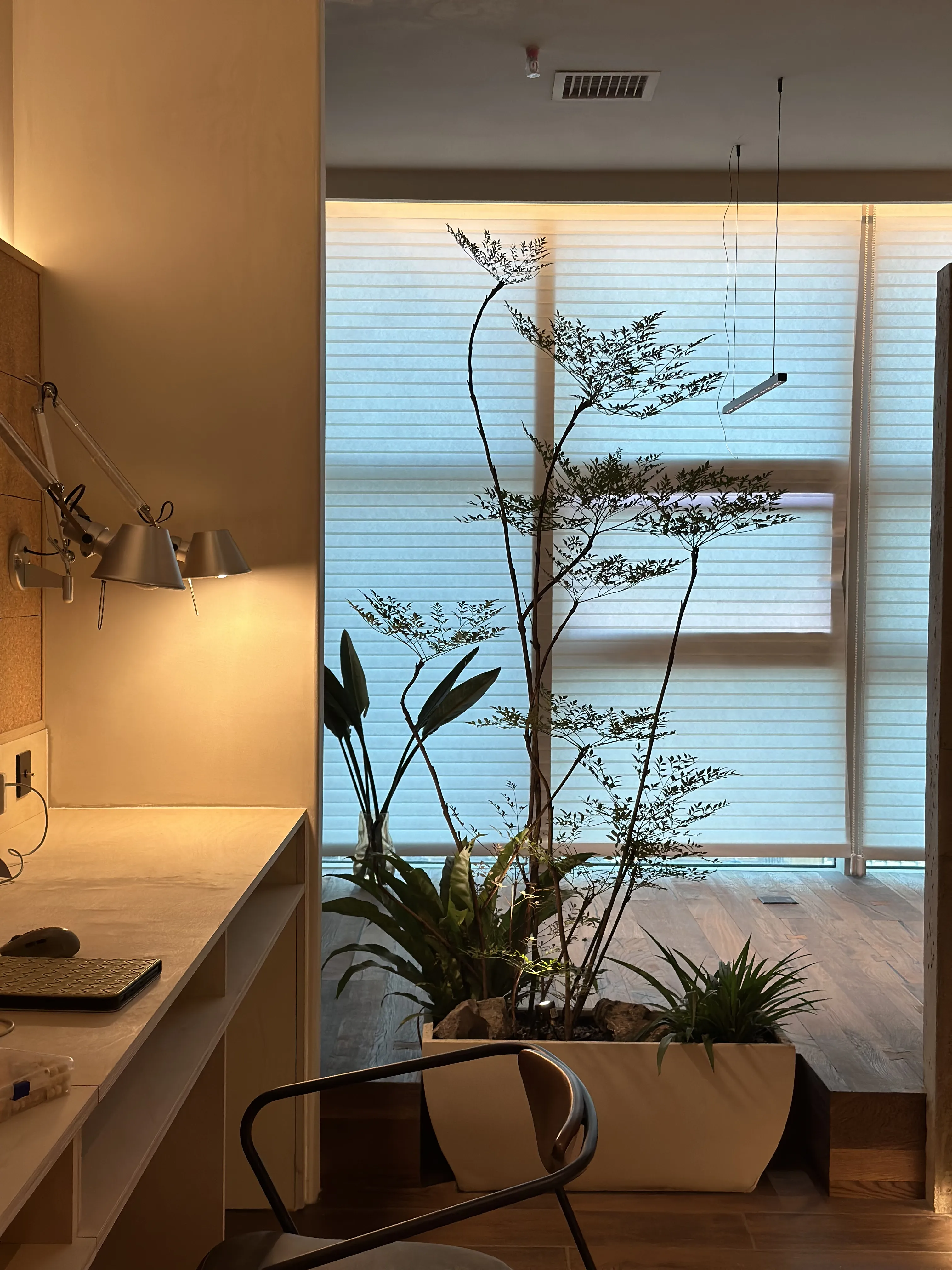 Hilltop.design is a very young design team with a strong foundation in architectural space design and rich imagination. Engaged in interior design and soft decoration design, the office covers an area of 80 square meters and is divided into a design area, office area, reception area, and a small meeting area. In the office, meeting, and design areas, the team conveys a sense of reverence and attitude towards spatial art and design. The reception area creates a warm atmosphere for communication, enriched by artistic ambiance. The office space interacts with the reception area through a semi-enclosed layout that allows for visual connections.