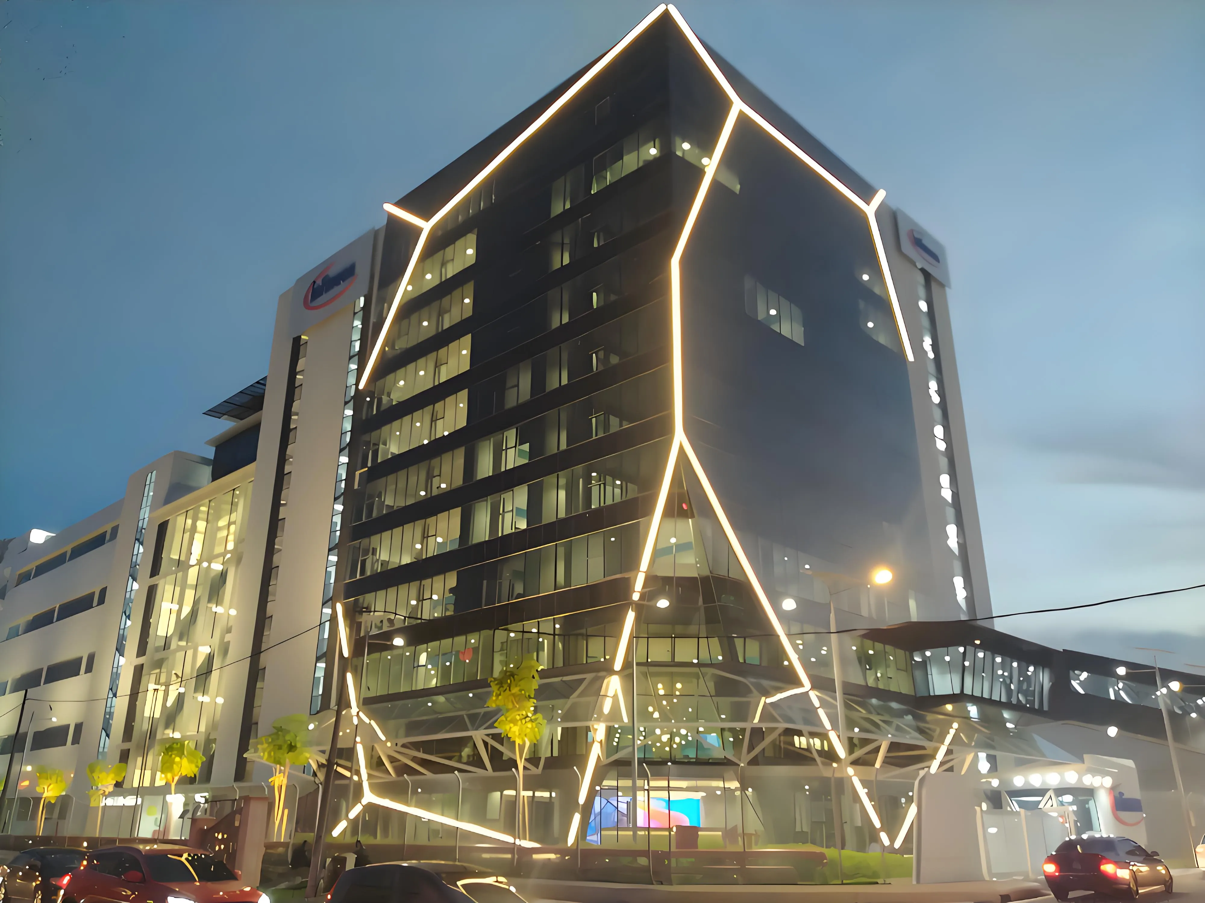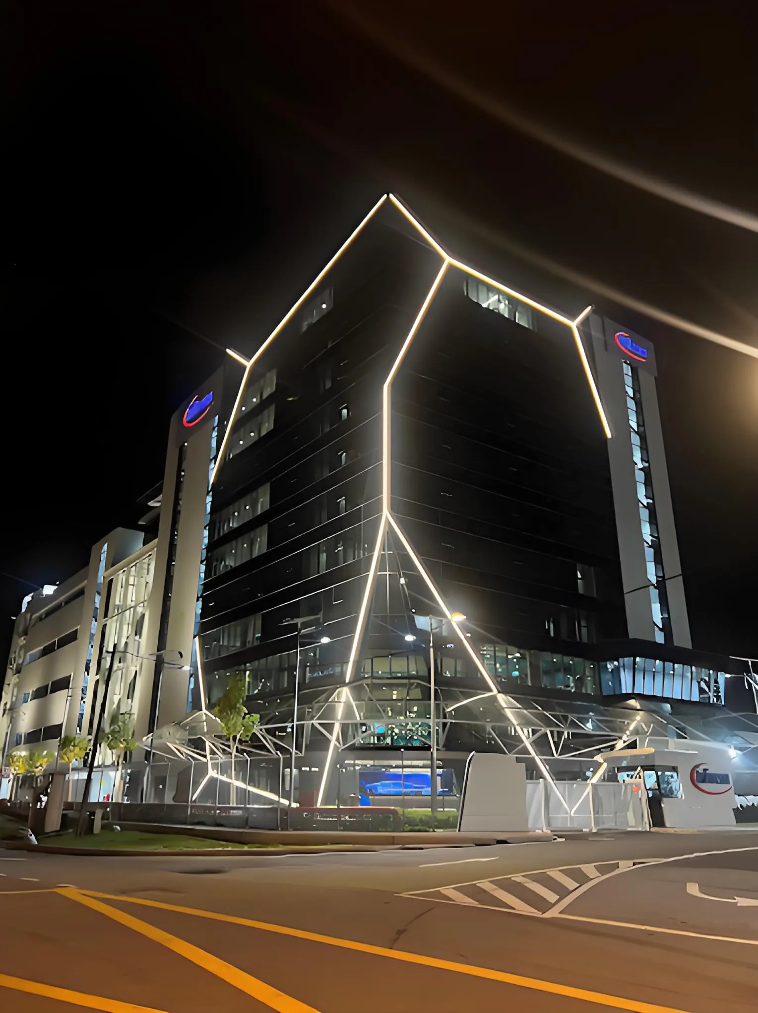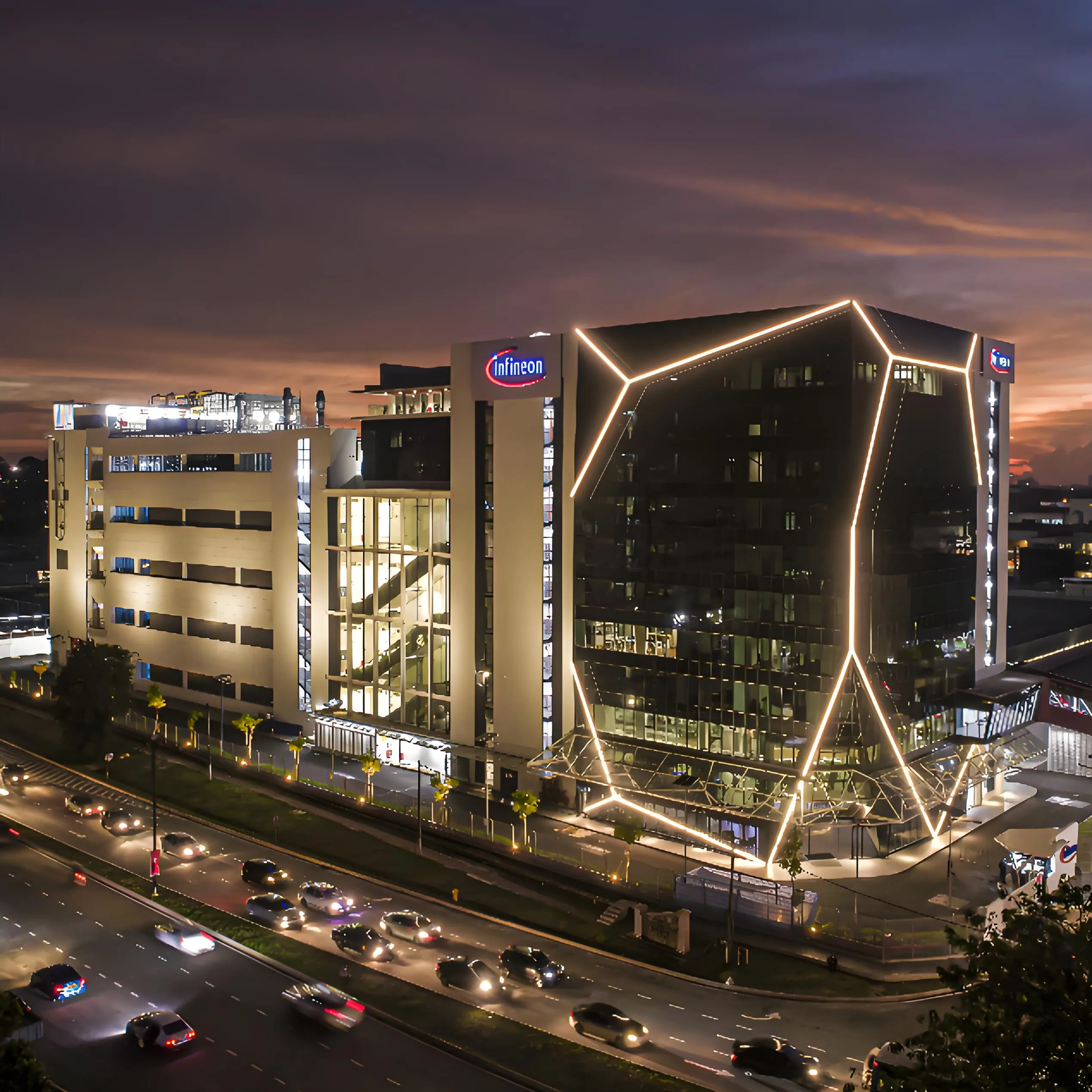Infineon’s new manufacturing and office building in Melaka, Malaysia. This project used NMT1312U neon to outline the facade.