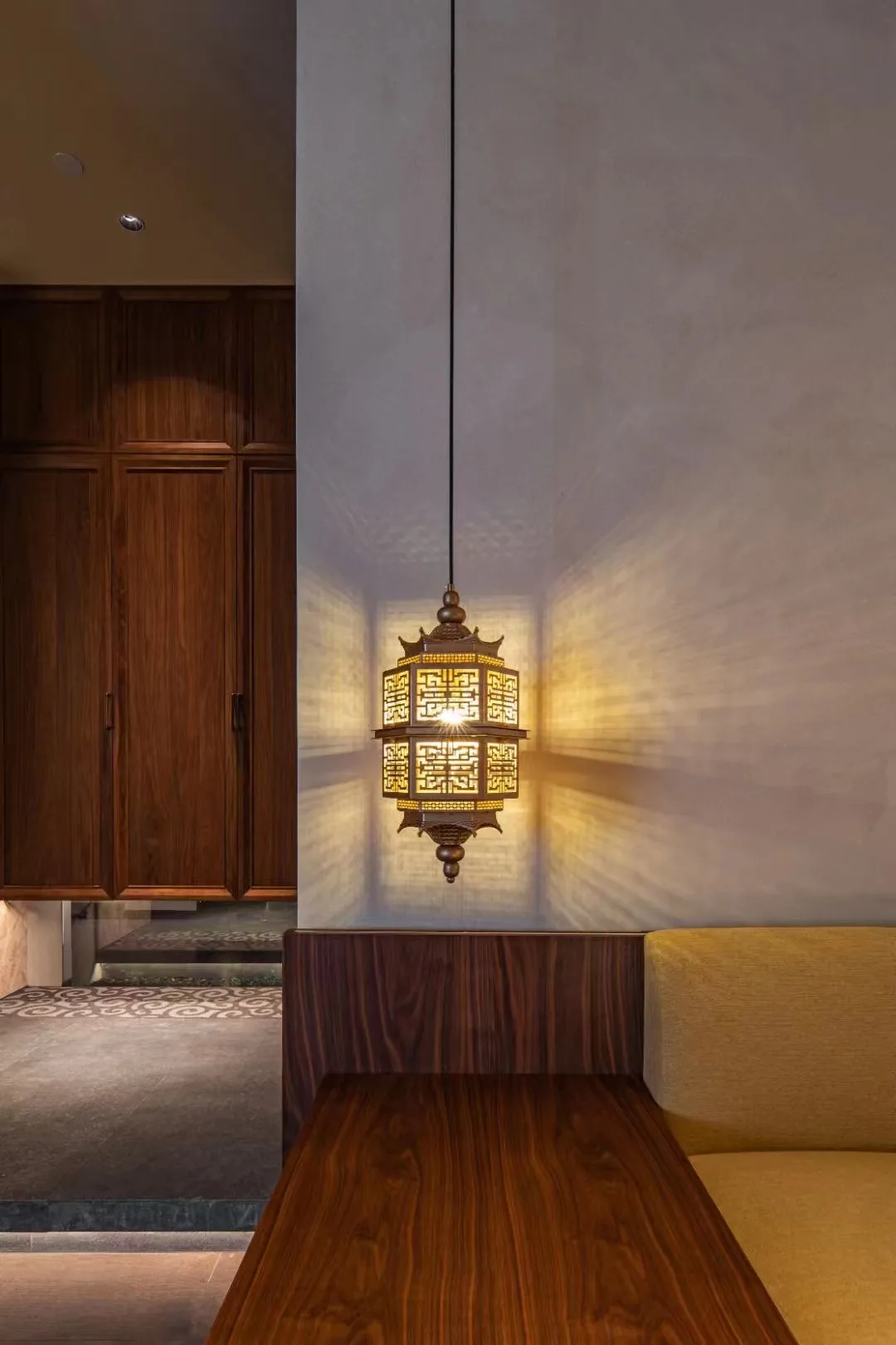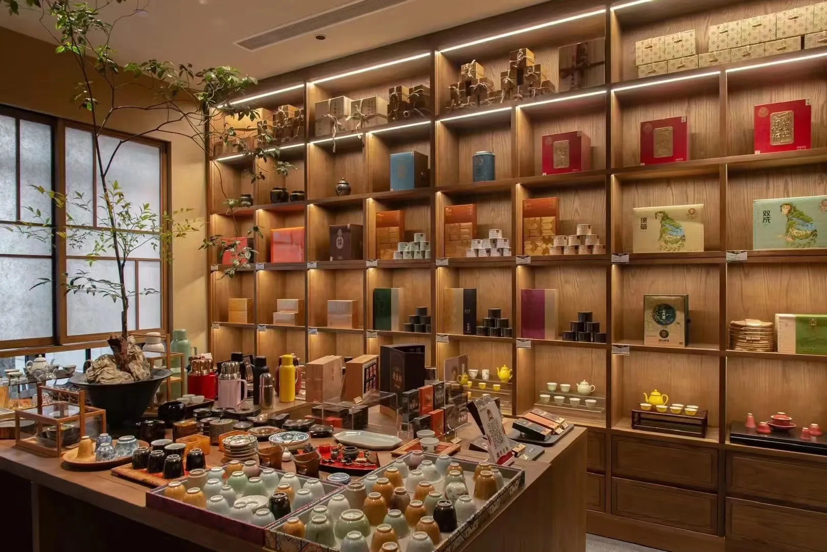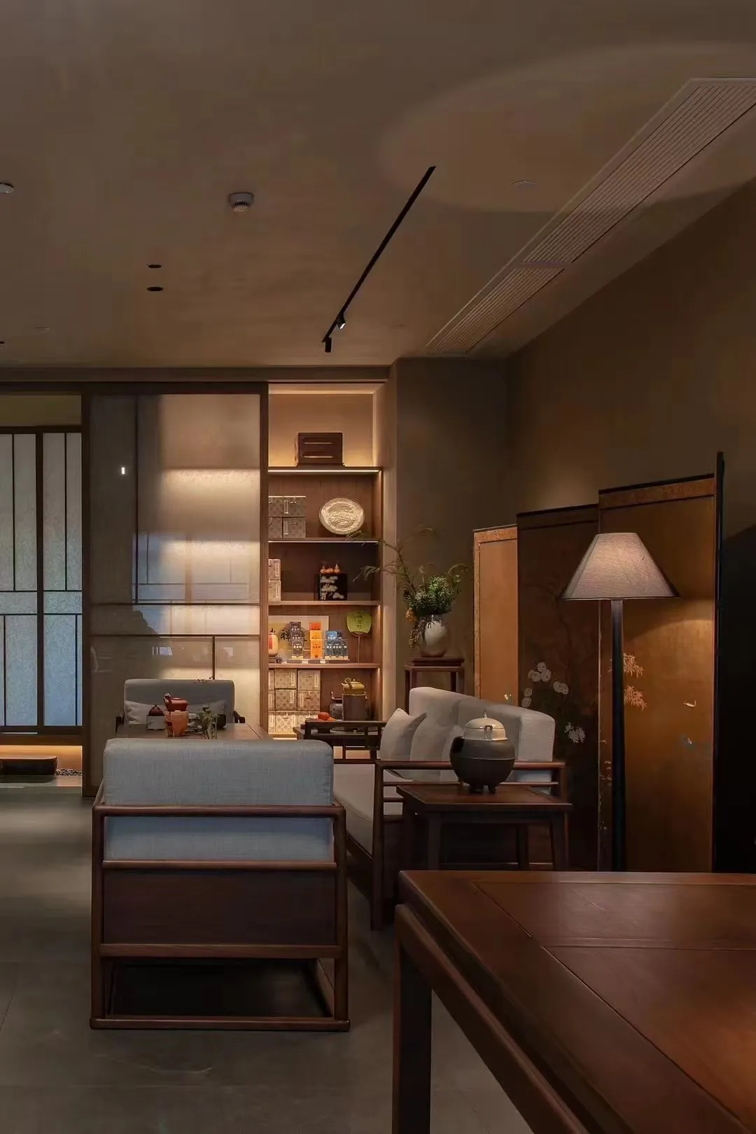 The project is an integrated experiential space that combines a Moutai exhibition, a tea room, and dining, covering an area of about 1,800 square meters. Various functional areas inside are adorned with numerous small landscapes, and lighting is used to create a play of light and shadow, achieving an effect where shadows also become part of the scenery. Overall, it presents a traditional Chinese atmosphere with an antique charm.