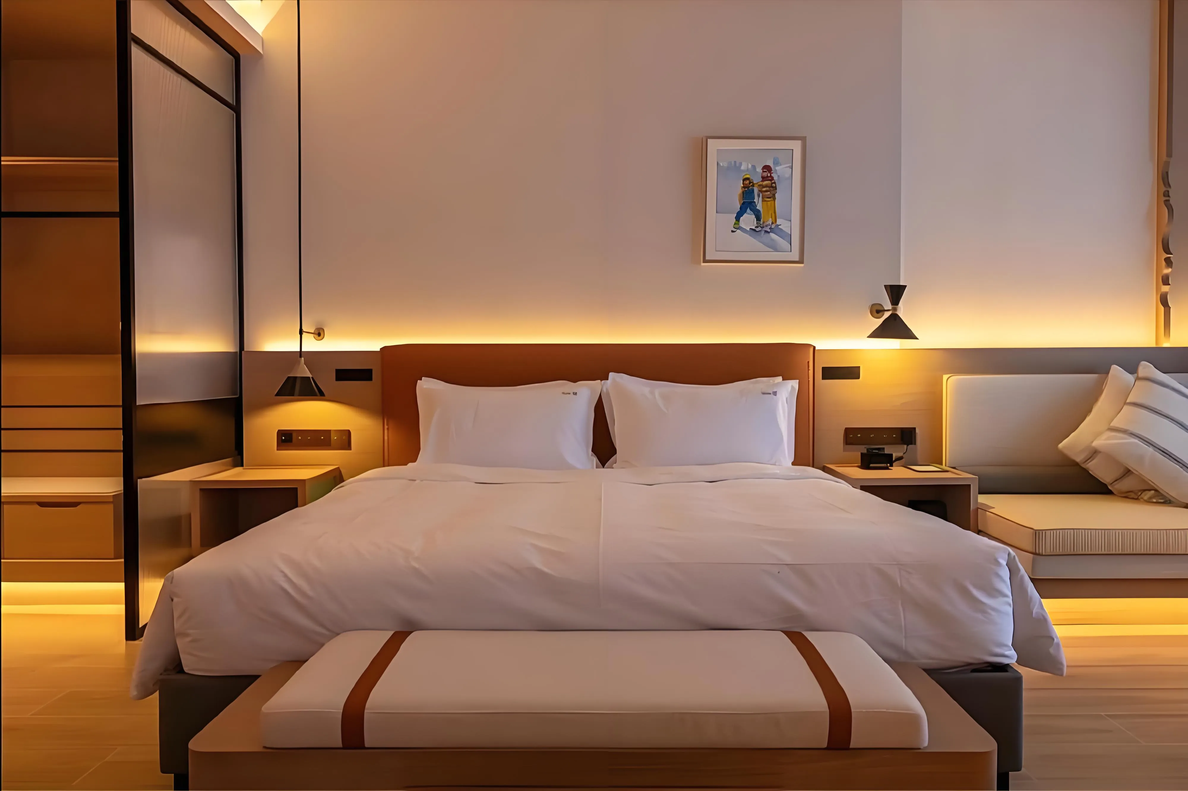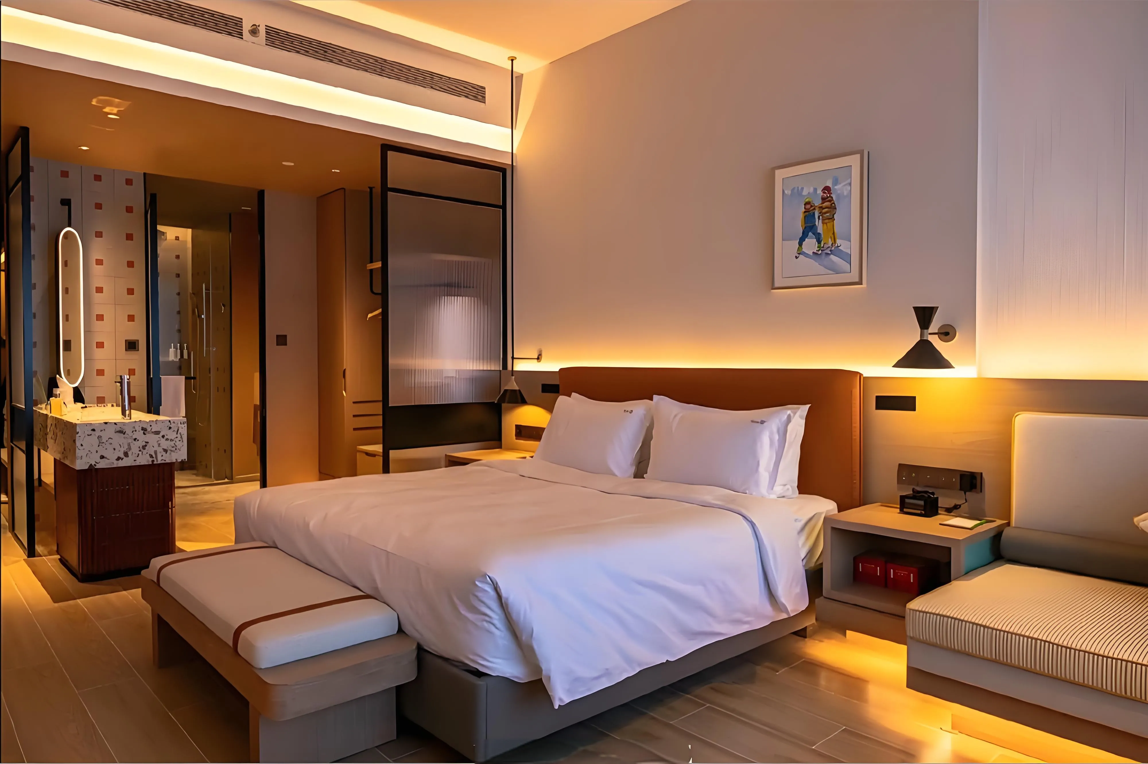 Amidst the icy landscapes, the hotel offers a quiet, comfortable, and high-quality accommodation and leisure environment for athletes and tourists, ensuring that every guest can have an unforgettable journey in Hemu.