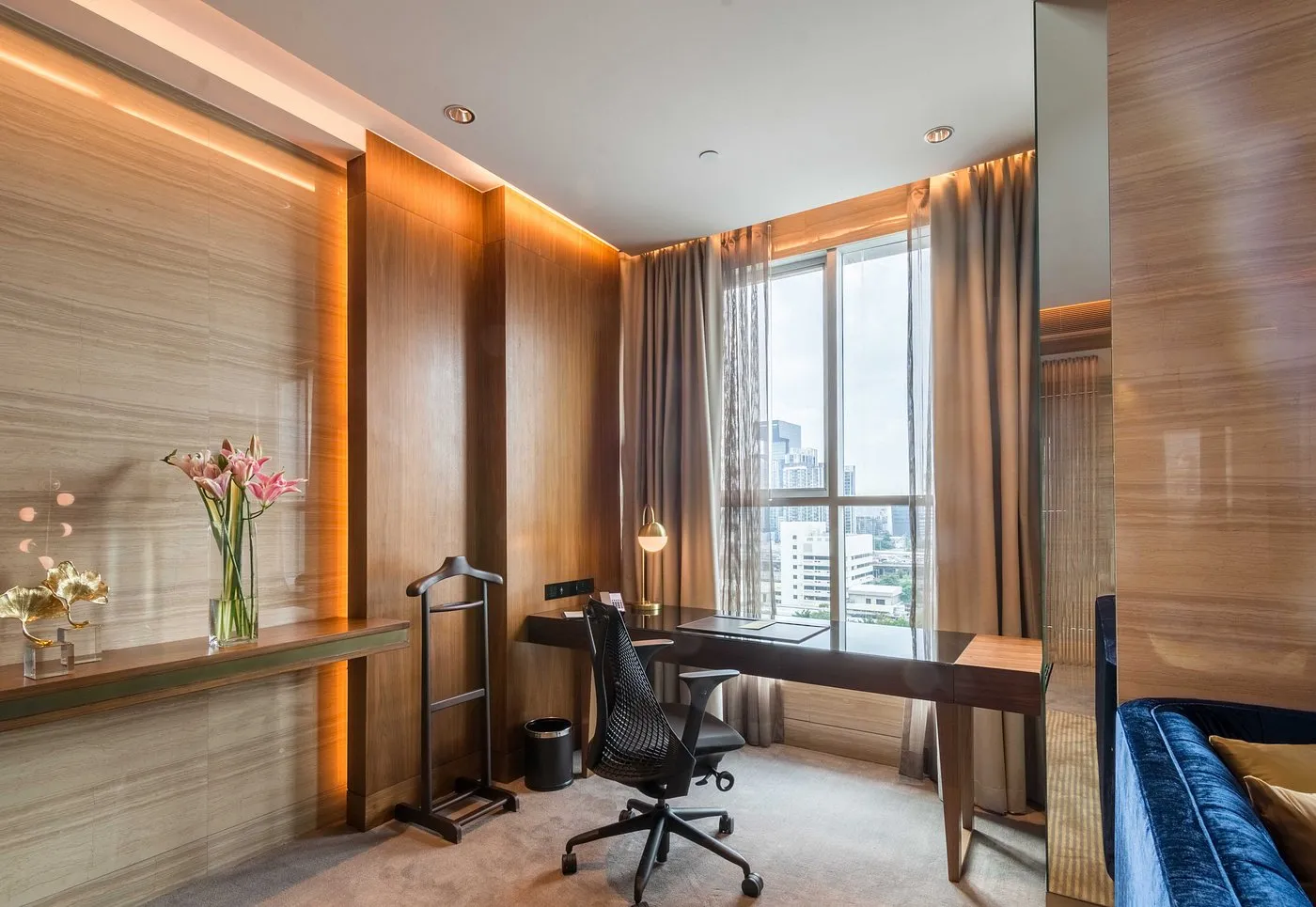 The five-star Lancaster Bangkok hotel features rooms equipped with air conditioning, flat-screen cable TV, and private bathrooms. The hotel offers a fitness center, swimming pool, a poolside bar with views of Bangkok City, free WiFi, and private parking.
