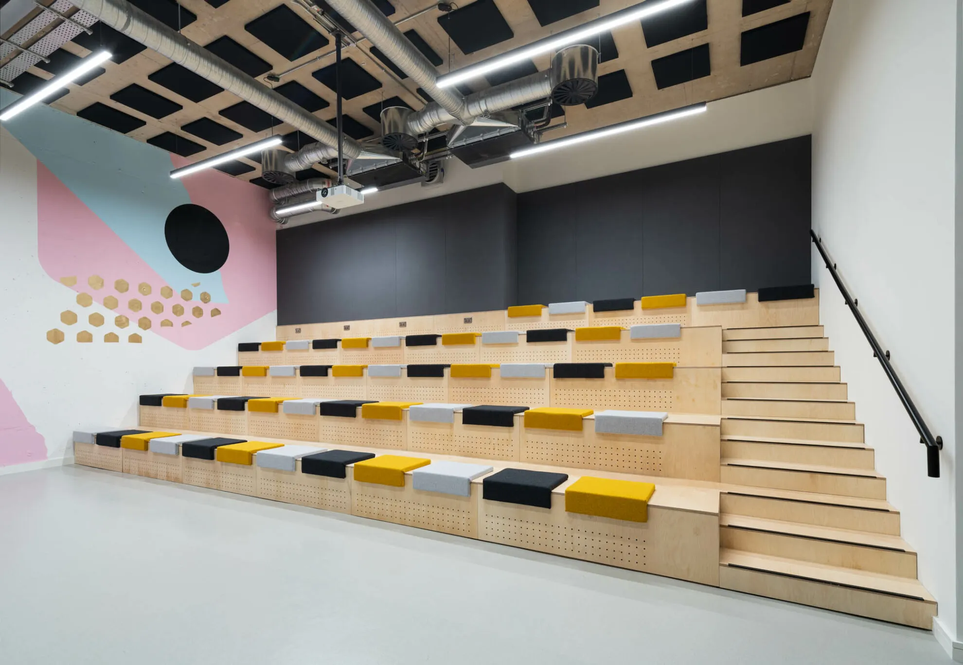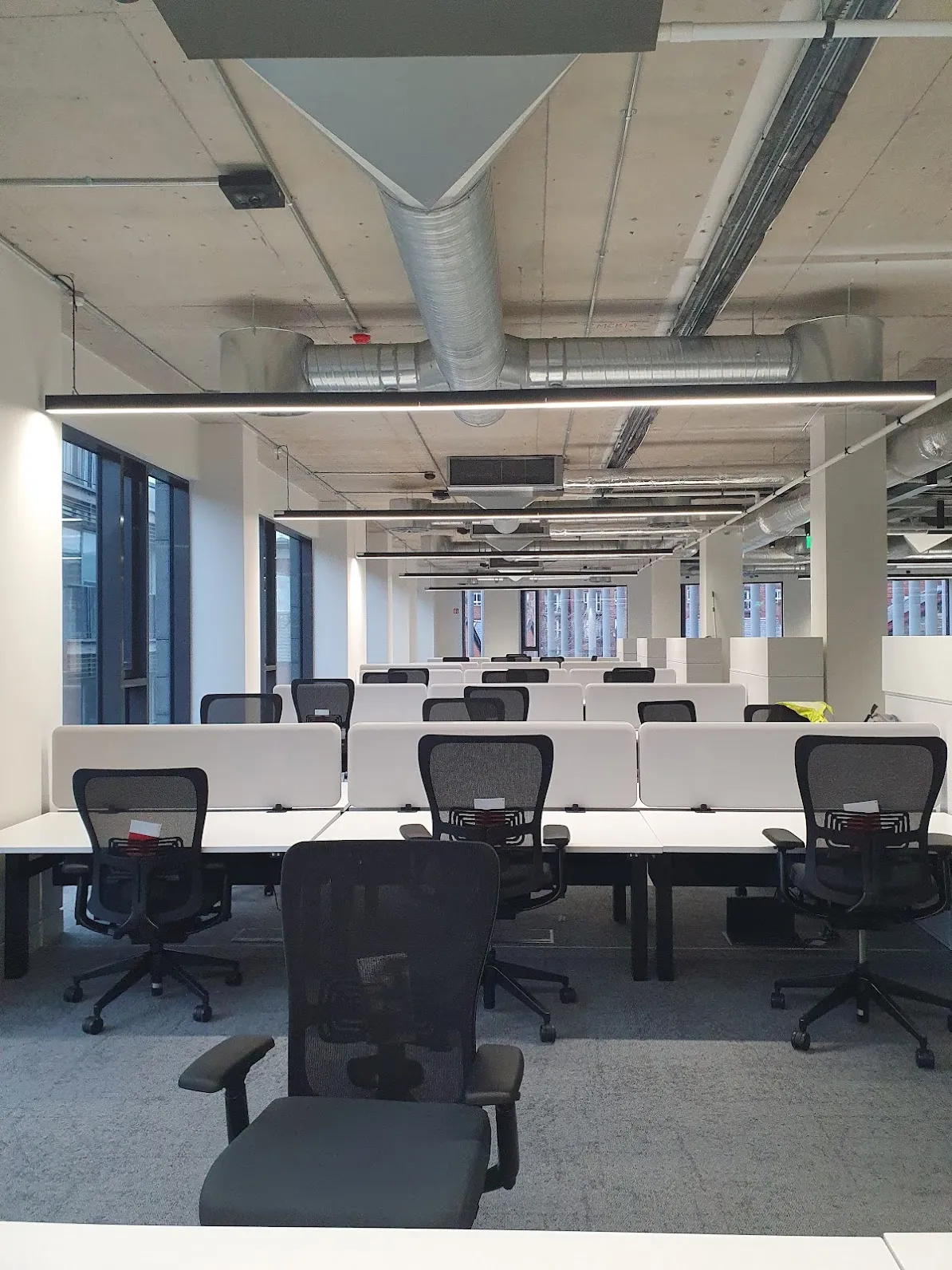 The building has 5 floors, and the front desk, auditorium, rest area, and the whole office area use COLORS linear luminaires as the main lighting. The lights support smart controls, making the office area cater to personal needs and be easily controlled.