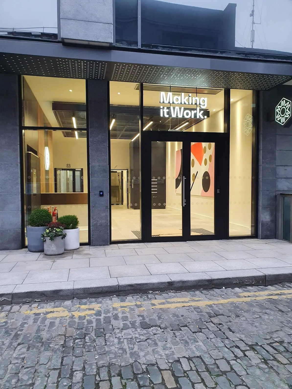 Making it Work, exceptional workspaces on flexible terms brought to you by Ireland’s real estate provider of choice. The space is designed for maximum adaptability with large windows offering a bright and healthy work environment. Private floors offer open-plan workspaces, meeting rooms, phone booths, kitchens, and collaboration spaces.