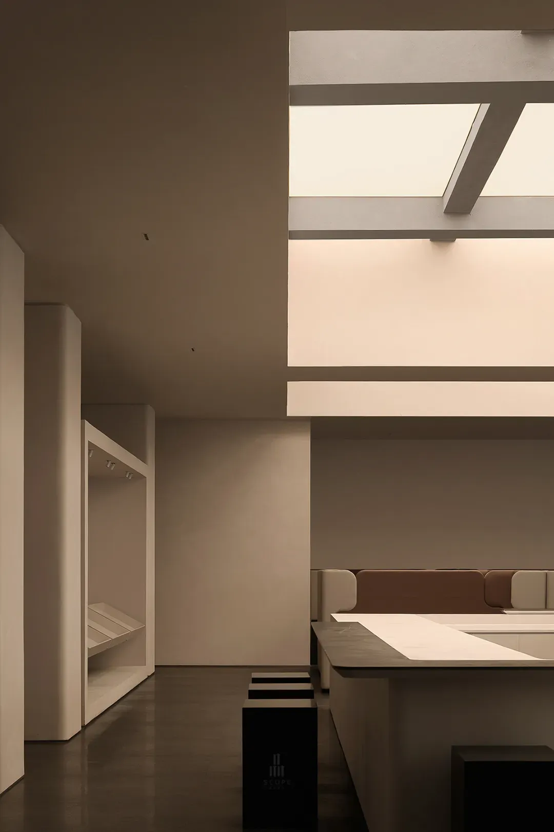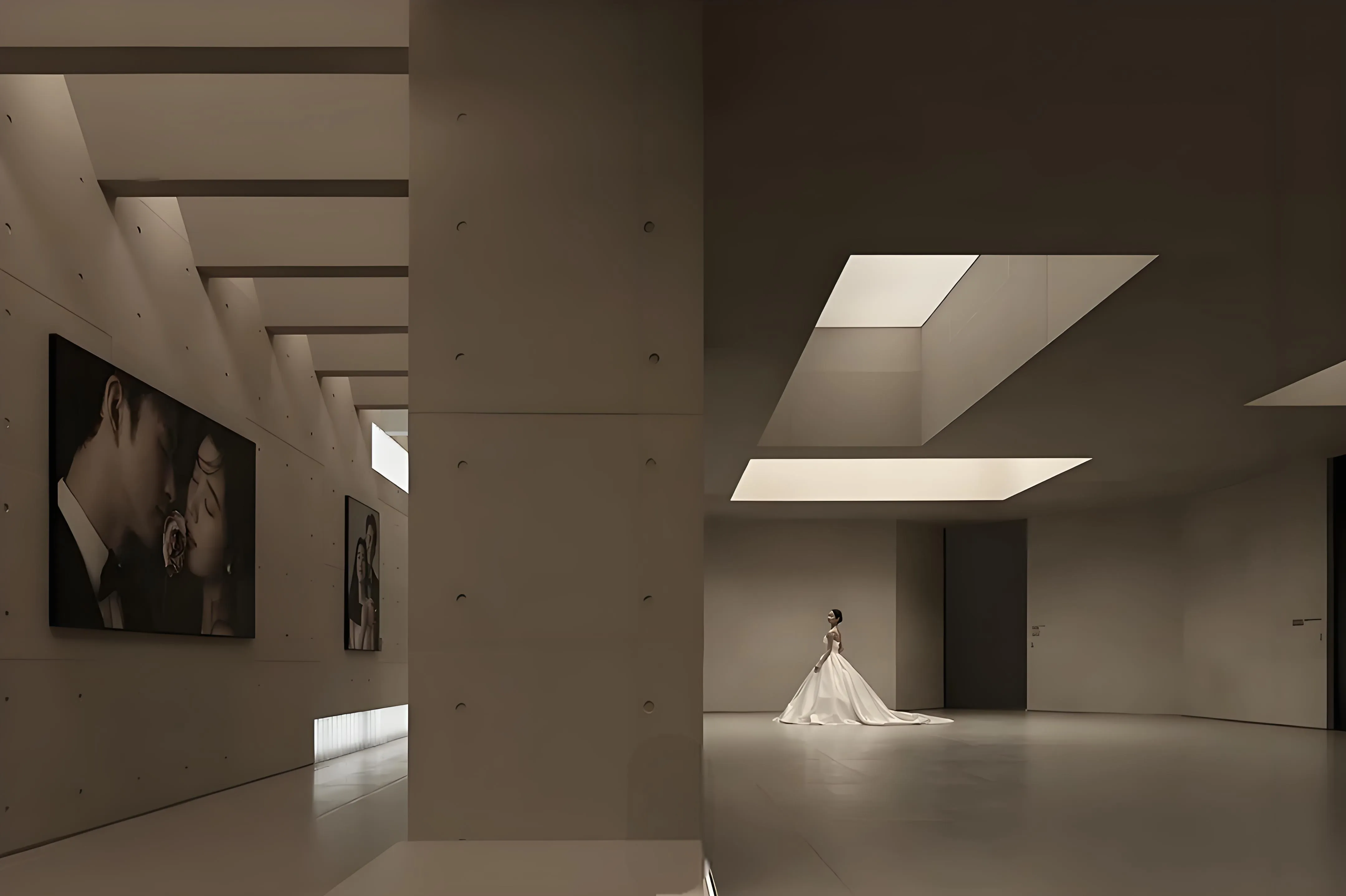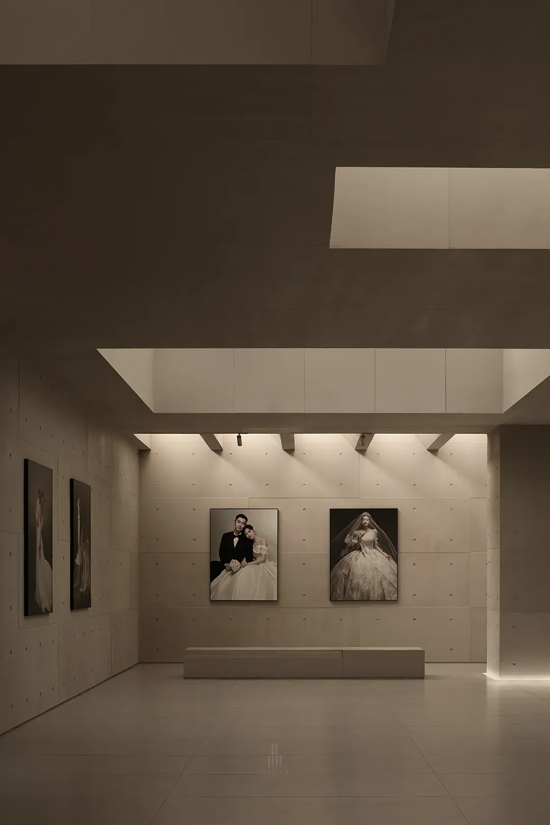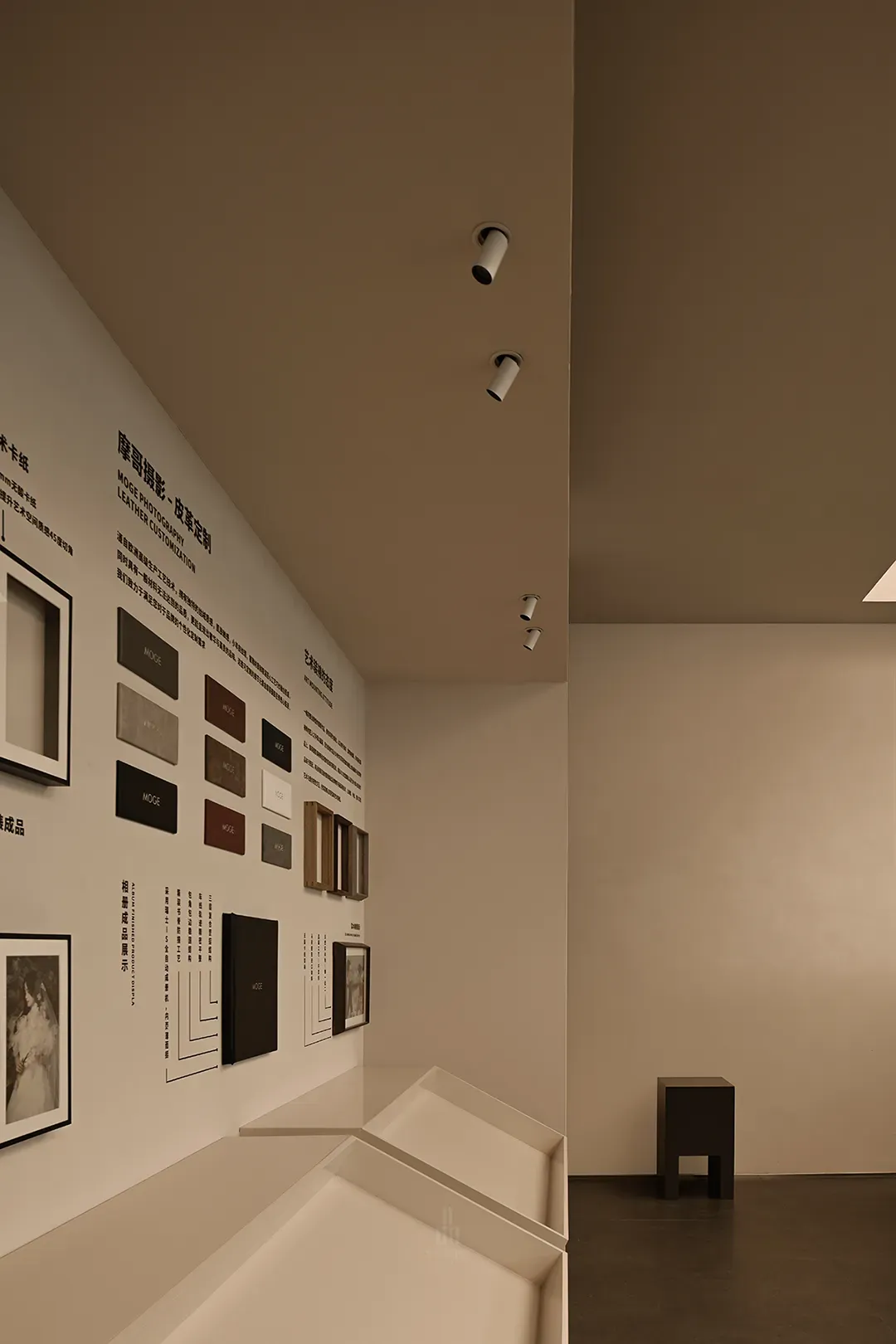 MOGE Photography is located in Zhengzhou City, Henan Province, in the heart of the city - Chamber of Commerce Building 4F, with a volume of 8000m to build the brand's first culture and art complex. A divine and loving building, it is never a place for trading, but a “space for dialog”. The designers utilized the original structure to reflect the essence of beauty, adopting the form of array sequencing, cutting the light with the wall, and each beam of light guides the visitor's gaze.