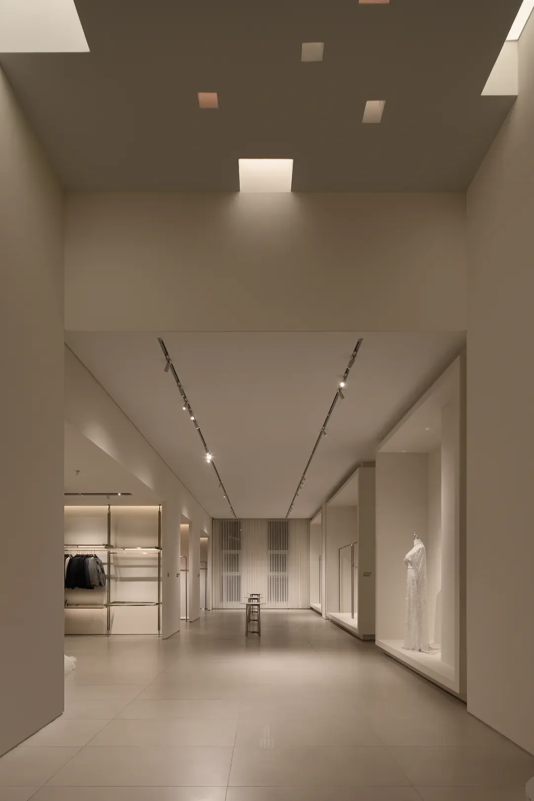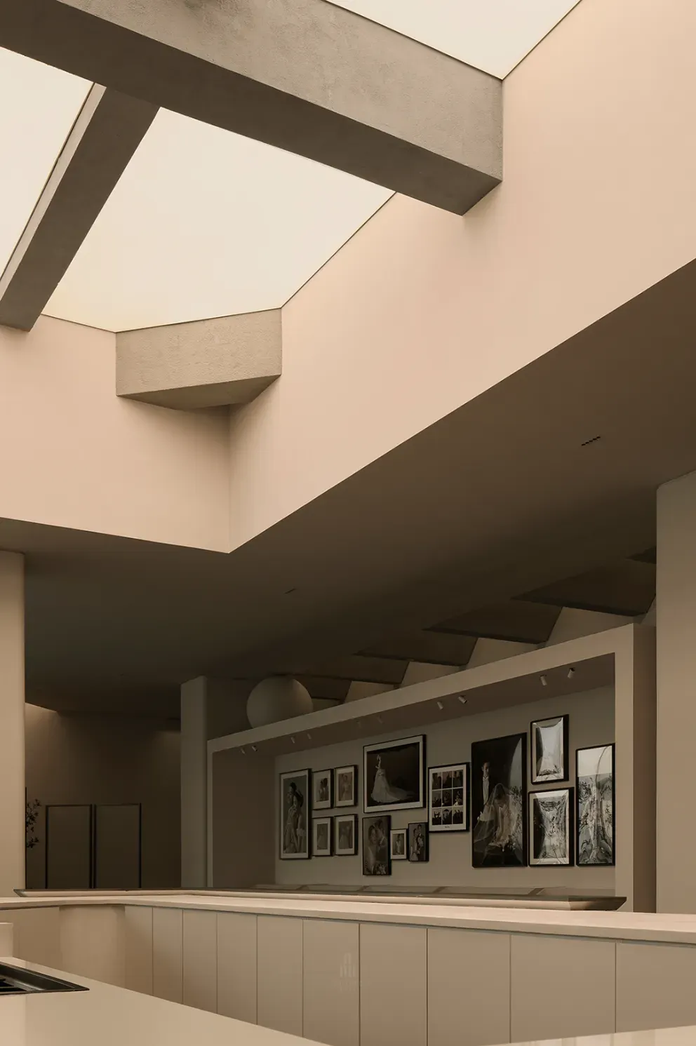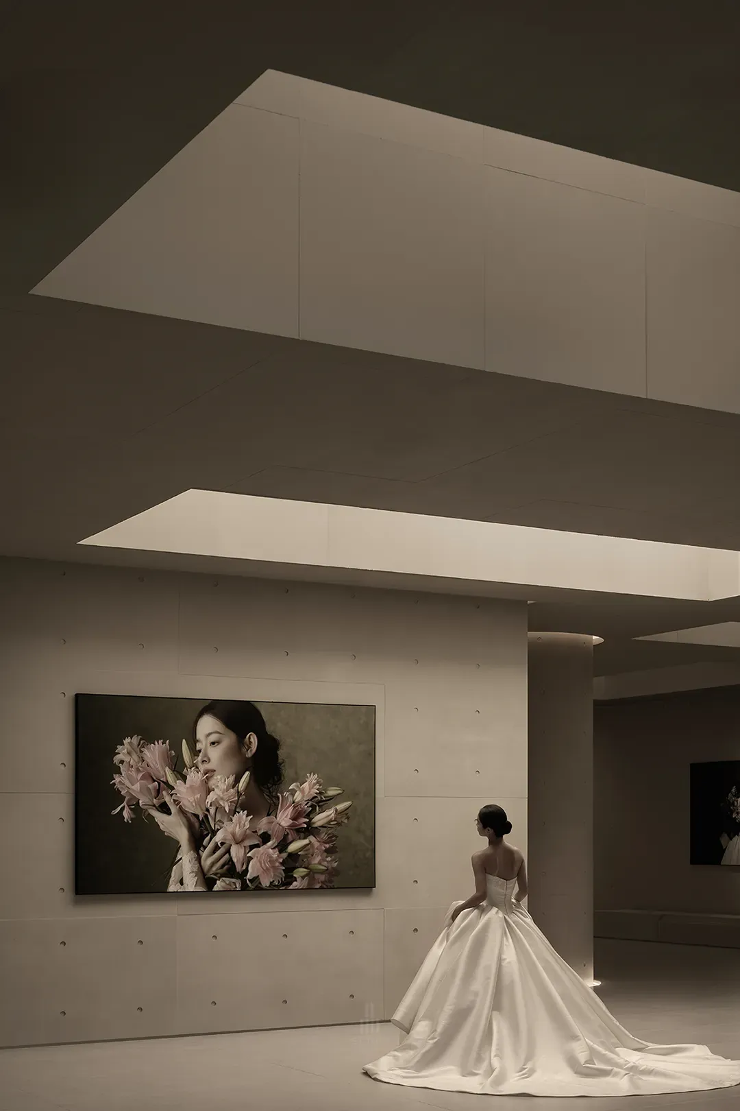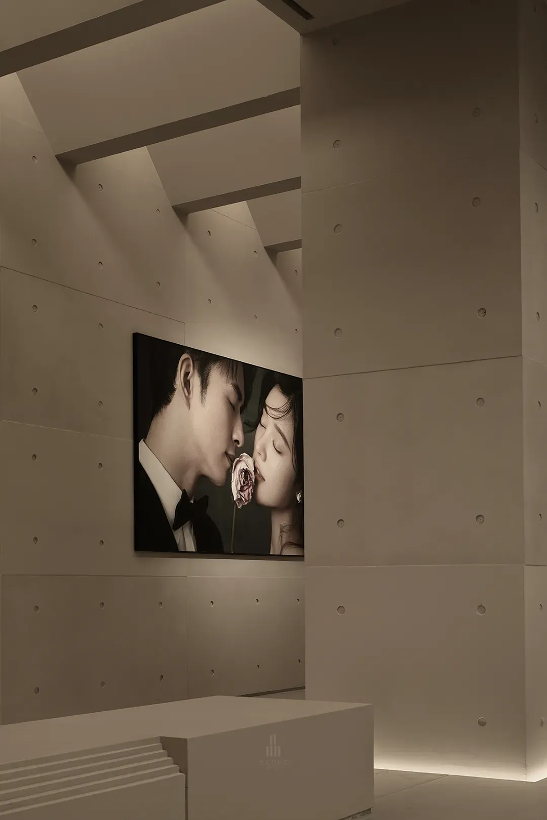 MOGE Photography is located in Zhengzhou City, Henan Province, in the heart of the city - Chamber of Commerce Building 4F, with a volume of 8000m to build the brand's first culture and art complex. A divine and loving building, it is never a place for trading, but a “space for dialog”. The designers utilized the original structure to reflect the essence of beauty, adopting the form of array sequencing, cutting the light with the wall, and each beam of light guides the visitor's gaze.