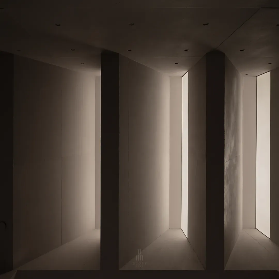 Through the irradiation of natural light and the formation of holy light and shadow in the interior space, this incomparable sacred visual experience and the expression of pure divine emotion can feel the designer's extreme and delicate pursuit of space.