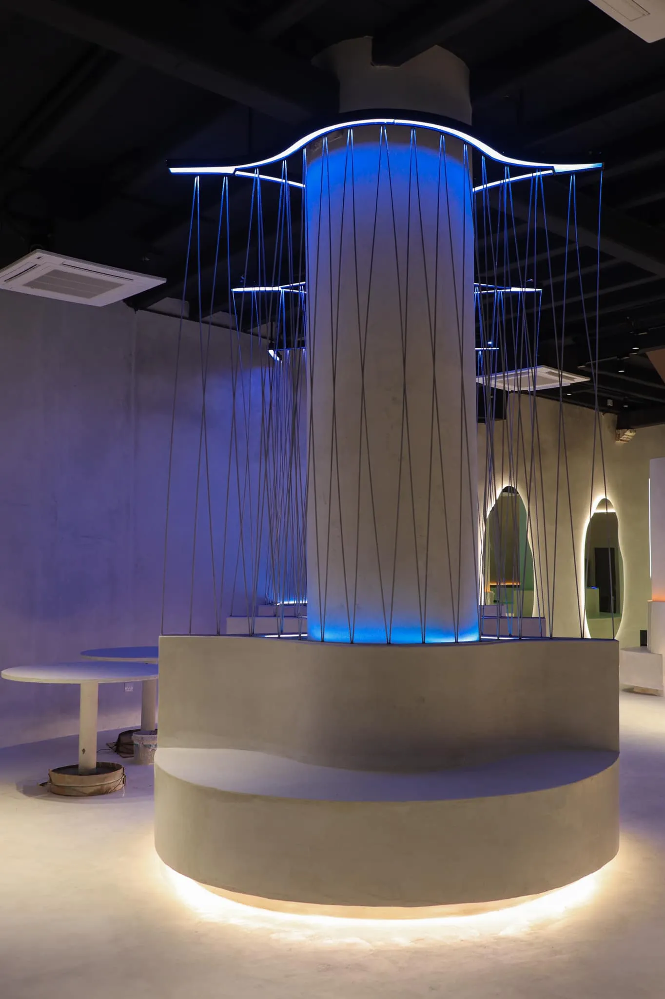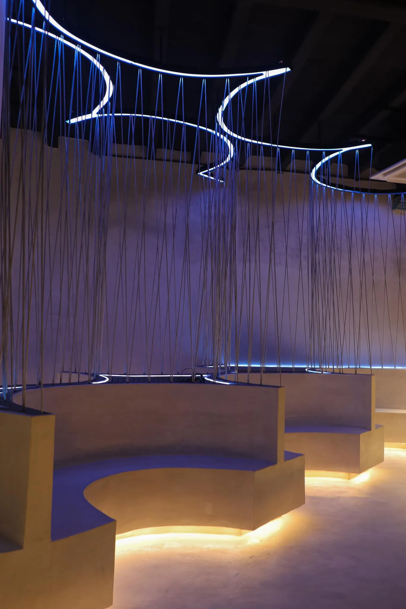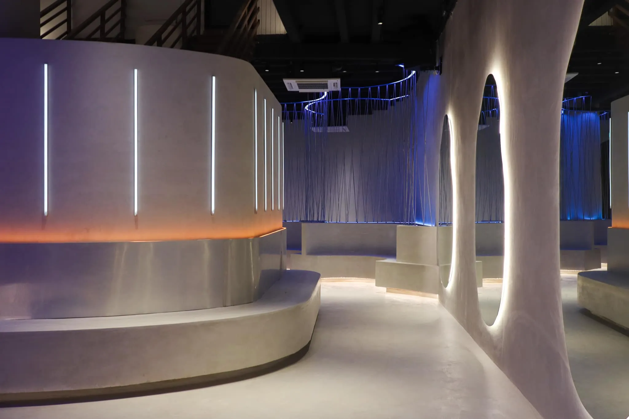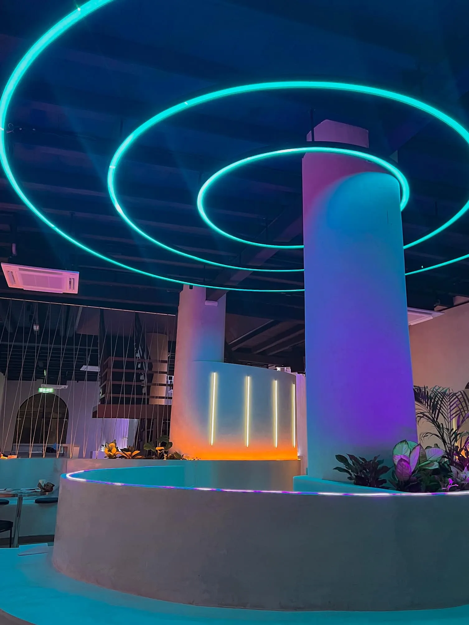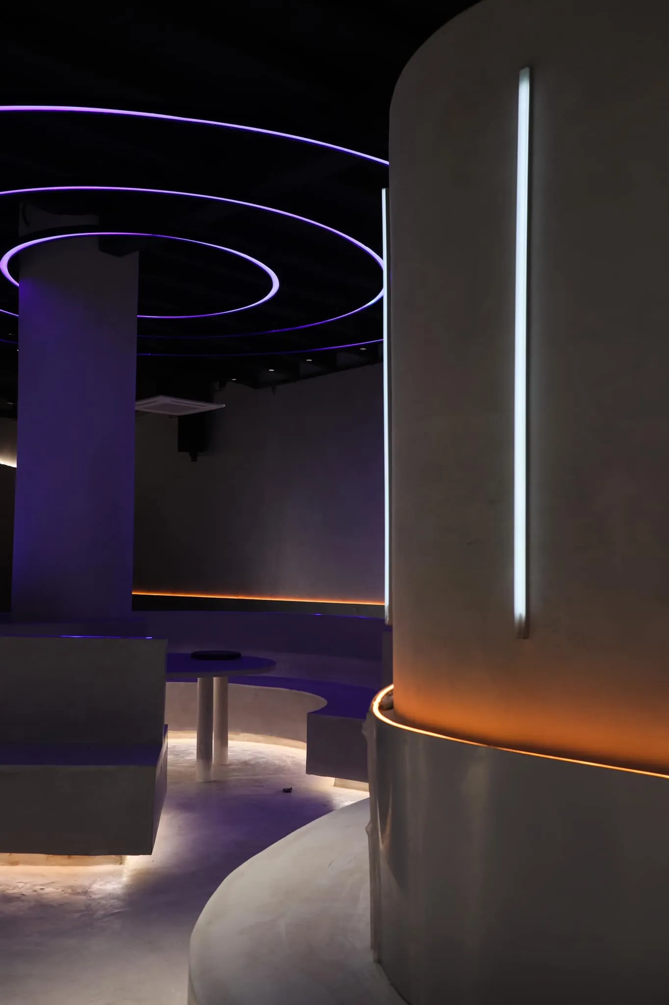 DF6 COF strips were used at the skirting board and behind mirrors while NMS1217 side-bending RGB neon strips go around the whole column and wall bottom as a decorative element and at the same time function as wall washing.