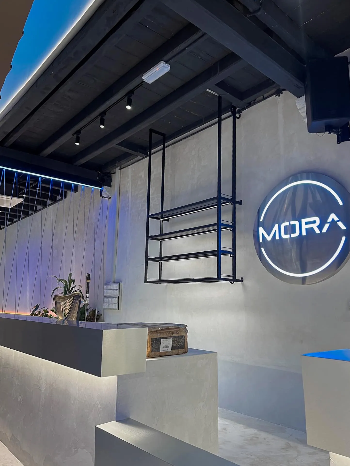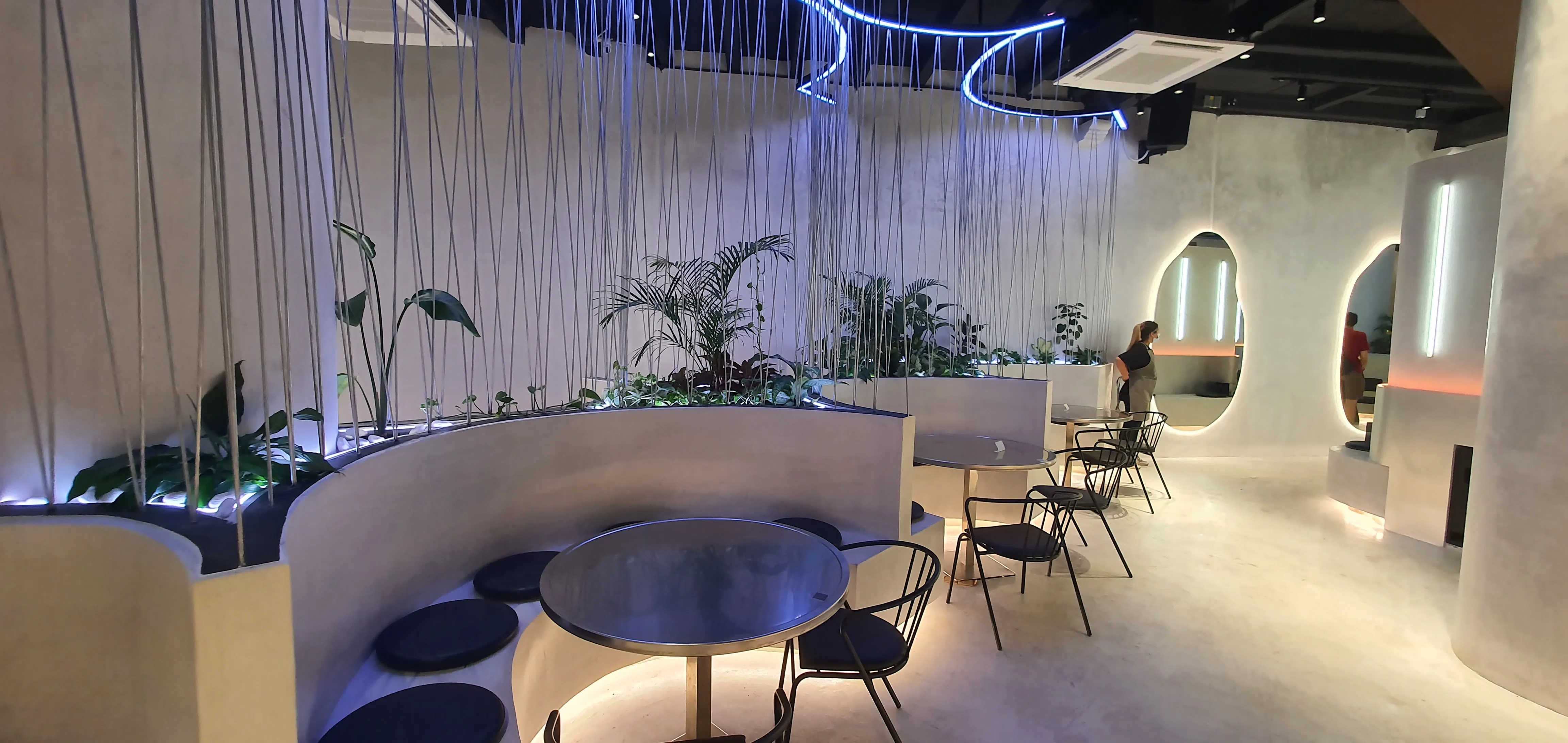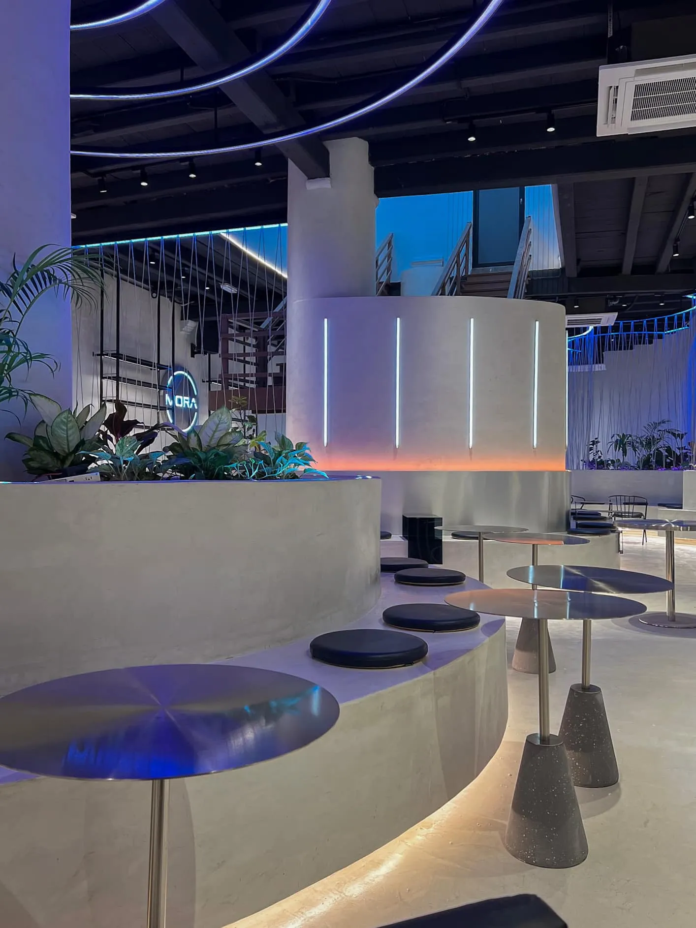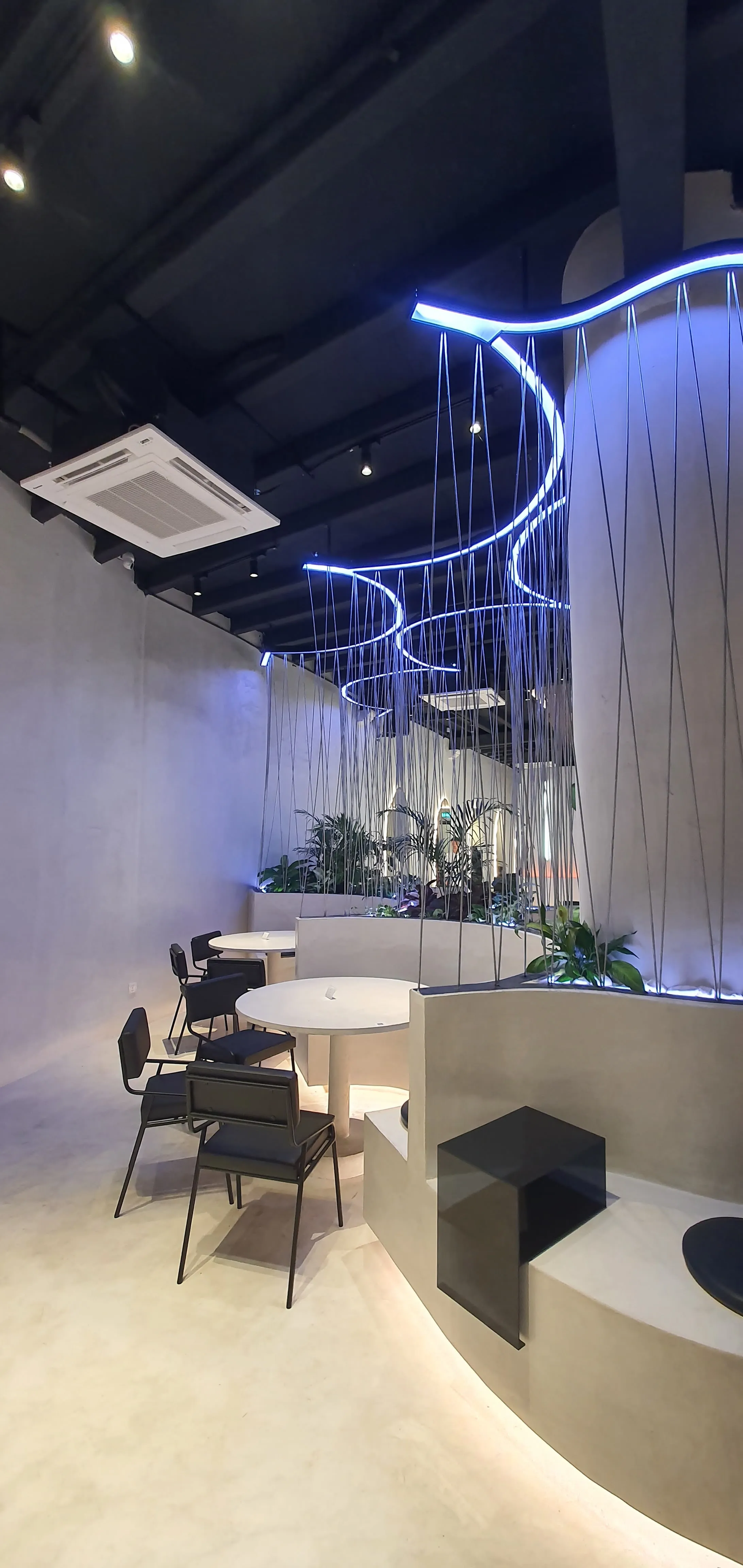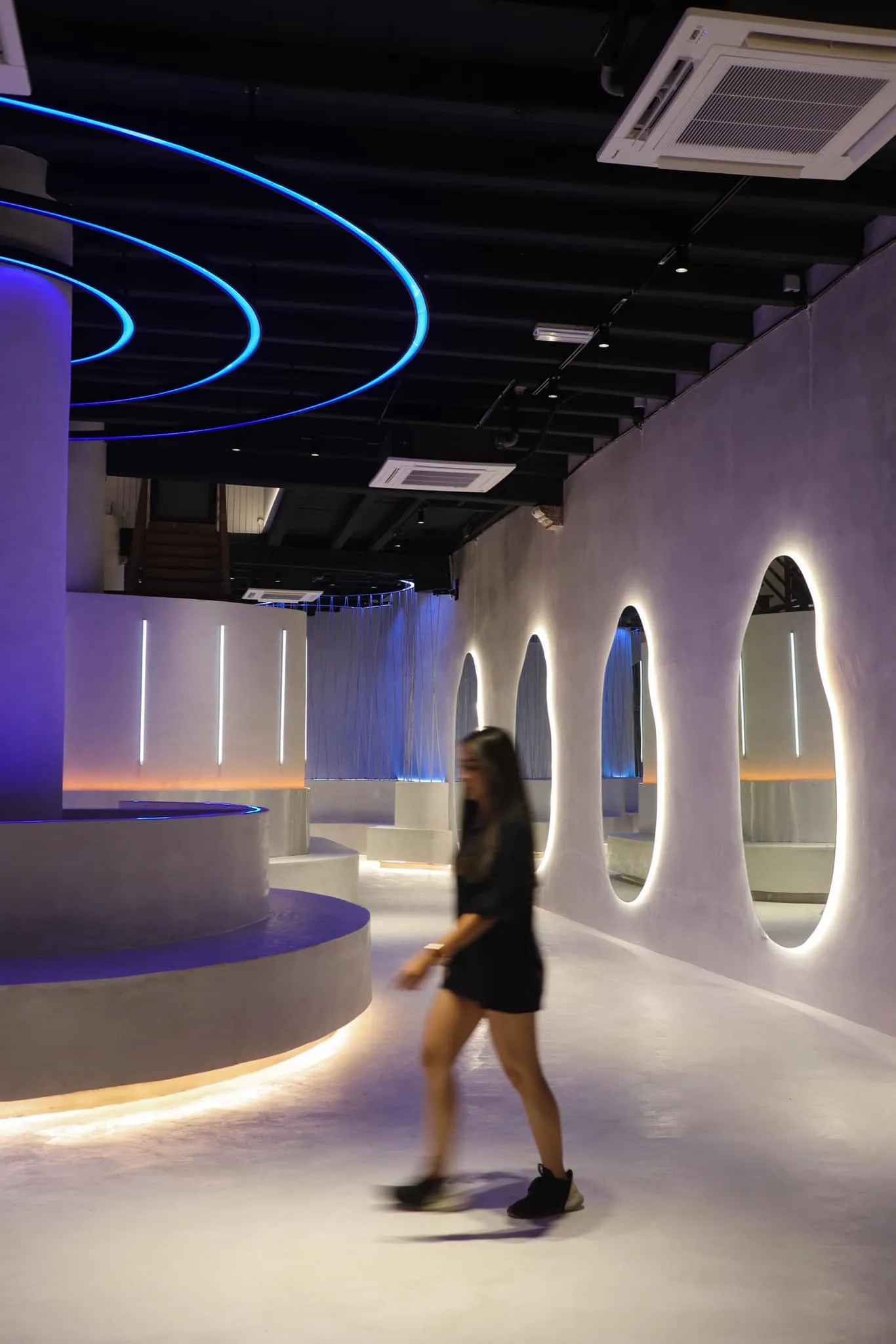 DF6 COF strips were used at the skirting board and behind mirrors while NMS1217 side-bending RGB neon strips go around the whole column and wall bottom as a decorative element and at the same time function as wall washing.