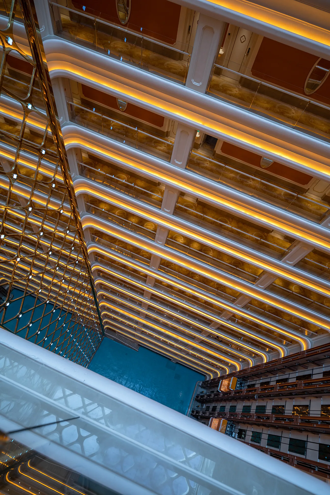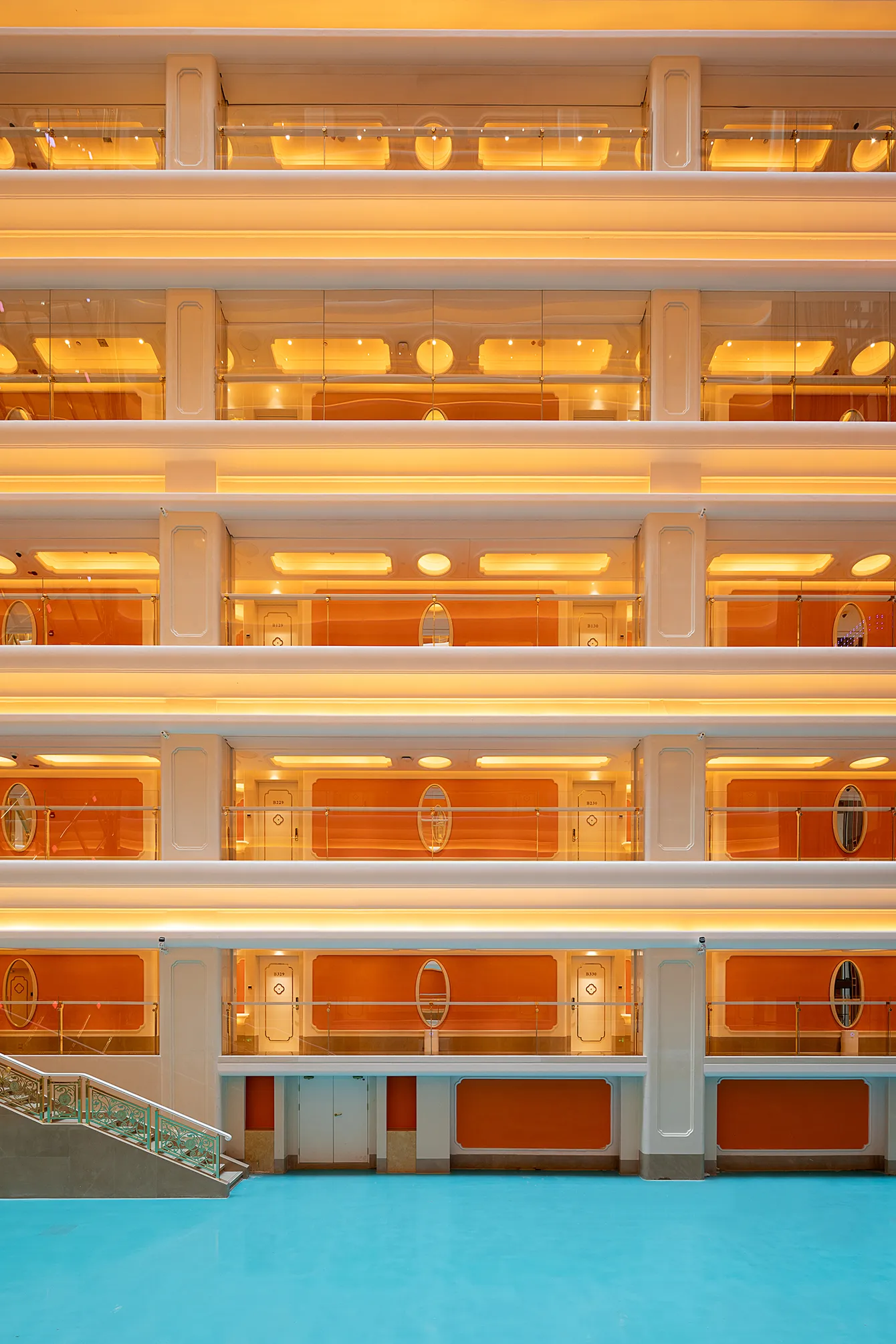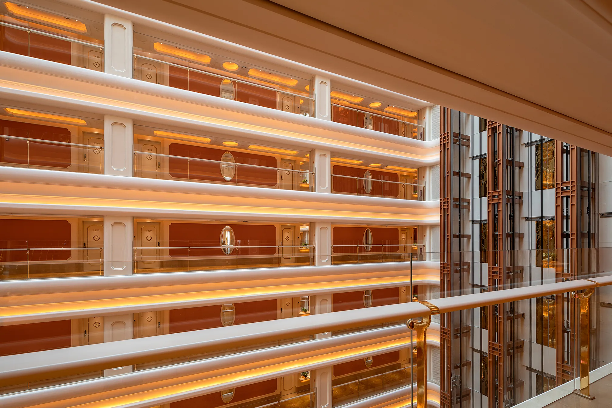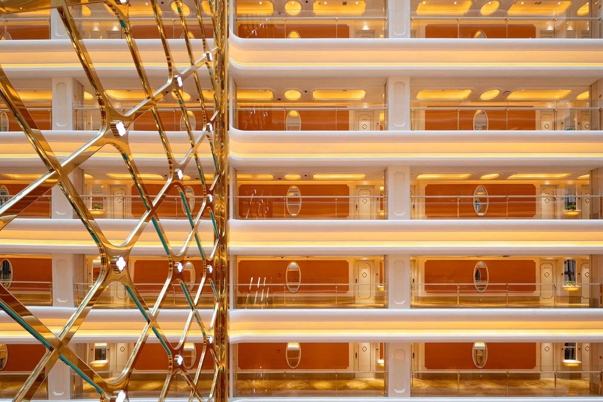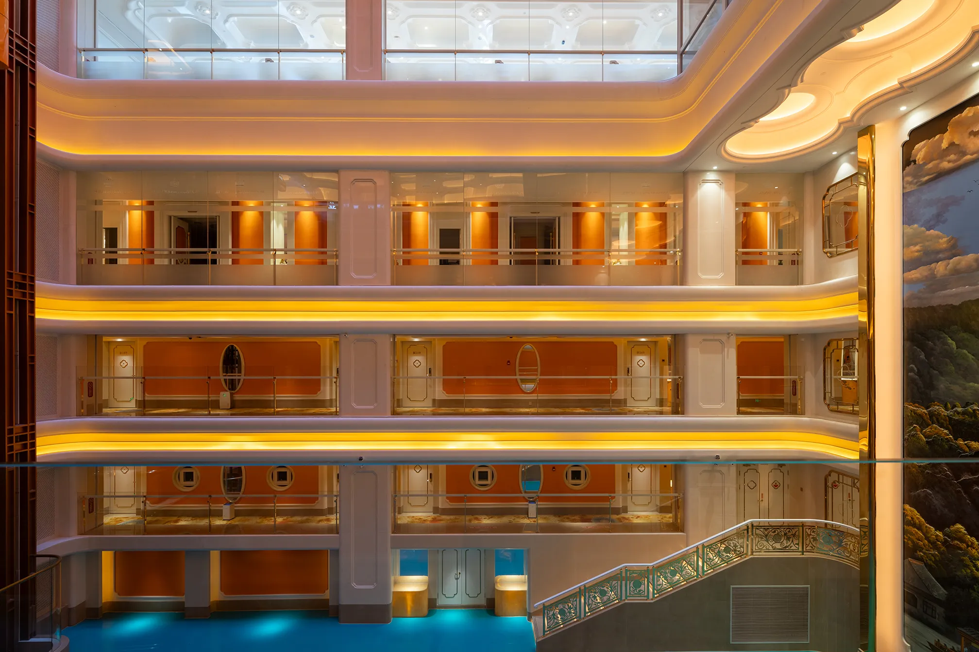 The interior space and lighting design are characterized by distinctive features: the extensive use of gypsum decorative materials for ceiling coves and wall decorations, the magnificent European dome, and the rich and exquisite sculptural patterns. Custom ultra-low color temperature golden light strips and lens wash lights are employed to highlight the spatial structure through indirect lighting. The upward lighting wash showcases the rhythm of the atrium to perfection, creating a luxurious atmosphere that offers warm and comfortable basic lighting while ensuring strong brand recognition.