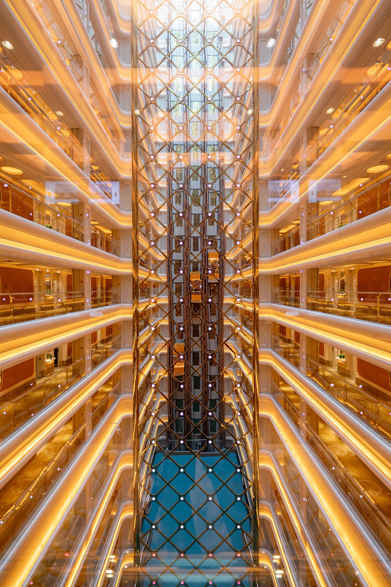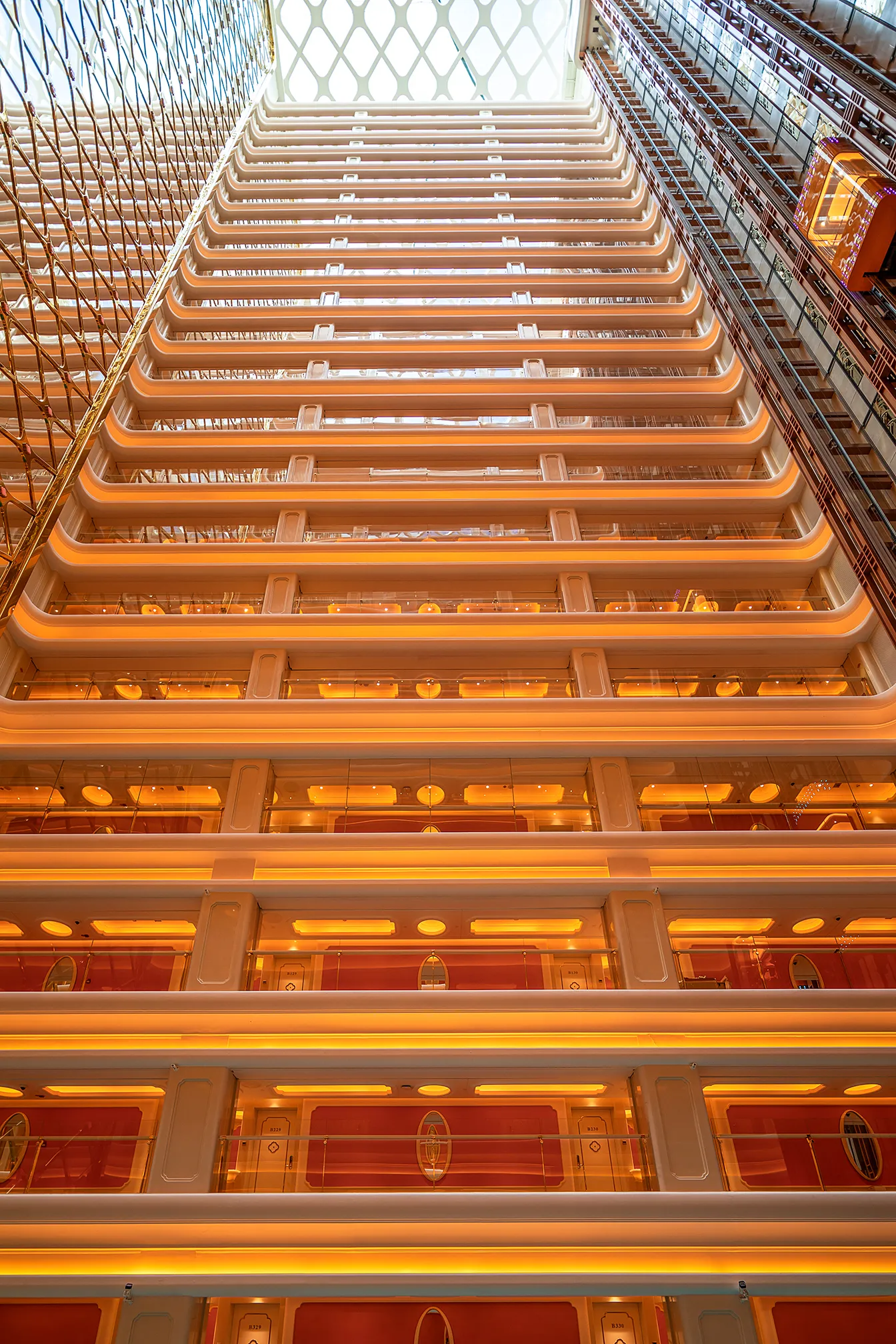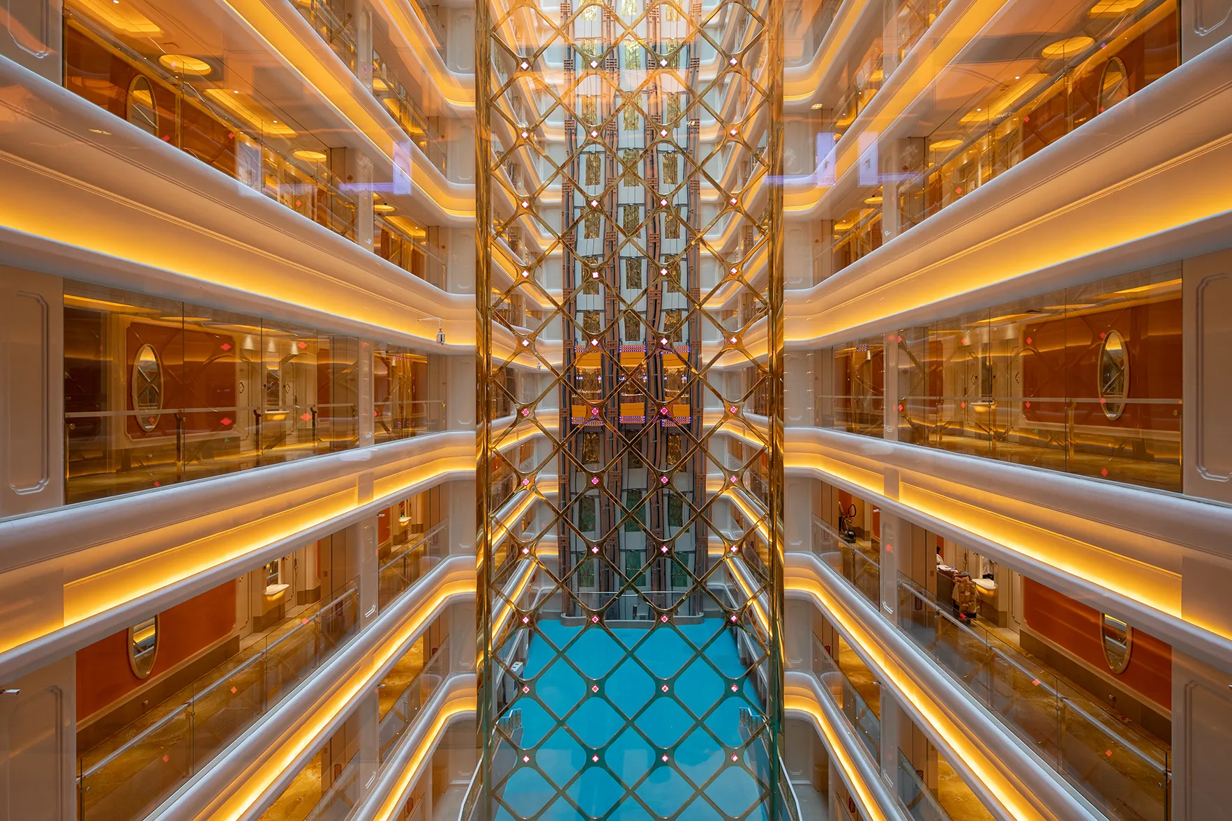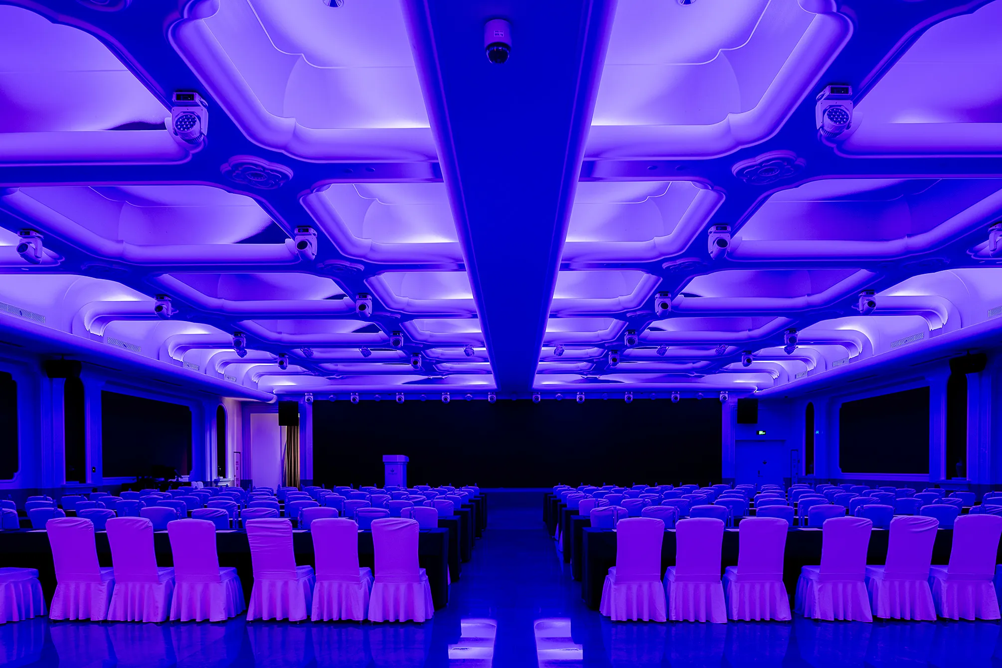 The interior space and lighting design are characterized by distinctive features: the extensive use of gypsum decorative materials for ceiling coves and wall decorations, the magnificent European dome, and the rich and exquisite sculptural patterns. Custom ultra-low color temperature golden light strips and lens wash lights are employed to highlight the spatial structure through indirect lighting. The upward lighting wash showcases the rhythm of the atrium to perfection, creating a luxurious atmosphere that offers warm and comfortable basic lighting while ensuring strong brand recognition.