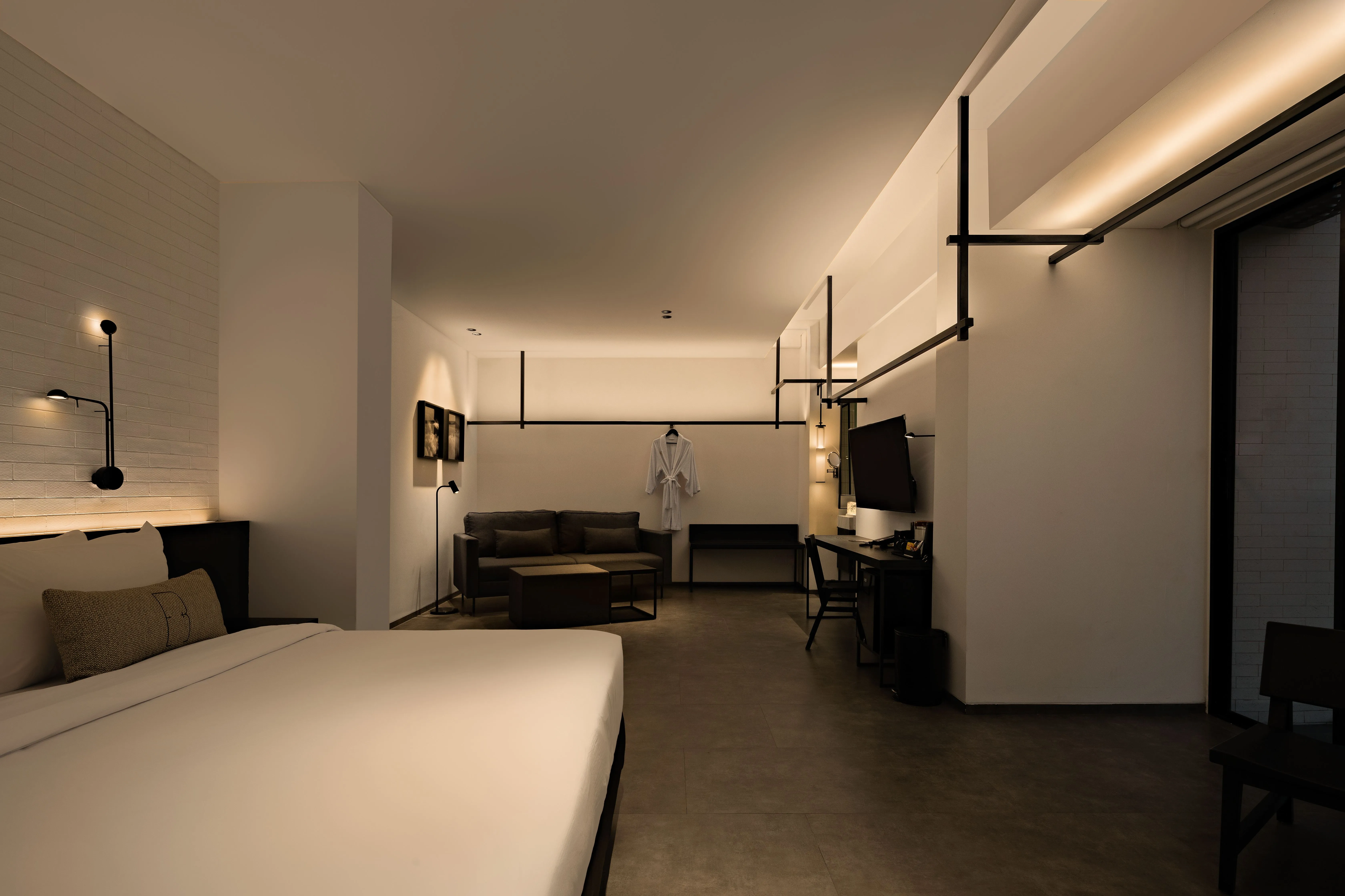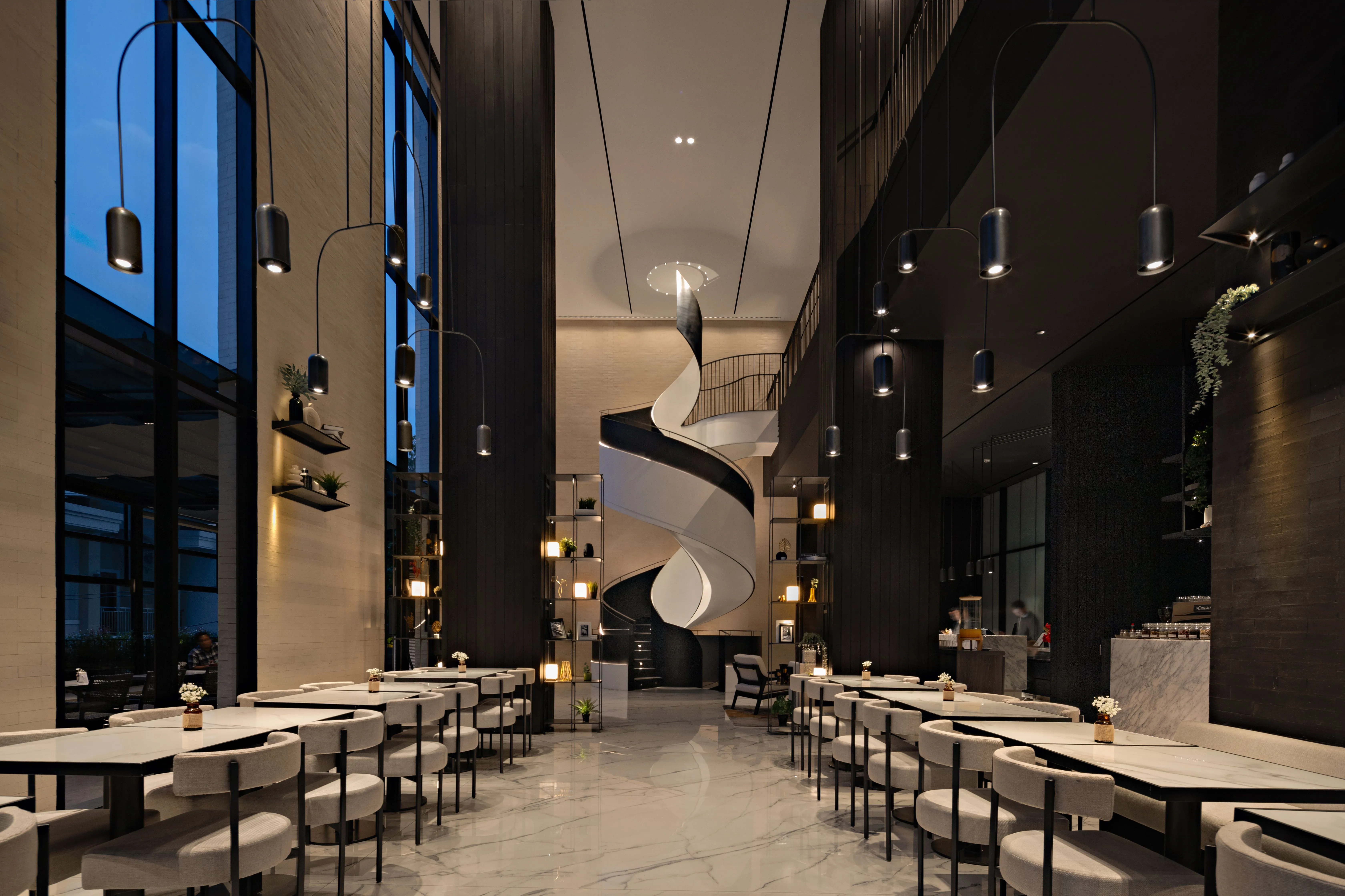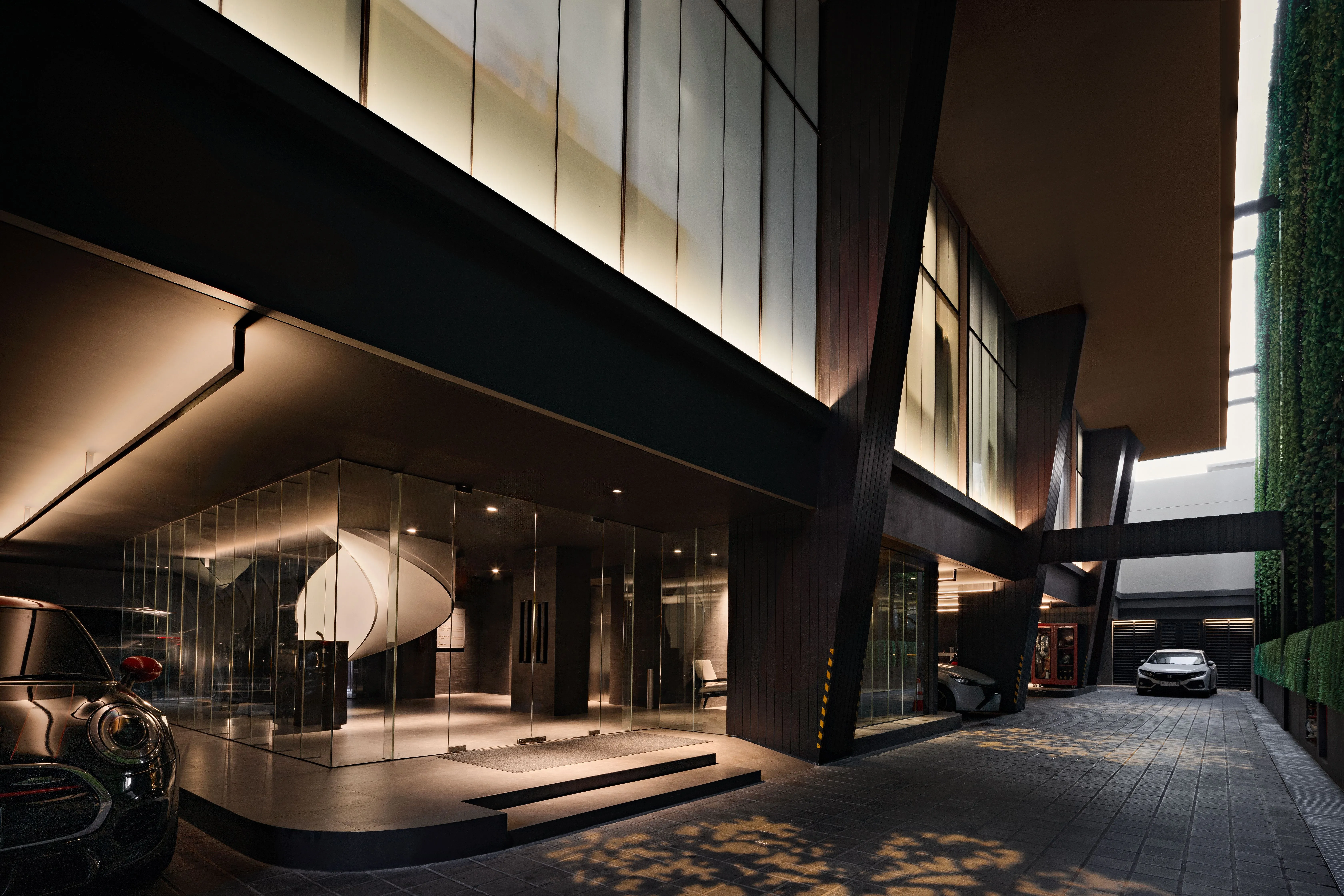 By establishing a lighting equilibrium, this distinction extends into the night, striving for balance between light and shadow, smoothness and texture, purity and pattern.