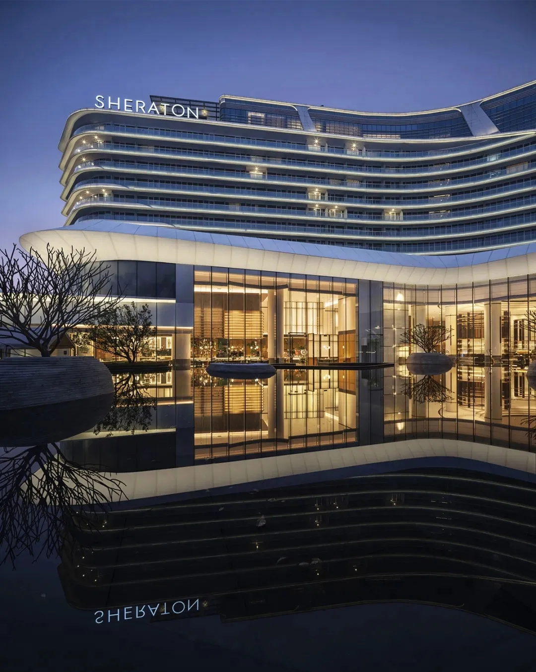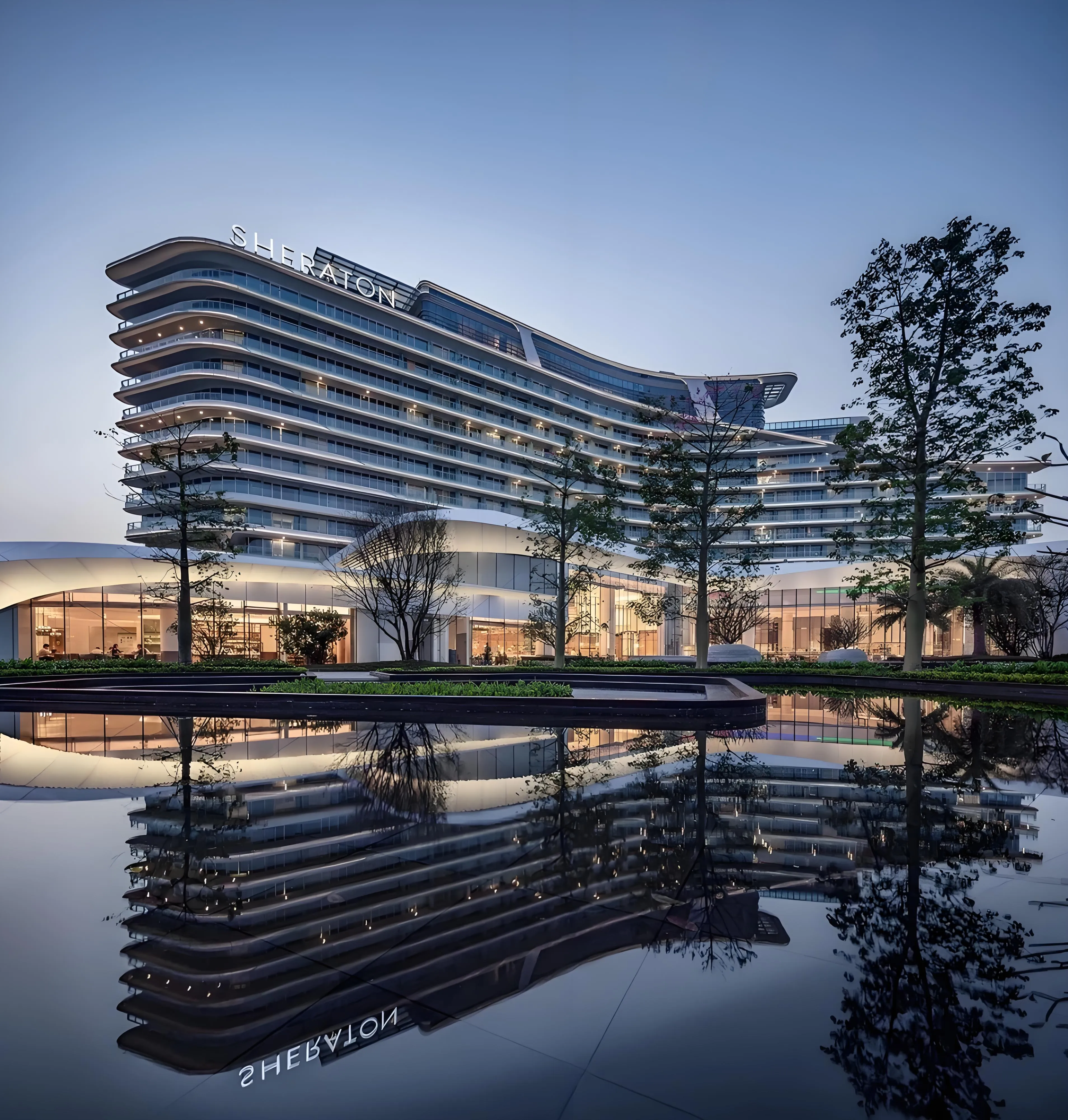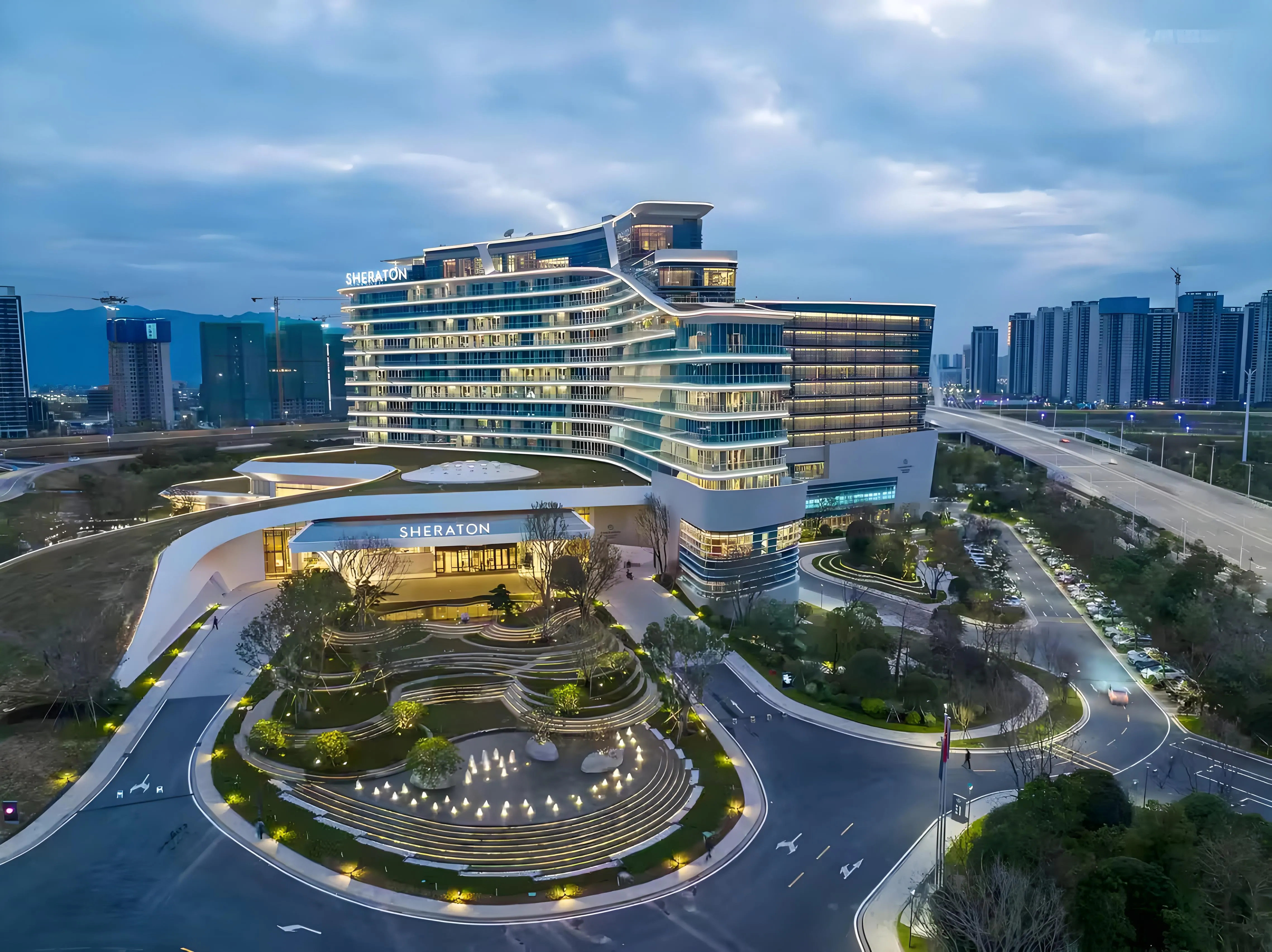 The Zhaoqing Sheraton Hotel is located in the core area of the Dinghu New District in Zhaoqing City. As the first international five-star brand hotel in Zhaoqing, it seamlessly integrates with the beautiful waterfront landscapes of the new district, including the Changli River and Wetland Park. Its unique three-tower exterior design ensures that every room offers excellent views.
