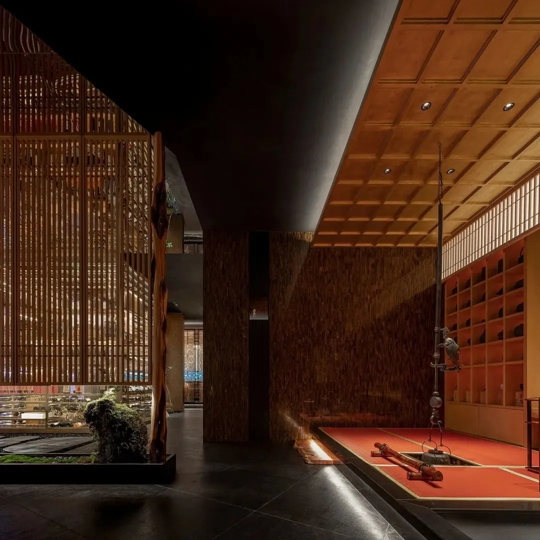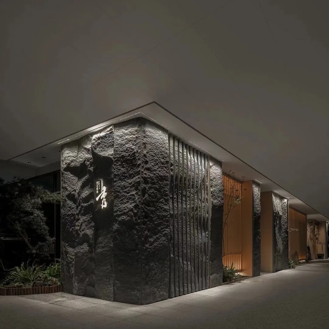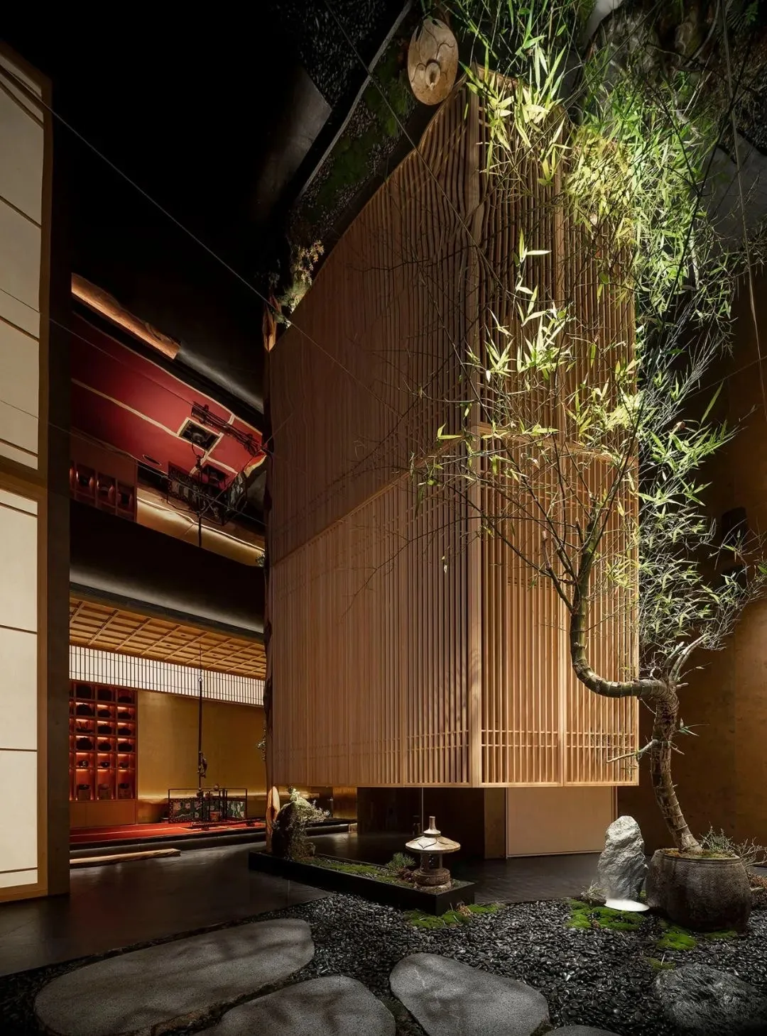 Numerous natural micro-landscapes are interspersed throughout the space, enhancing the natural texture. The design fully utilizes the three forms of illumination—points, lines, and surfaces—combined with an intelligent control system. The reflective mirrored ceiling further amplifies the light, imparting a rhythmic beauty to the space that resonates with a musical quality.