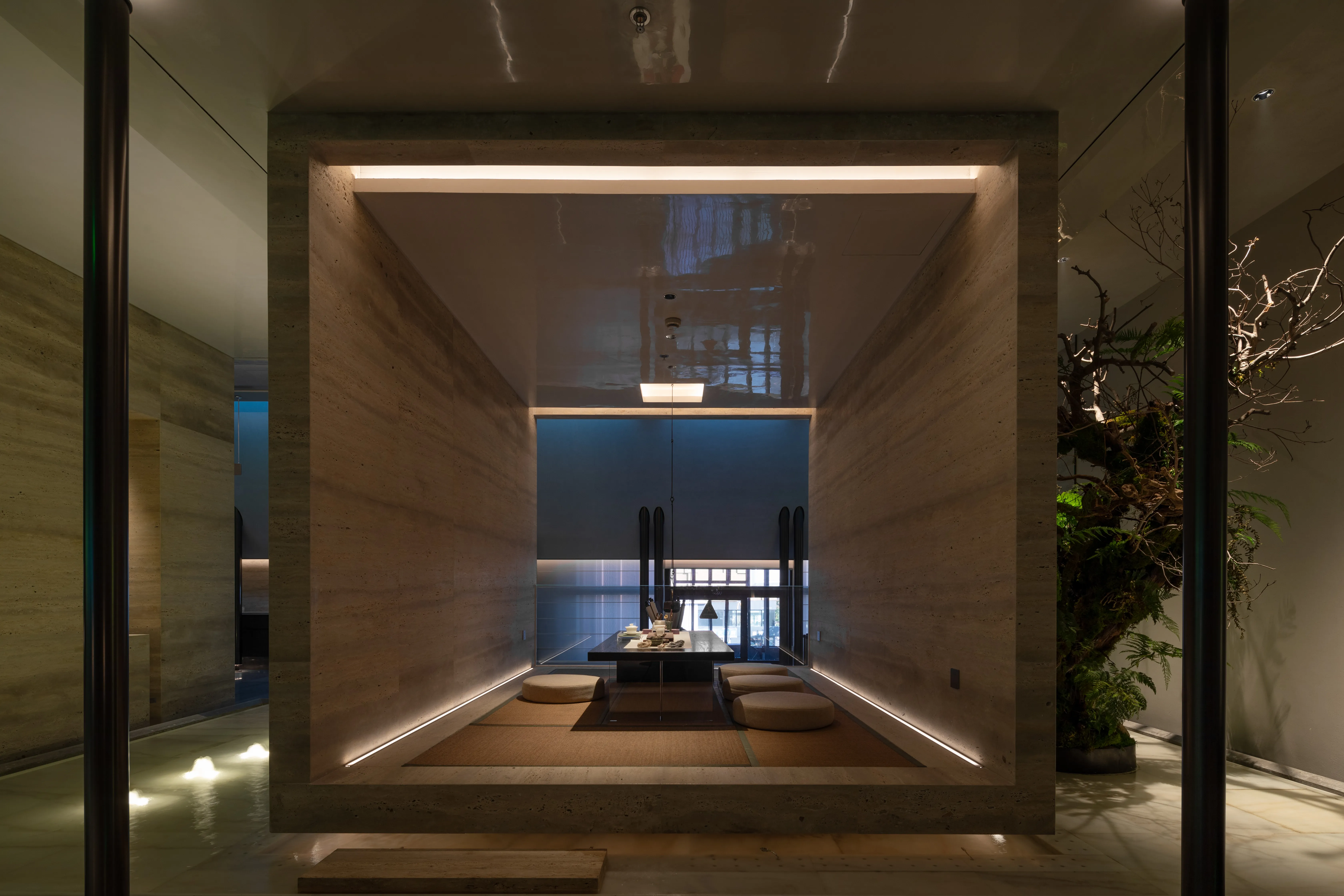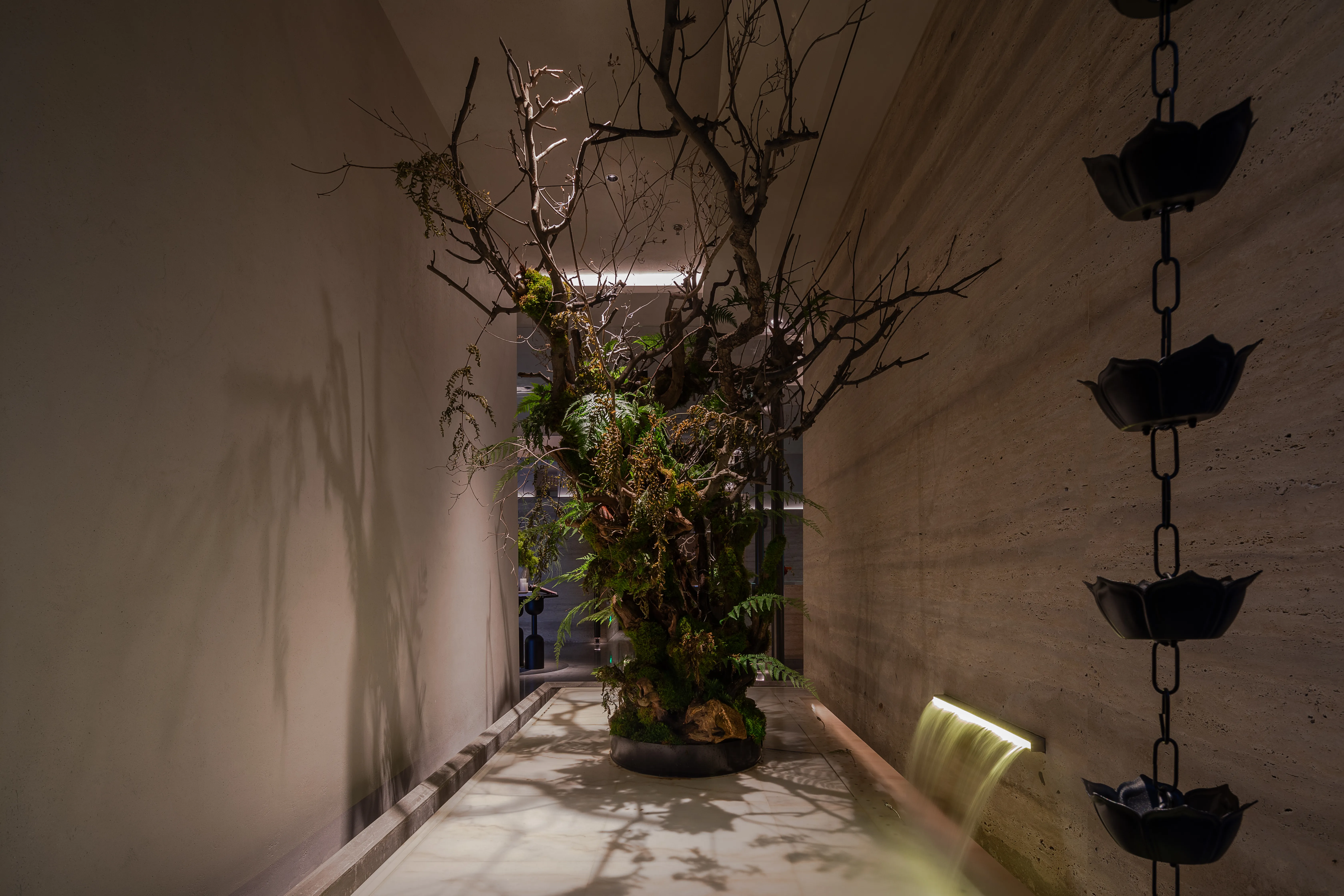 The space design is inspired by the aesthetic charm of the Song Dynasty, with lighting seamlessly integrated into the structural and environmental landscape. Blending ancient elegance with modern style, the design advocates for a harmonious relationship between people and nature. It aims to create a new cultural living space for urban dwellers, serving as a place for healing the body and mind, providing customized services, enjoying leisurely life, and leading a health-focused lifestyle. Whether soaking in water, enjoying the ambiance, hosting gatherings, or nurturing oneself, SHUIYUEYUNXI offers every guest a tranquil retreat, establishing a new base for green wellness.