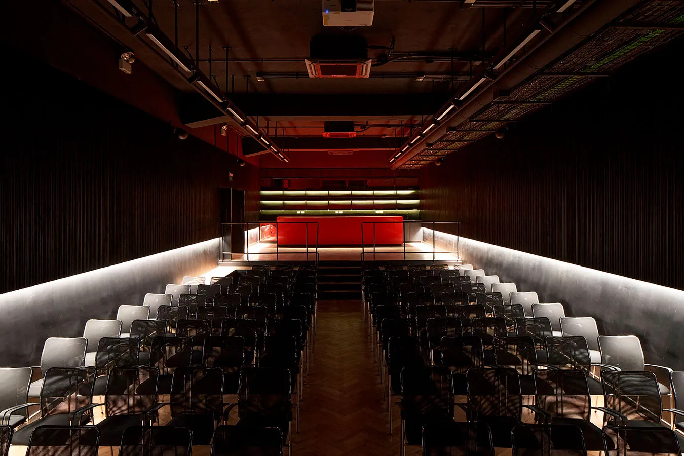 Modern theaters primarily feature indoor architecture. The audience seating, lobby, ticketing area, and other spaces accessible to the audience make up the front of the house, where lighting design has become an essential element.