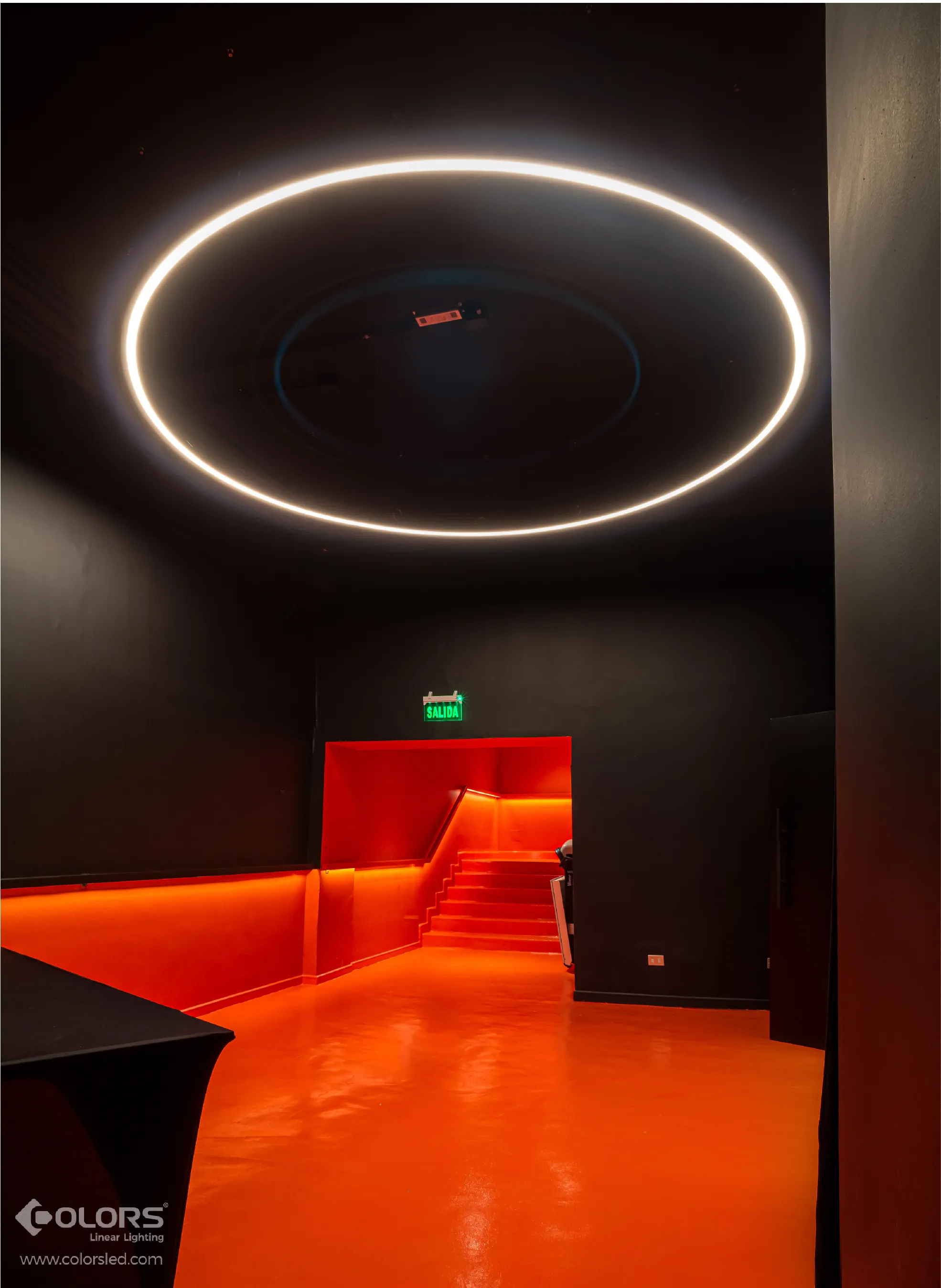 The lighting designer plans to install the Infinite Arc series circular fixtures in the ticketing area of Angel Theater, along with linear lights along the vertical surfaces of the corridor. This setup aims to provide guiding illumination and create an engaging ambient lighting atmosphere.