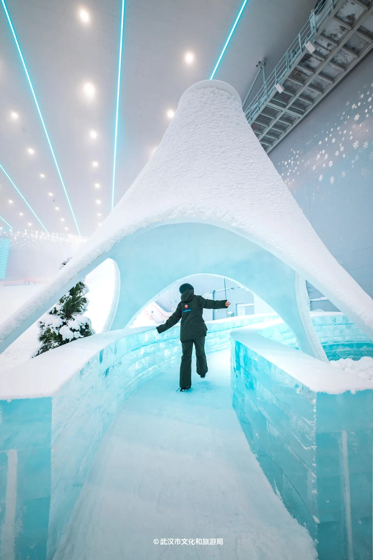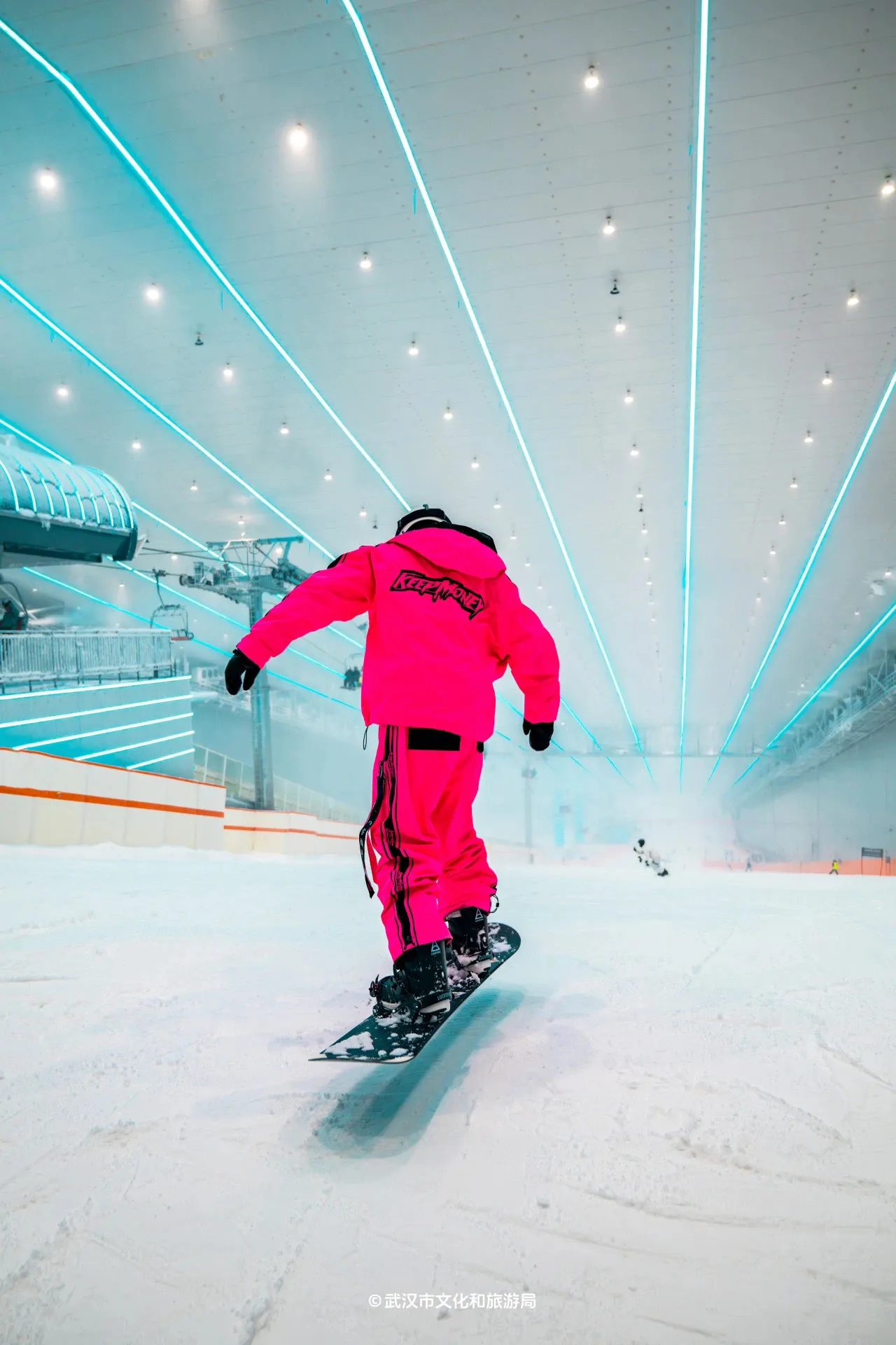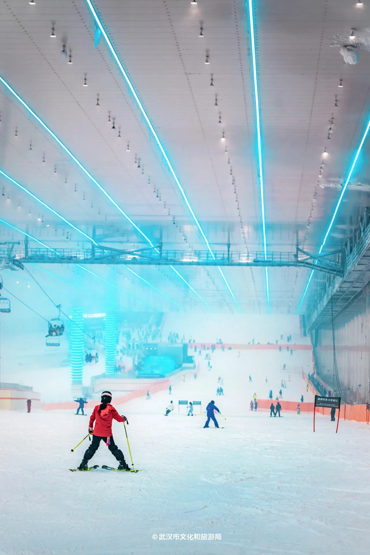 Ganlu Mountain International Ski Resort, the largest indoor ski resort in Central China, is 60,000 square meters. With a maximum vertical drop of 73 meters and the longest run of 420 meters, fulfilling the dream of year-round skiing for residents of Wuhan and becoming a new landmark.