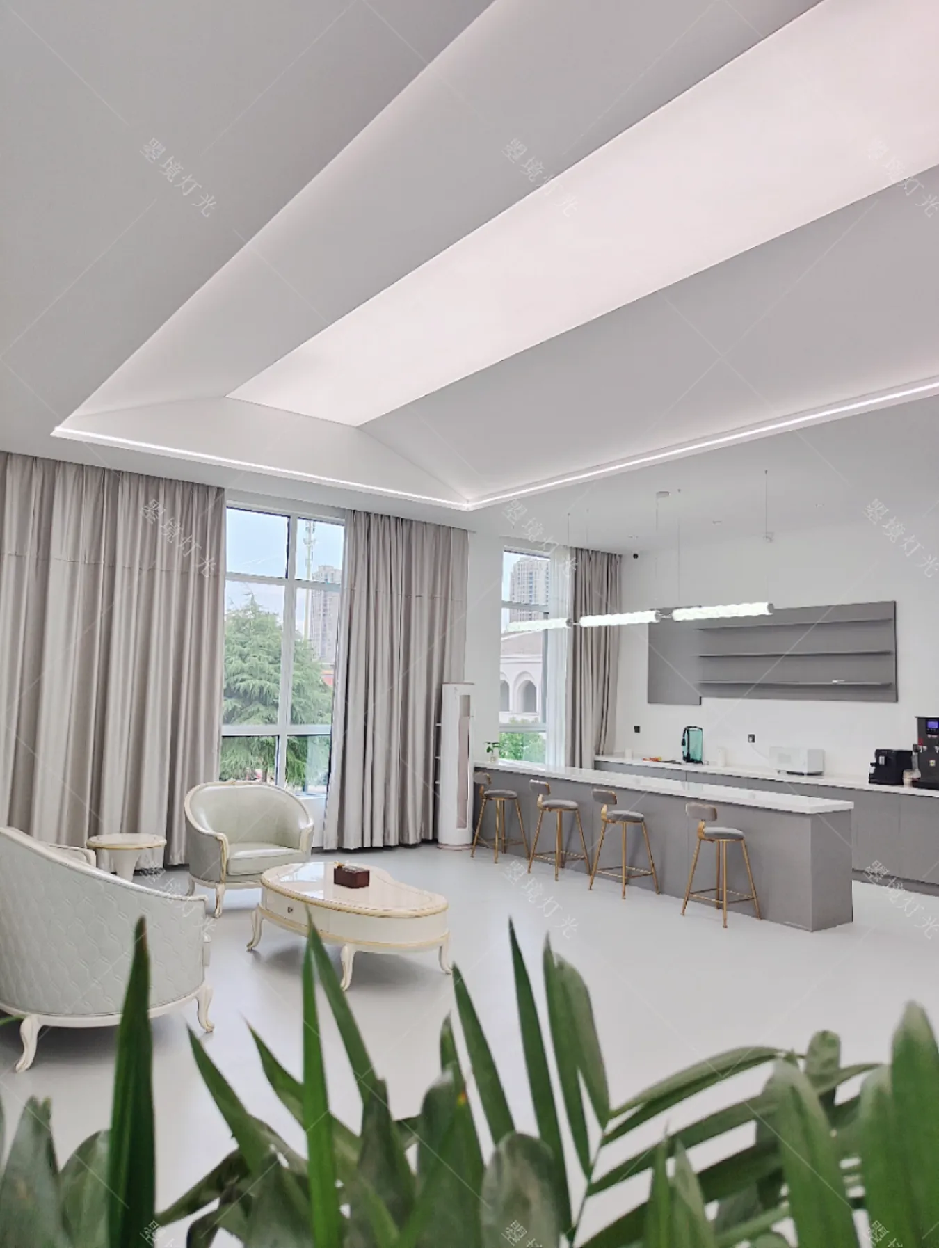 The lighting design combines practicality and ambiance, creating multiple layers of illumination. The office area prioritizes uniformity and comfort in its optical design. Extensive use of linear lighting and light films simulates natural light, seamlessly integrating lighting with the space. Direct glare is avoided, creating a simple, elegant, and naturally comfortable new office experience.