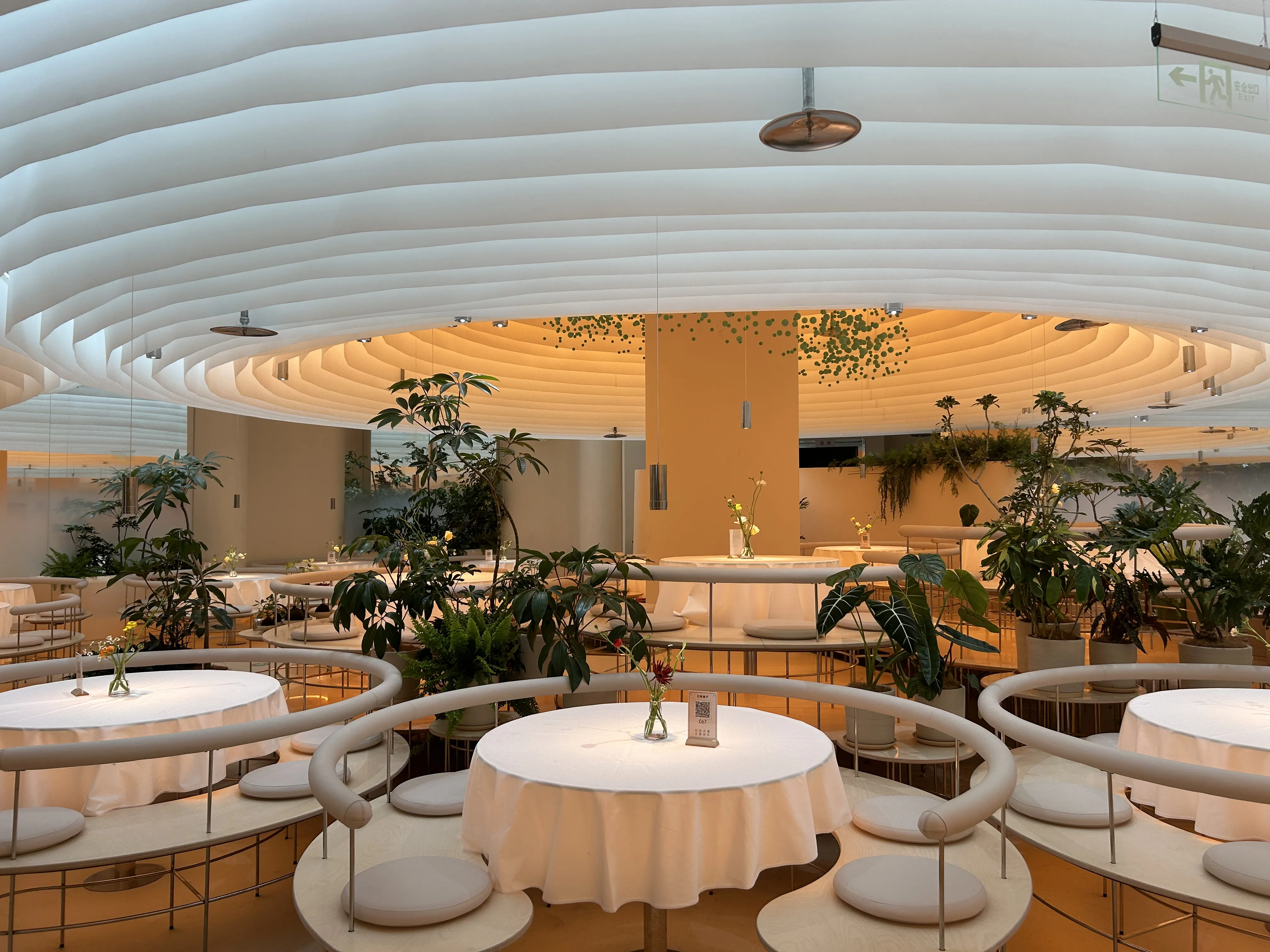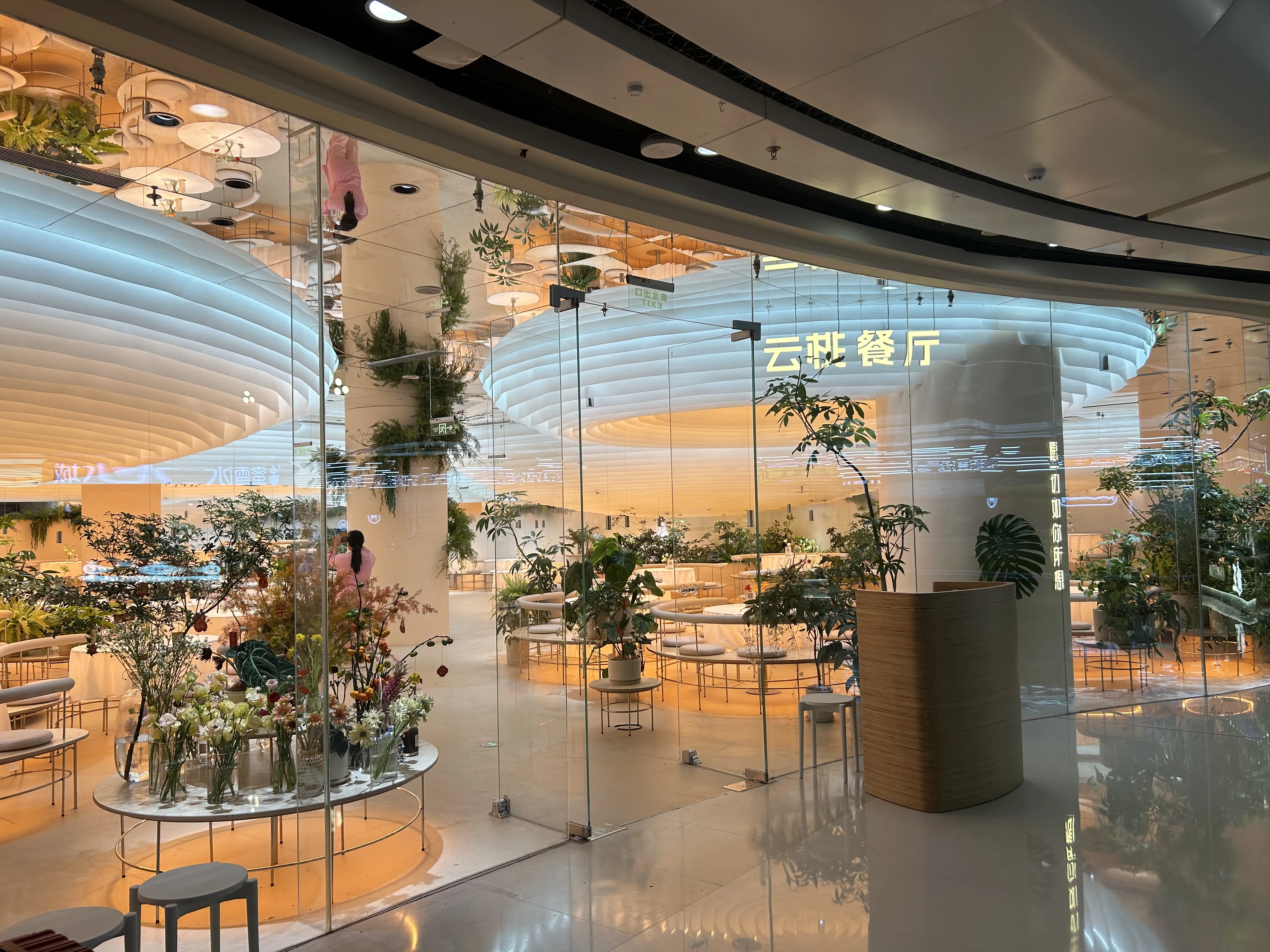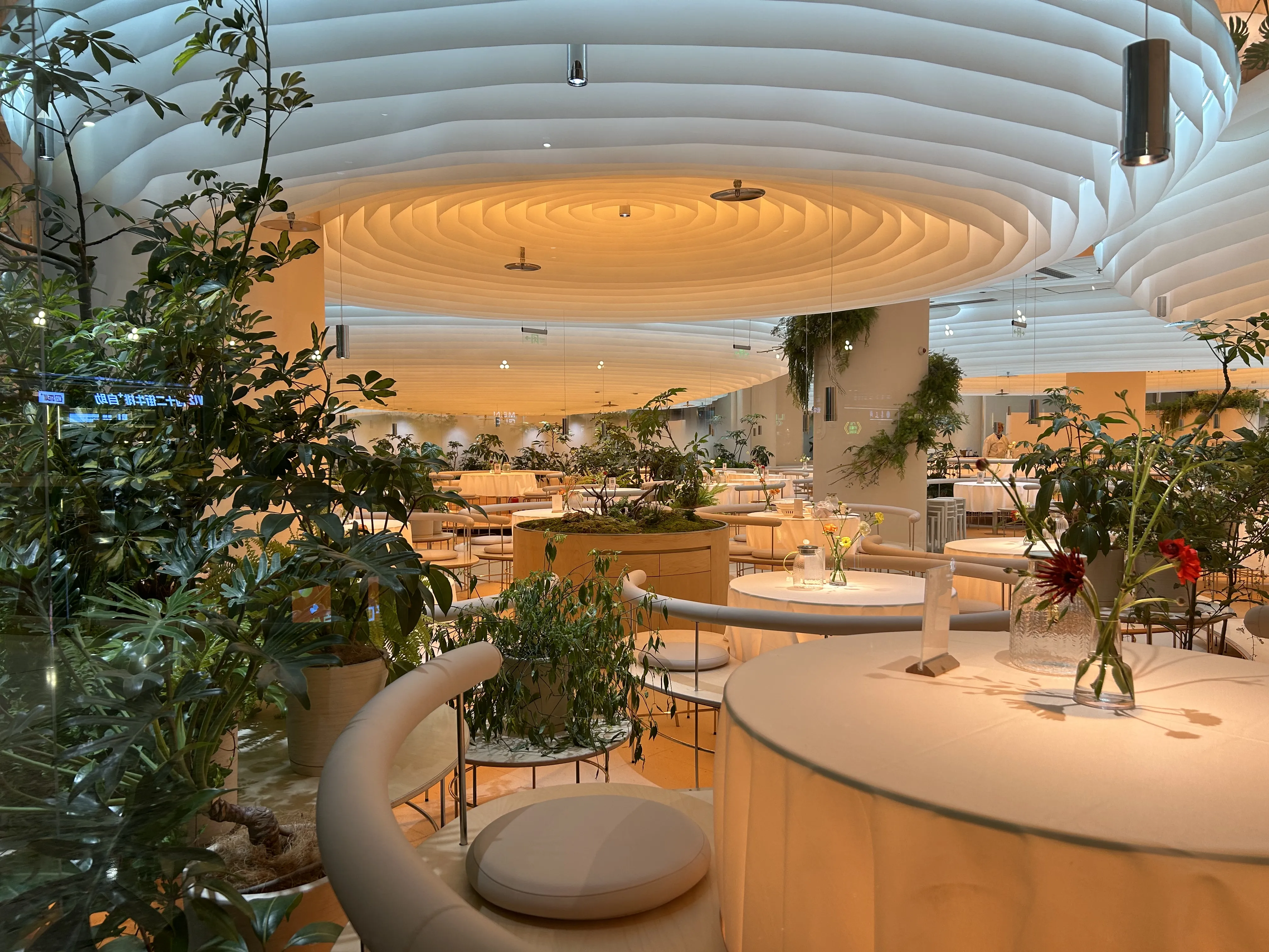 As a special restaurant, it stands out in the mall with its unique decorating style and color scheme, integrating a sense of nature surrounded by various greenery, making the space particularly fresh and comfortable.